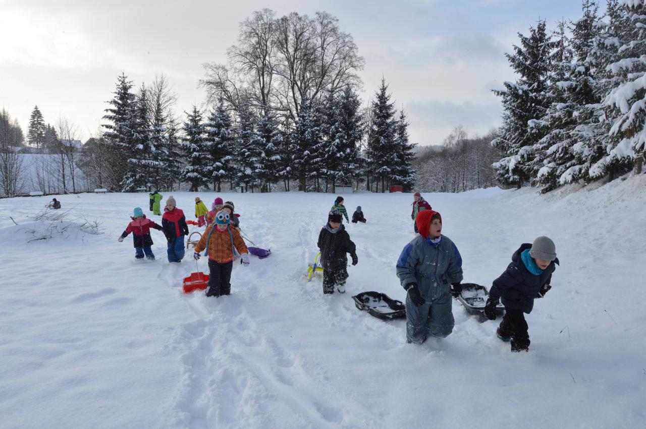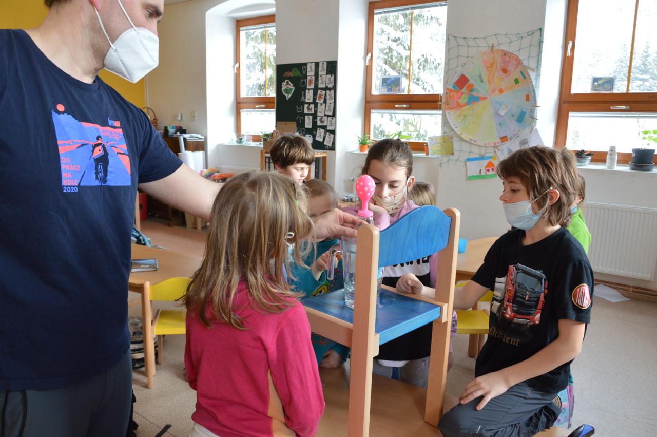 Ve čtvrtek na nás už čekaly pokusy se vzduchem, a tak jsme zkoumali kde všude vzduch najdeme, kolik je ho schovaného ve sněhu, co se stane, když ho zahřejeme (nebo naopak ochladíme) nebo jak ho využijeme k pohonu našeho modelu rakety. Během dne jsme jsme také nezapomněli na čerstvém sněhu provětrat sáňky a boby, abychom si užili krásnou sněhovou nadílku posledních dní. Konec týdne pak završilo výtvarné tvoření, kde jsme si vyzkoušeli techniku akvarelu a seznámili se blíže s mícháním barev. Výsledkem byla pestrá směsice barevných ptáčků, a tak jsme mohli pozorovat ptáčky nejen venku, ale i uvnitř školy :-)