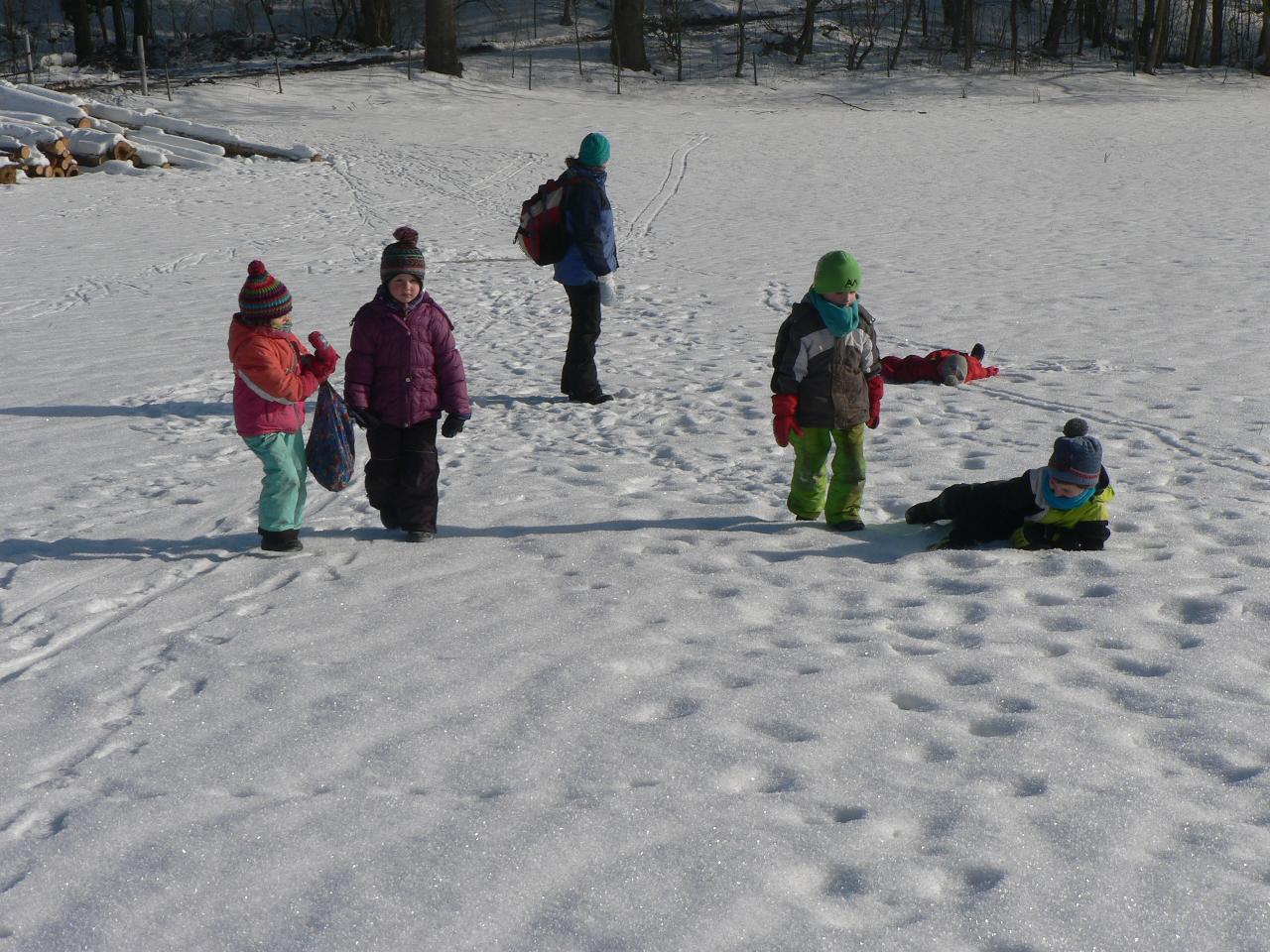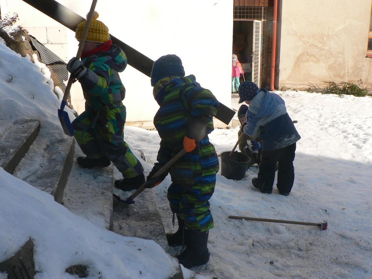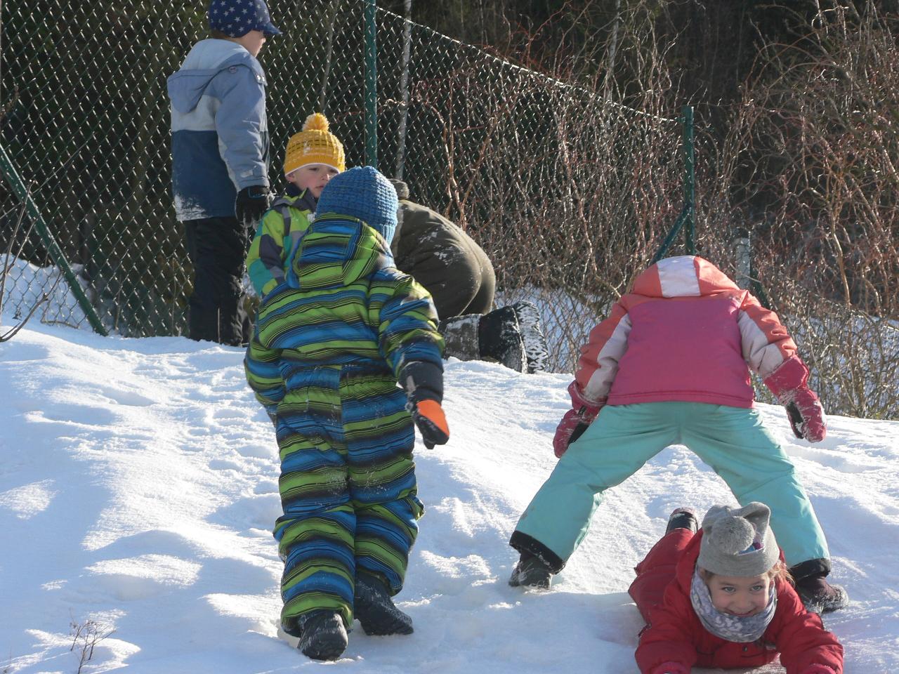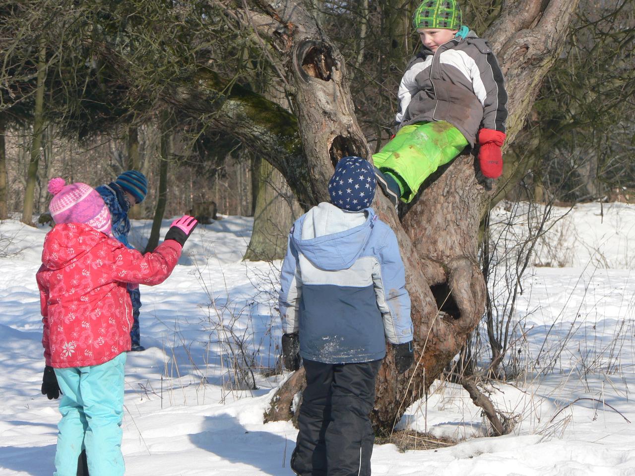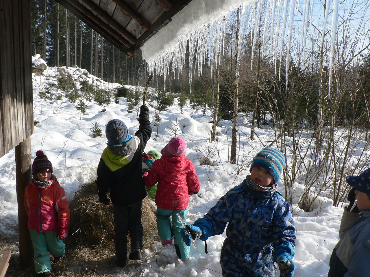 Týden věnovaný pohádce o holčičce Zlatušce, malém hladovém ptáčkovi a jedné velké proměně. Příběh o soucitu, péči a starostlivosti. A stejně jako Zlatuška v pohádce, i my jsme se v tomto týdnu více seznamovali s ptačími kamarády. Zjišťovali jsme, které ptáčky můžeme u krmítek zahlédnout a čím je můžeme nakrmit. Ptáčci se nám v různých podobách dostali také do her, říkaček a dalších pohybových aktivit. Také jsme tvořili malé ptáčky z vlny a šili smrčky a jedle z filcu. Vyráběli jsme lojové koule a krmítka, aby měli ptáčci venku z čeho zobat. A měli jsme velké štěstí, protože naše dobroty přilákaly nejen kosy, vrabčáky nebo sýkorky, ale do našeho krmítka před školkou zavítala také sojka, kterou jsme tak s dětmi viděli hezky zblízka. Ve středu jsme pak vyrazili na velkou výpravu zasněženým lesem ke krmelci, kam jsme zanesli kaštany a žaludy pro lesní zvířátka a podělili se i s nimi. Celý týden jsme pak měli možnost venku sledovat co dokáže mráz, klouzali jsme se na zamrzlých kopcích i kalužích, obdivovali nádherné rampouchy a další zajímavé obrazce, které zima vykouzlila.