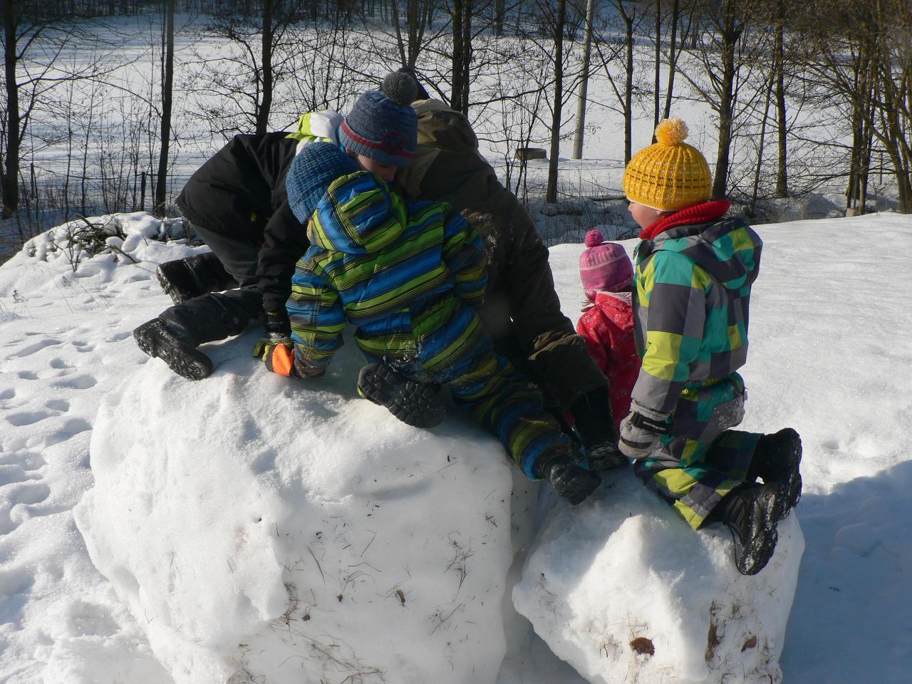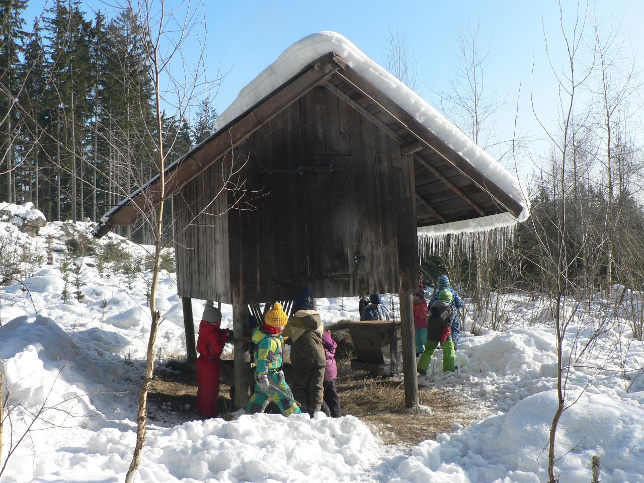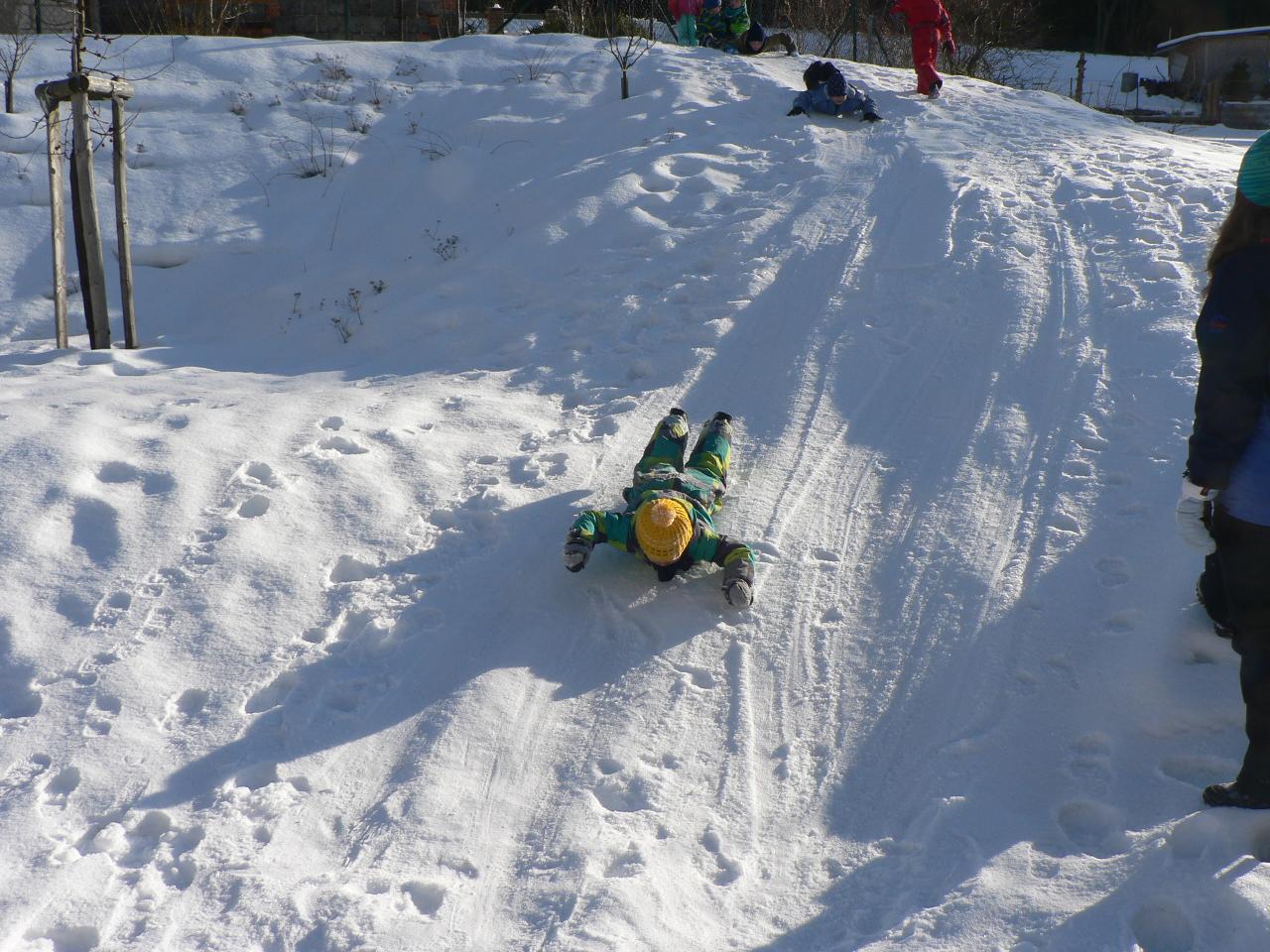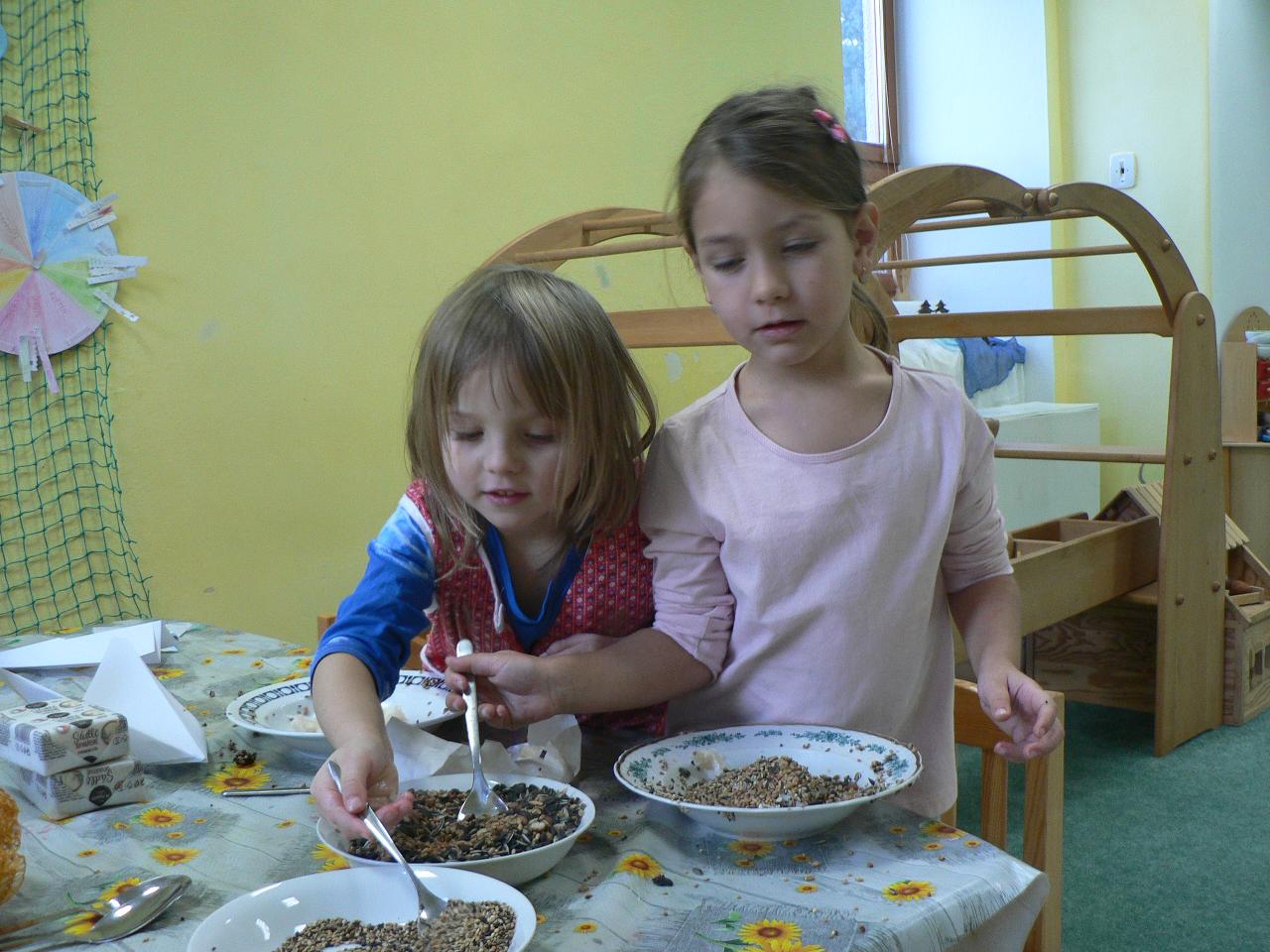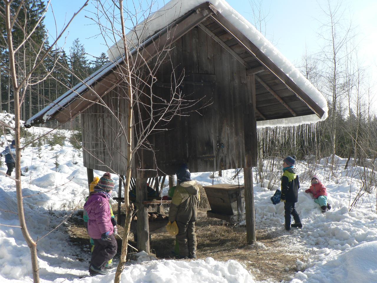 Týden věnovaný pohádce o holčičce Zlatušce, malém hladovém ptáčkovi a jedné velké proměně. Příběh o soucitu, péči a starostlivosti. A stejně jako Zlatuška v pohádce, i my jsme se v tomto týdnu více seznamovali s ptačími kamarády. Zjišťovali jsme, které ptáčky můžeme u krmítek zahlédnout a čím je můžeme nakrmit. Ptáčci se nám v různých podobách dostali také do her, říkaček a dalších pohybových aktivit. Také jsme tvořili malé ptáčky z vlny a šili smrčky a jedle z filcu. Vyráběli jsme lojové koule a krmítka, aby měli ptáčci venku z čeho zobat. A měli jsme velké štěstí, protože naše dobroty přilákaly nejen kosy, vrabčáky nebo sýkorky, ale do našeho krmítka před školkou zavítala také sojka, kterou jsme tak s dětmi viděli hezky zblízka. Ve středu jsme pak vyrazili na velkou výpravu zasněženým lesem ke krmelci, kam jsme zanesli kaštany a žaludy pro lesní zvířátka a podělili se i s nimi. Celý týden jsme pak měli možnost venku sledovat co dokáže mráz, klouzali jsme se na zamrzlých kopcích i kalužích, obdivovali nádherné rampouchy a další zajímavé obrazce, které zima vykouzlila.