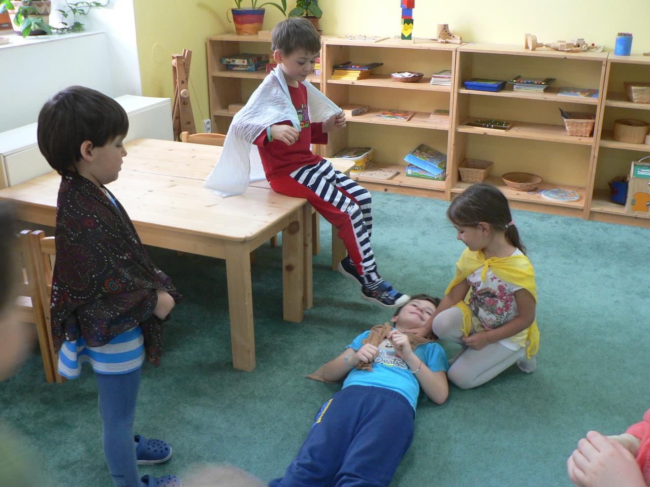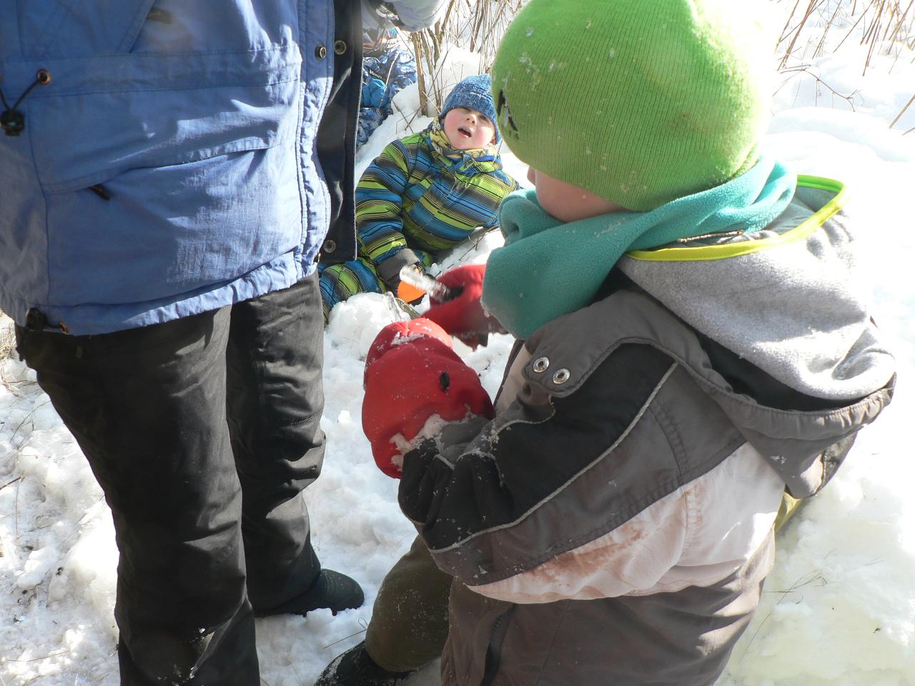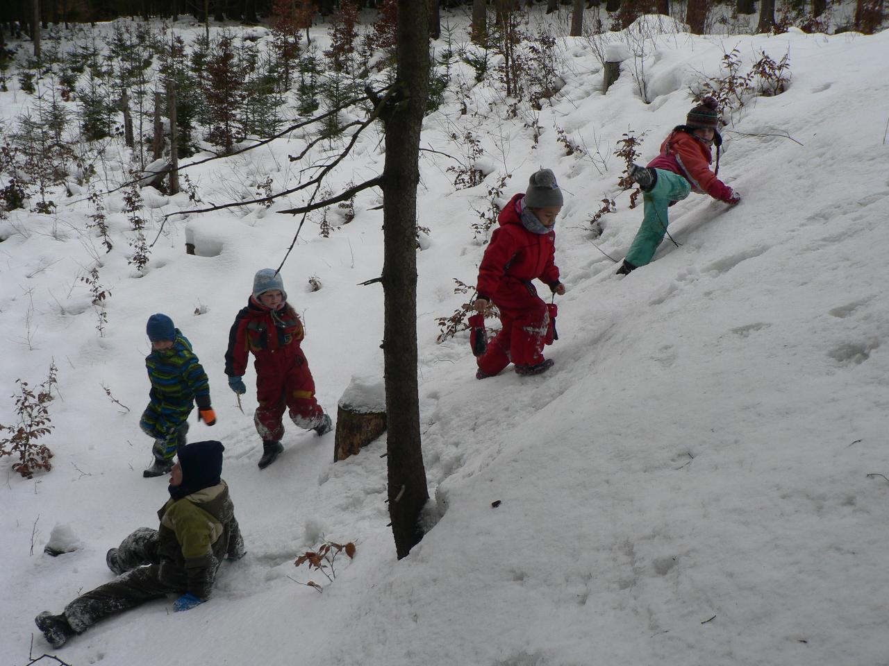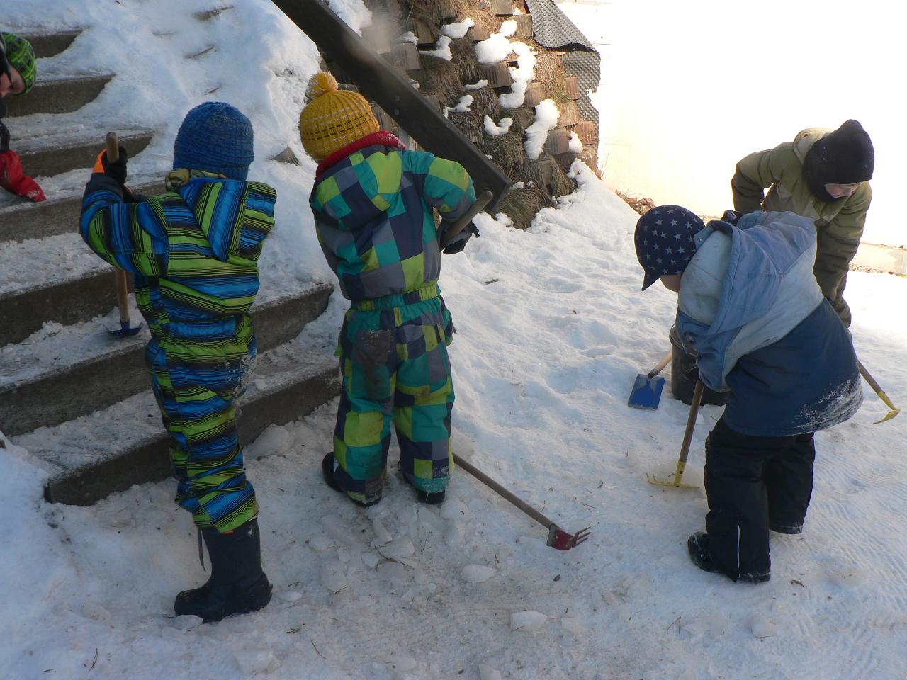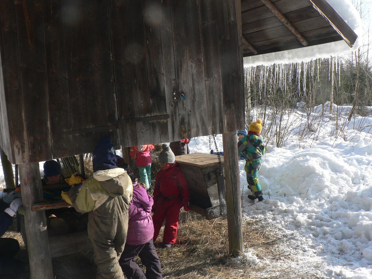 Týden věnovaný pohádce o holčičce Zlatušce, malém hladovém ptáčkovi a jedné velké proměně. Příběh o soucitu, péči a starostlivosti. A stejně jako Zlatuška v pohádce, i my jsme se v tomto týdnu více seznamovali s ptačími kamarády. Zjišťovali jsme, které ptáčky můžeme u krmítek zahlédnout a čím je můžeme nakrmit. Ptáčci se nám v různých podobách dostali také do her, říkaček a dalších pohybových aktivit. Také jsme tvořili malé ptáčky z vlny a šili smrčky a jedle z filcu. Vyráběli jsme lojové koule a krmítka, aby měli ptáčci venku z čeho zobat. A měli jsme velké štěstí, protože naše dobroty přilákaly nejen kosy, vrabčáky nebo sýkorky, ale do našeho krmítka před školkou zavítala také sojka, kterou jsme tak s dětmi viděli hezky zblízka. Ve středu jsme pak vyrazili na velkou výpravu zasněženým lesem ke krmelci, kam jsme zanesli kaštany a žaludy pro lesní zvířátka a podělili se i s nimi. Celý týden jsme pak měli možnost venku sledovat co dokáže mráz, klouzali jsme se na zamrzlých kopcích i kalužích, obdivovali nádherné rampouchy a další zajímavé obrazce, které zima vykouzlila.