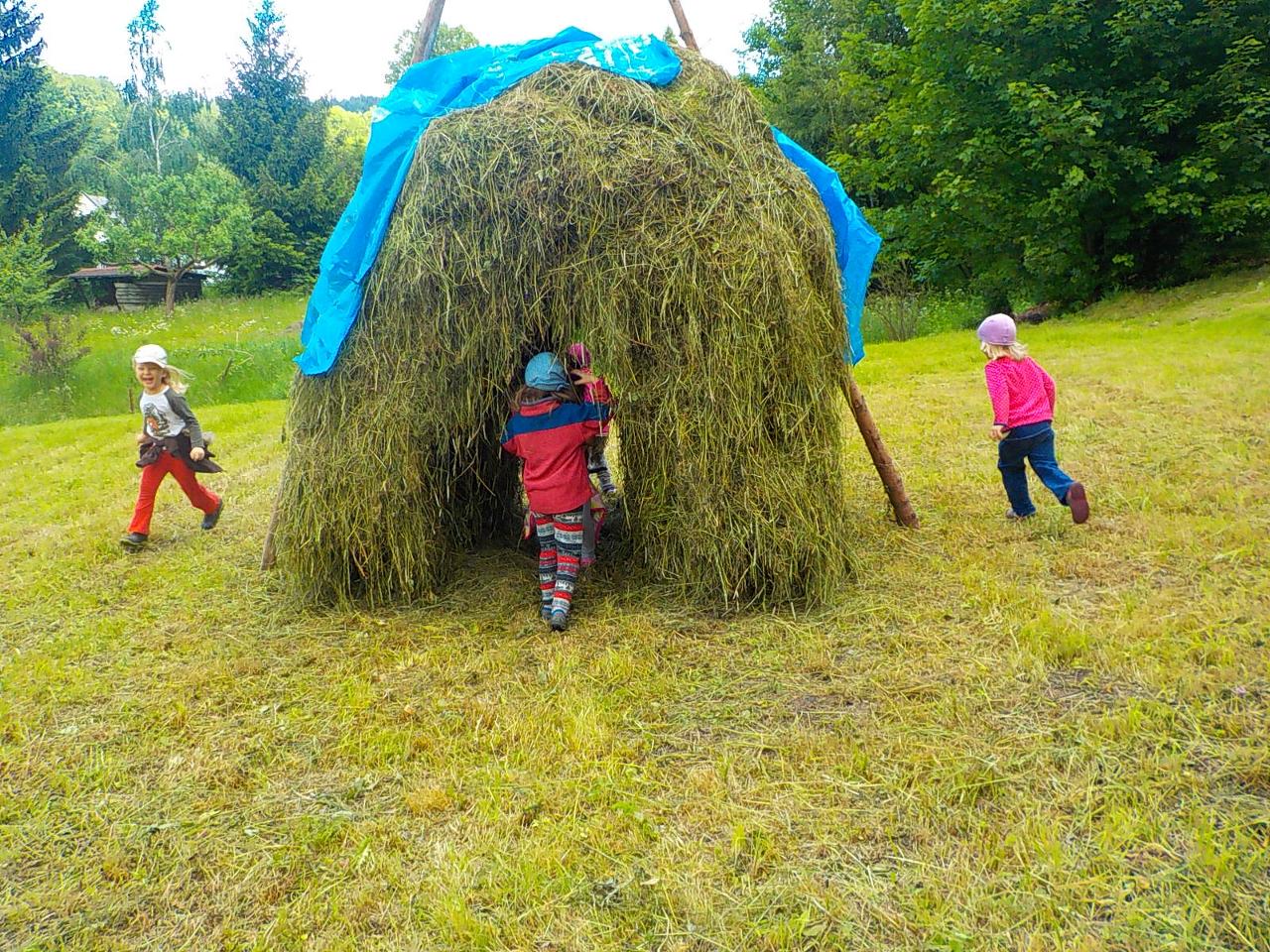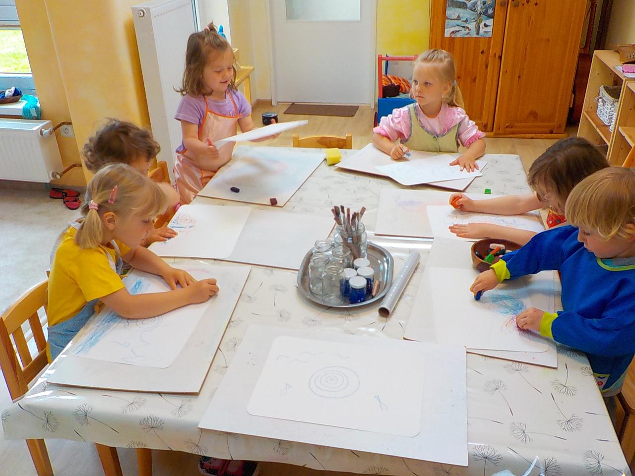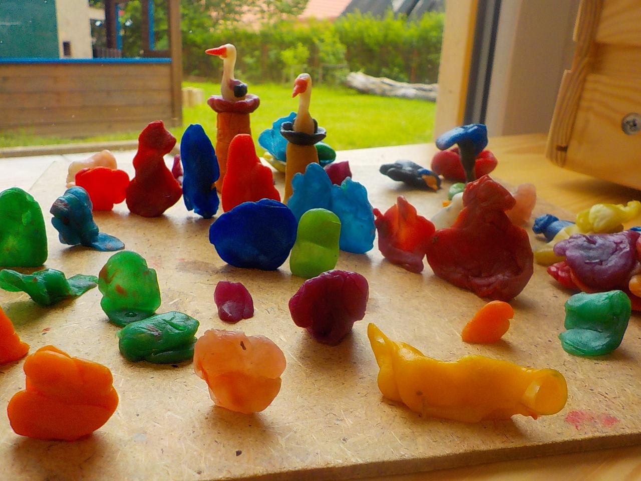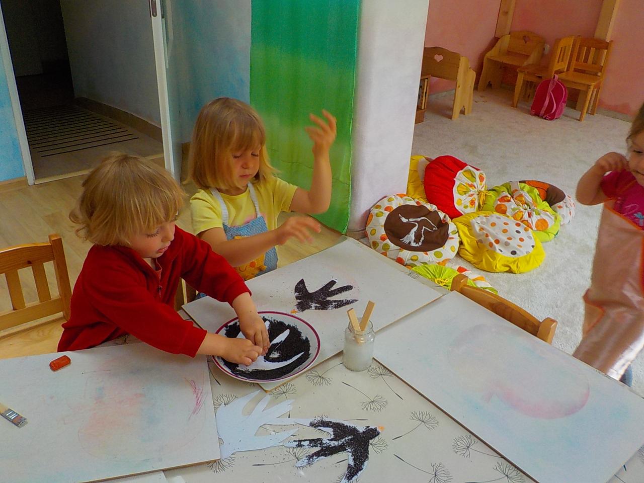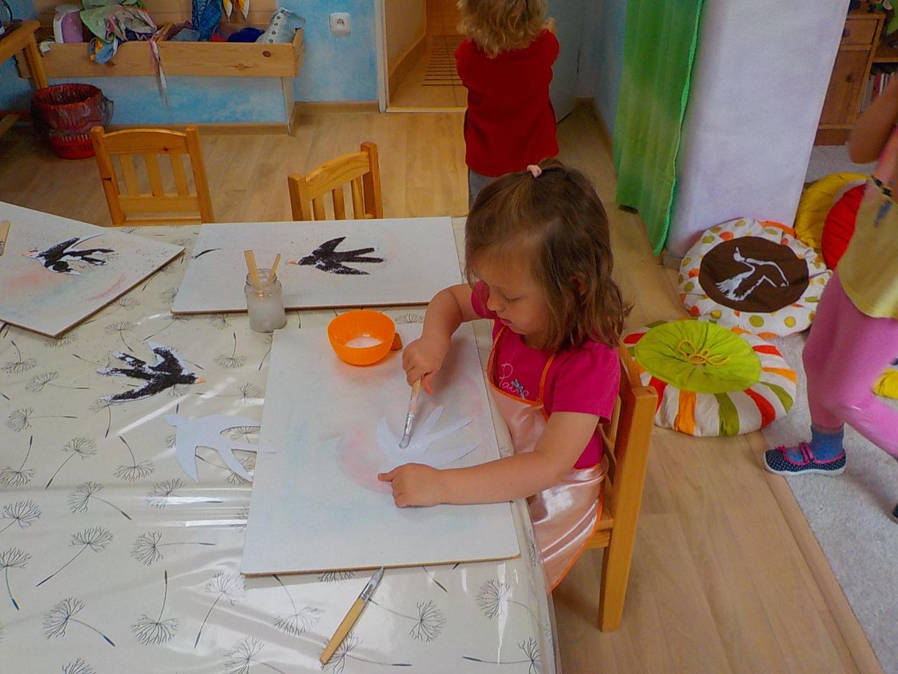 Tento týden byl ptačí. Modelovali jsme z včelího vosku hnízda, vajíčka, kosy i čápy. Zpívali o nich písničky a pomocí prstových říkadel ožívali další ptáčkové. Zahráli jsme si ptačí zvuky na hudební nástroje. Venku jsme létali jako ptáci, ale i skákali jako koně a v trávě se zahrabávali jako hraboši. V závěru týdne jsme sbírali první květy bezu a tvořili vlaštovky s kabátky z máku a malovali křídovými pastely ptačí hnízdečka a vajíčka.