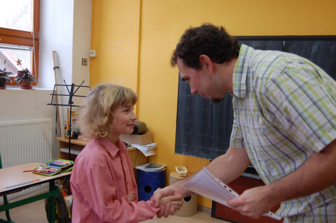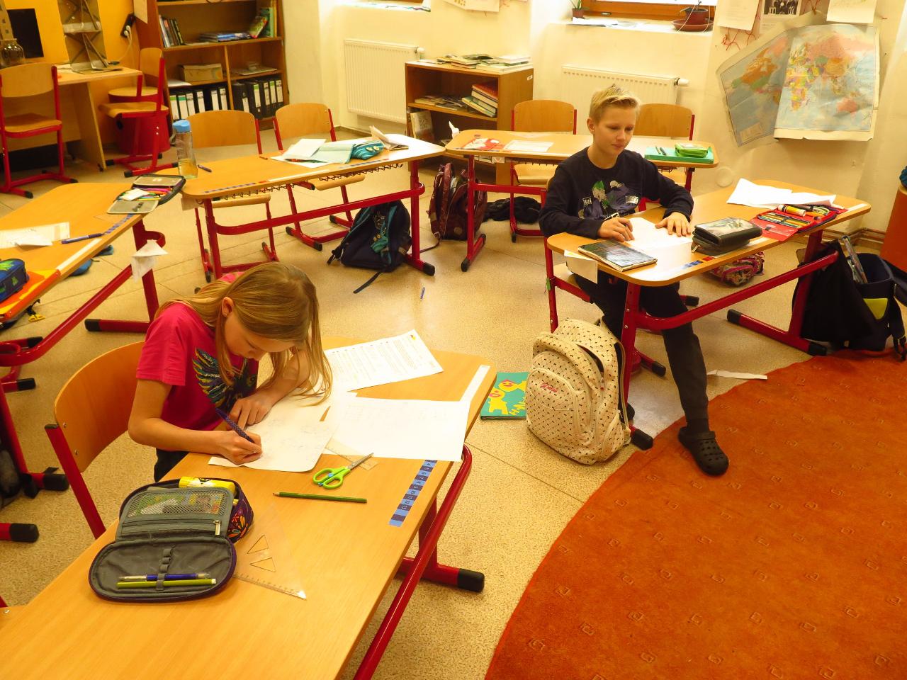 Poslední týden prvního pololetí jsme se každý svým sebehodnocením i společným sdílením ve třídách obraceli k tomu, co jsme prožili, co jsme se naučili, k čemu nám to slouží a na co se zaměříme dále. Pohled jednotlivých učitelů a jejich hodnocení pak měly děti napsané na vysvědčení v podobě slovního hodnocení. Ve čtvrtek jsme si je rozdali a většina školáků se do vysvědčení hned začetla. Pak jsme si užili společné chvíle hraním různých her - slovních, logických, geografických a jiných deskových her. Během týdne jsme zažili i divadelní představeni v UFFO v Trutnově s názvem “Straka v říši Entropie”, které nám představovalo hravou formou významné vědce a jejich objevy. Hned jsme si to zaznamenali do tzv. výletníčků - deníků našich venkovních dnů a důležitých témat. Konec týdne jsme zakončili obvyklým rituálem společného zhodnocení celého týdne a zpěvem mravenčí písničky. A pak už hurá na pololetní prázdniny.