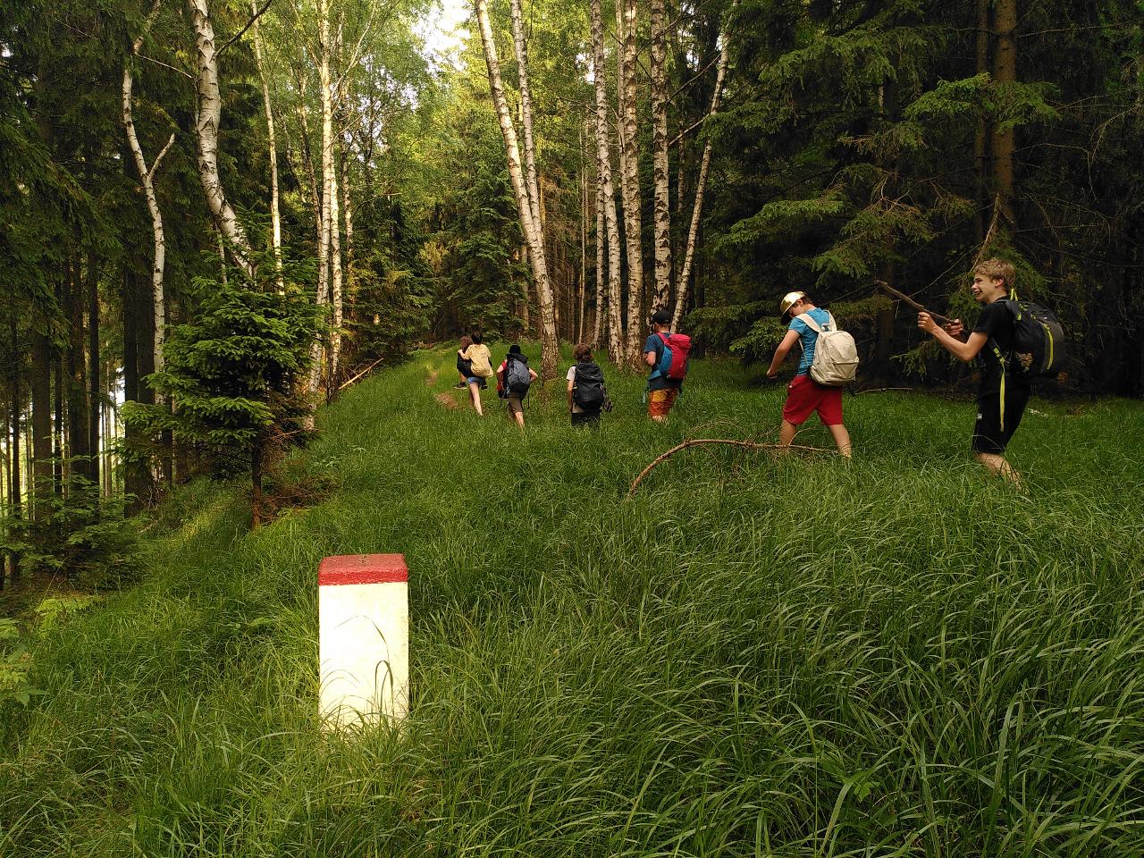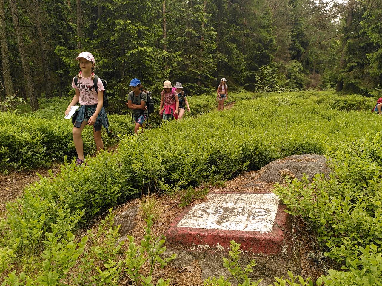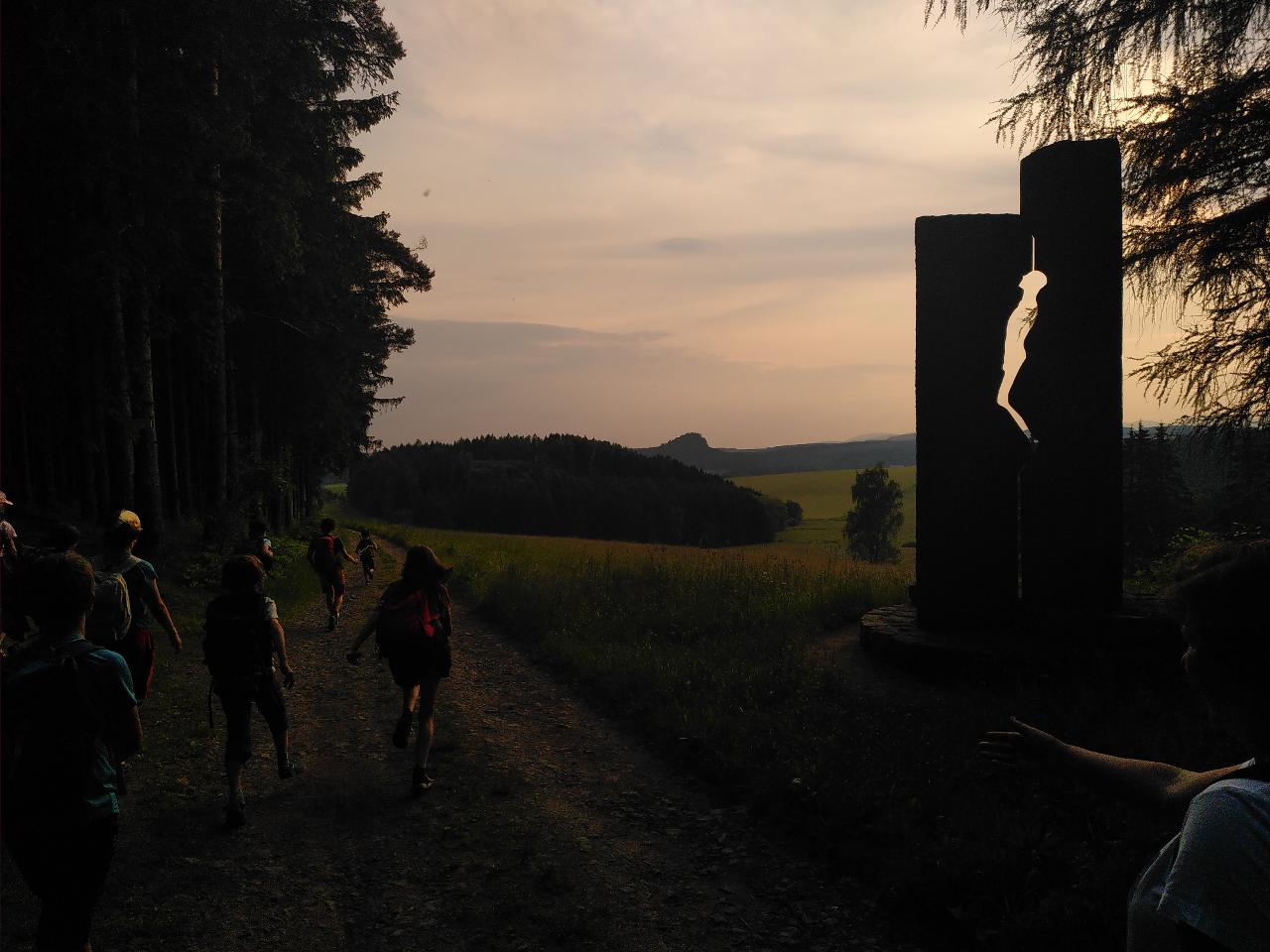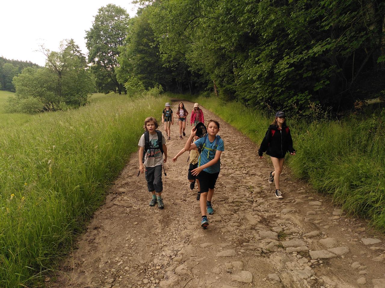 Na konci školního roku jsme i letos vyrazili na třídní výlet. Společně se školáky jsme dali dohromady, co by kdo chtěl během výletu zažít a snažili jsme se najít takovou možnost, která by splnila největší část přání. Před odjezdem vlaku v pondělí ráno jsme měli čas si po skupinkách nakoupit naplánovaného jídlo a rozpočítat peníze. Dále jsme už vyrazili na Horní Adršpach k Saše, kde jsme si pohráli na hřišti, domácím boulderu či v bazéně. Velké batohy nám odvezl Bob, taťka Benjiho na místo kam jsme putovali. Posilněni domácí bramboračkou (od Saši) i zmrzlinou, vyrazili jsme na odpolední putování. Část jsme šli přímo po hranicích, jednou nohou v Polsku, jednou v Česku. Viděli jsme rozpukané pískovce, prošli jsme vysídlenou obec Libnou, přes výhledy z Mirošovických stěn a kolem smírčího kříže na Bukové hoře jsme po skoro 20 km došli až k Benjimu domů, na nejvzdálenější konec Horních Teplic. Každá skupinka si uvařila večeři, postavila stan. Druhý den jsme si užili hřiště, někdo i motorku. Taktéž jsme prohodili pár slov “in English” s Bobem “from the USA”. Pak nás už čekala jen cesta do Teplic na zmrzlinu a vlak. V další části týdne jsme se ve škole věnovali zejména přípravě zahradní slavnosti. Školáci vymýšleli, dělili si role, připravovali kulisy a zkoušeli a zkoušeli.