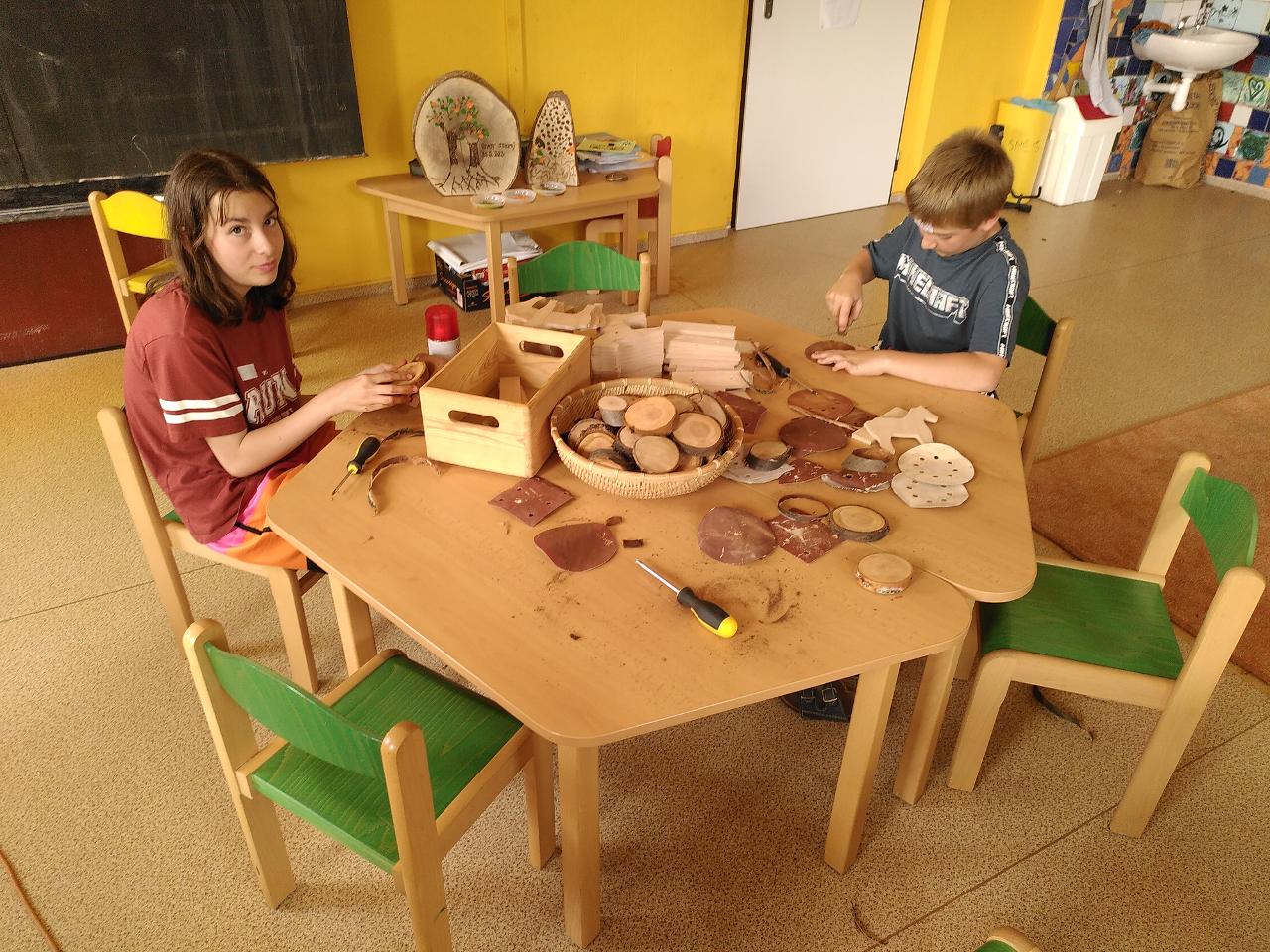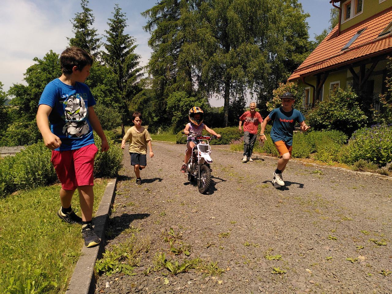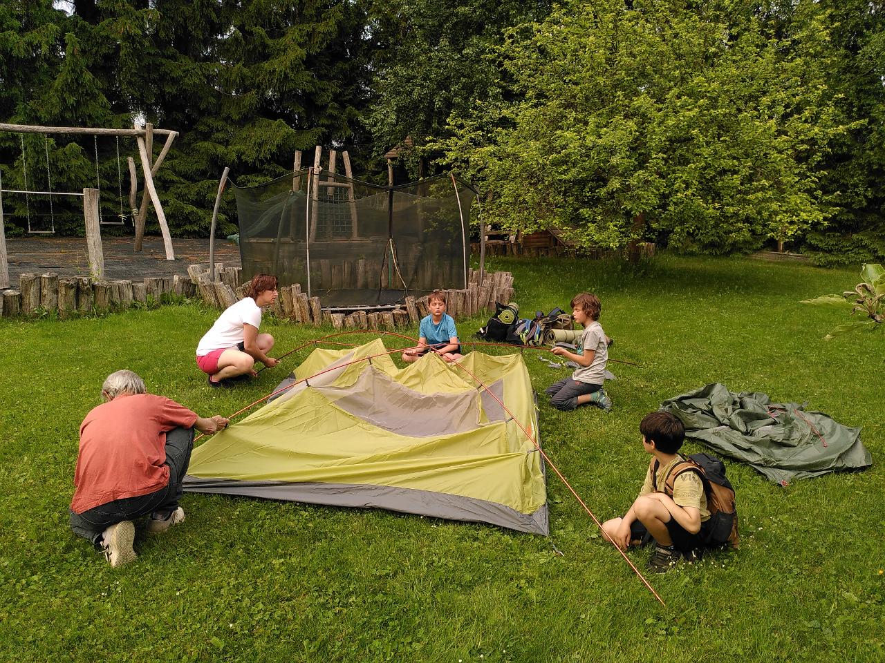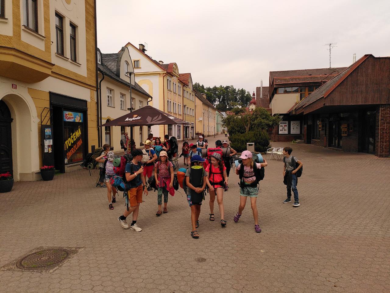 Na konci školního roku jsme i letos vyrazili na třídní výlet. Společně se školáky jsme dali dohromady, co by kdo chtěl během výletu zažít a snažili jsme se najít takovou možnost, která by splnila největší část přání. Před odjezdem vlaku v pondělí ráno jsme měli čas si po skupinkách nakoupit naplánovaného jídlo a rozpočítat peníze. Dále jsme už vyrazili na Horní Adršpach k Saše, kde jsme si pohráli na hřišti, domácím boulderu či v bazéně. Velké batohy nám odvezl Bob, taťka Benjiho na místo kam jsme putovali. Posilněni domácí bramboračkou (od Saši) i zmrzlinou, vyrazili jsme na odpolední putování. Část jsme šli přímo po hranicích, jednou nohou v Polsku, jednou v Česku. Viděli jsme rozpukané pískovce, prošli jsme vysídlenou obec Libnou, přes výhledy z Mirošovických stěn a kolem smírčího kříže na Bukové hoře jsme po skoro 20 km došli až k Benjimu domů, na nejvzdálenější konec Horních Teplic. Každá skupinka si uvařila večeři, postavila stan. Druhý den jsme si užili hřiště, někdo i motorku. Taktéž jsme prohodili pár slov “in English” s Bobem “from the USA”. Pak nás už čekala jen cesta do Teplic na zmrzlinu a vlak. V další části týdne jsme se ve škole věnovali zejména přípravě zahradní slavnosti. Školáci vymýšleli, dělili si role, připravovali kulisy a zkoušeli a zkoušeli.