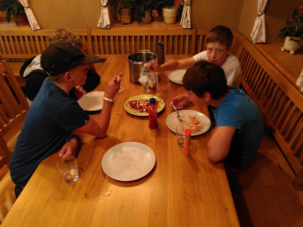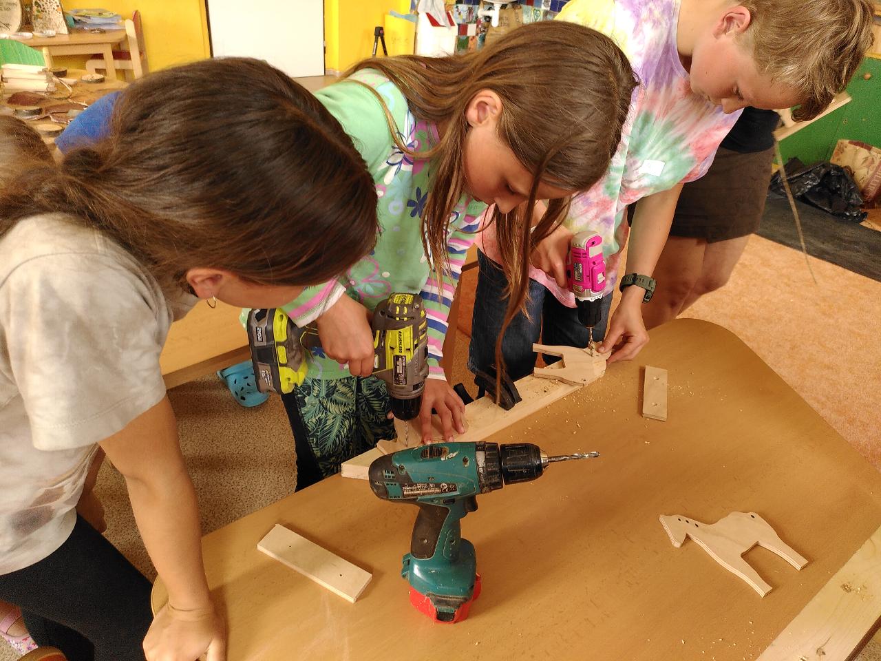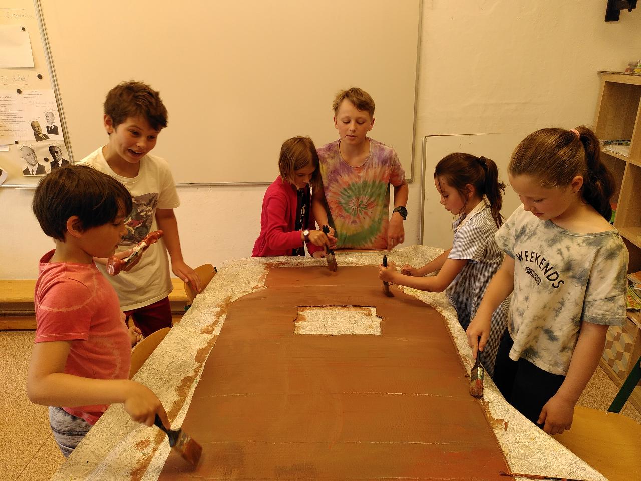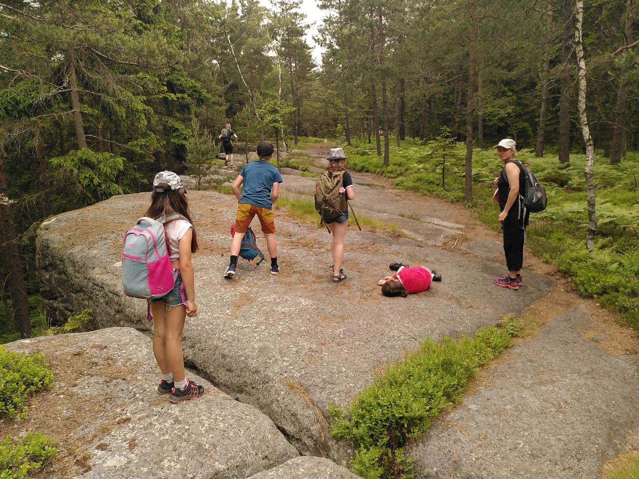 Na konci školního roku jsme i letos vyrazili na třídní výlet. Společně se školáky jsme dali dohromady, co by kdo chtěl během výletu zažít a snažili jsme se najít takovou možnost, která by splnila největší část přání. Před odjezdem vlaku v pondělí ráno jsme měli čas si po skupinkách nakoupit naplánovaného jídlo a rozpočítat peníze. Dále jsme už vyrazili na Horní Adršpach k Saše, kde jsme si pohráli na hřišti, domácím boulderu či v bazéně. Velké batohy nám odvezl Bob, taťka Benjiho na místo kam jsme putovali. Posilněni domácí bramboračkou (od Saši) i zmrzlinou, vyrazili jsme na odpolední putování. Část jsme šli přímo po hranicích, jednou nohou v Polsku, jednou v Česku. Viděli jsme rozpukané pískovce, prošli jsme vysídlenou obec Libnou, přes výhledy z Mirošovických stěn a kolem smírčího kříže na Bukové hoře jsme po skoro 20 km došli až k Benjimu domů, na nejvzdálenější konec Horních Teplic. Každá skupinka si uvařila večeři, postavila stan. Druhý den jsme si užili hřiště, někdo i motorku. Taktéž jsme prohodili pár slov “in English” s Bobem “from the USA”. Pak nás už čekala jen cesta do Teplic na zmrzlinu a vlak. V další části týdne jsme se ve škole věnovali zejména přípravě zahradní slavnosti. Školáci vymýšleli, dělili si role, připravovali kulisy a zkoušeli a zkoušeli.