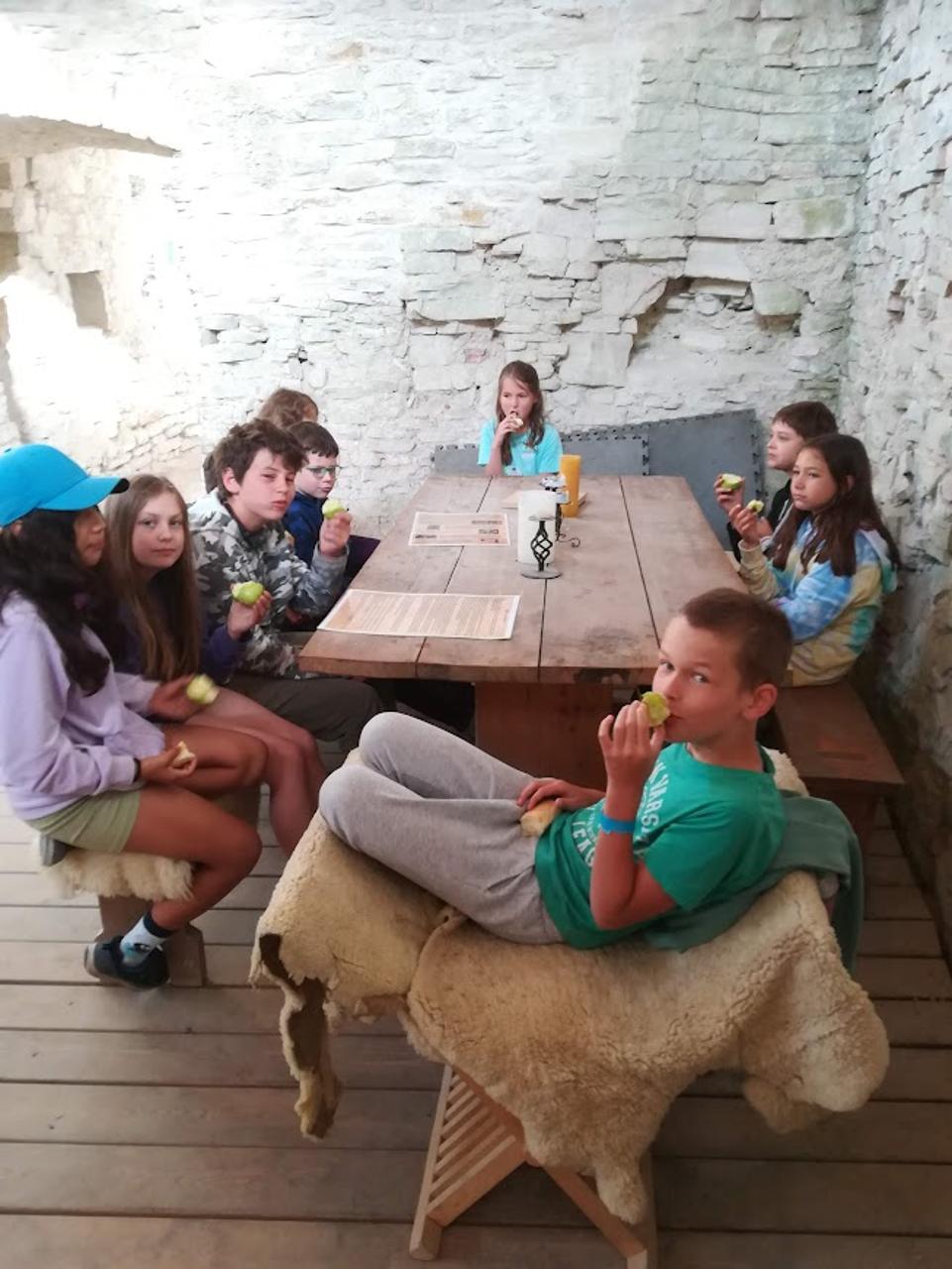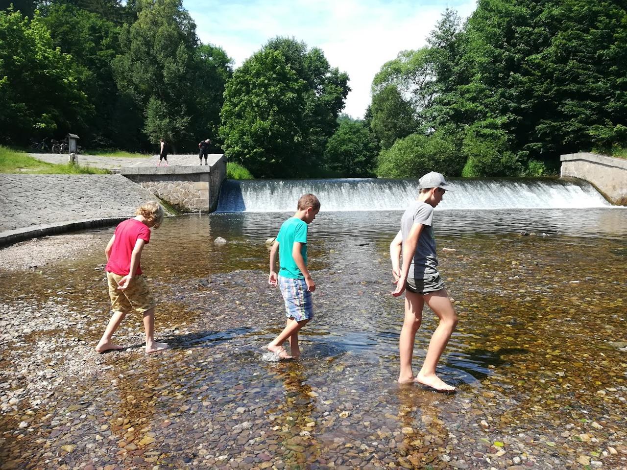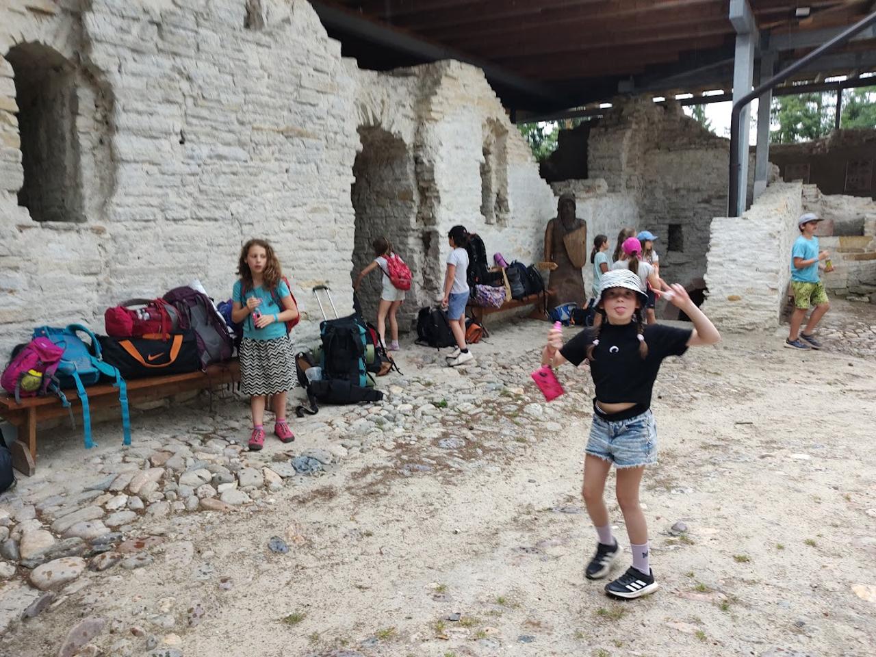 Ve středu ráno jsme se vydali vlakem do České Skalice a odtud jsme se pokračovali pěší túrou stezkou Boženy Němcové. Přes Ratibořice, Boušín, Havlovice a konečná stanice - Vízmburk. Počasí bylo velmi, ale velmi teplé, řeka Úpa nám poskytla osvěžení na několika zastávkách. Na hřišti v Havlovicích jsme vydali poslední síly k všelijakým hrám. Cesta k Vízmburku byla od Havlovic sice krátká, ale hodně náročná na síly. Po prohlídce zříceniny jsme si opekli špekáčky, rohlíky apod. a čekala nás noc na zřícenině. Noc proběhla klidně, jen nějaká podivná šelmička se nám podívala na snídani, kus si odnesla, přesto jsme ráno měli dostatek snídaně a poté se vydali do Úpice pěšky a odtud se vrátili do Mraveniště.