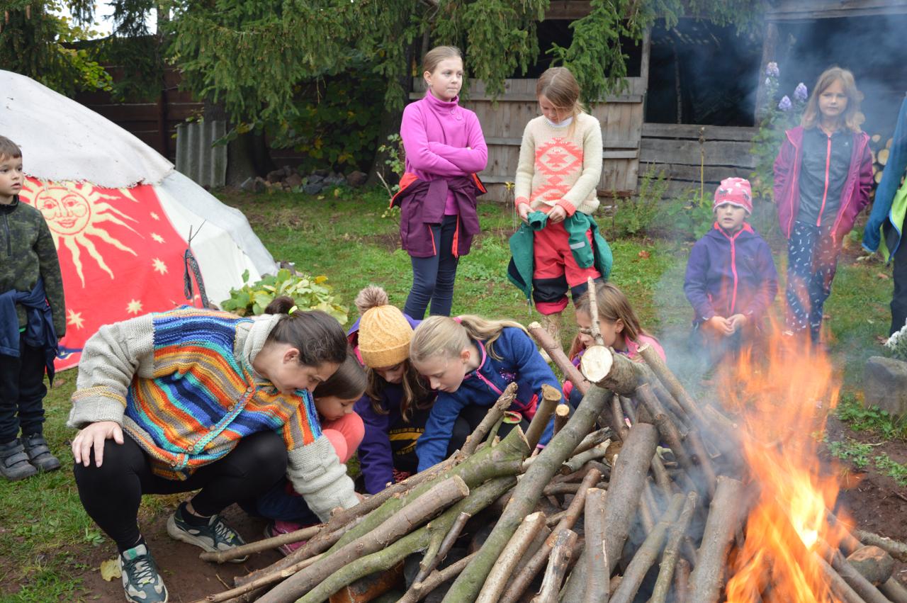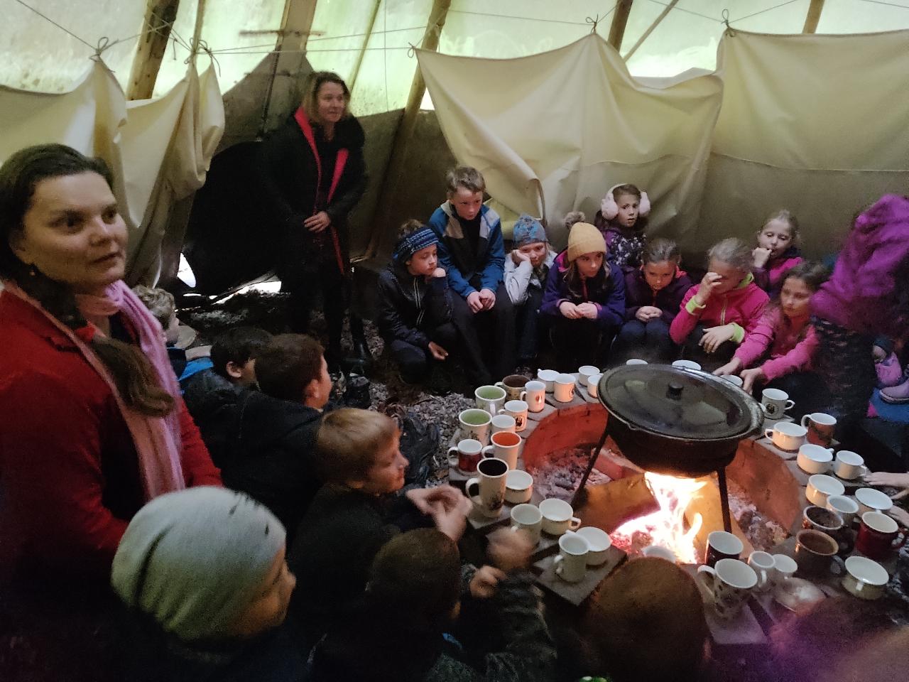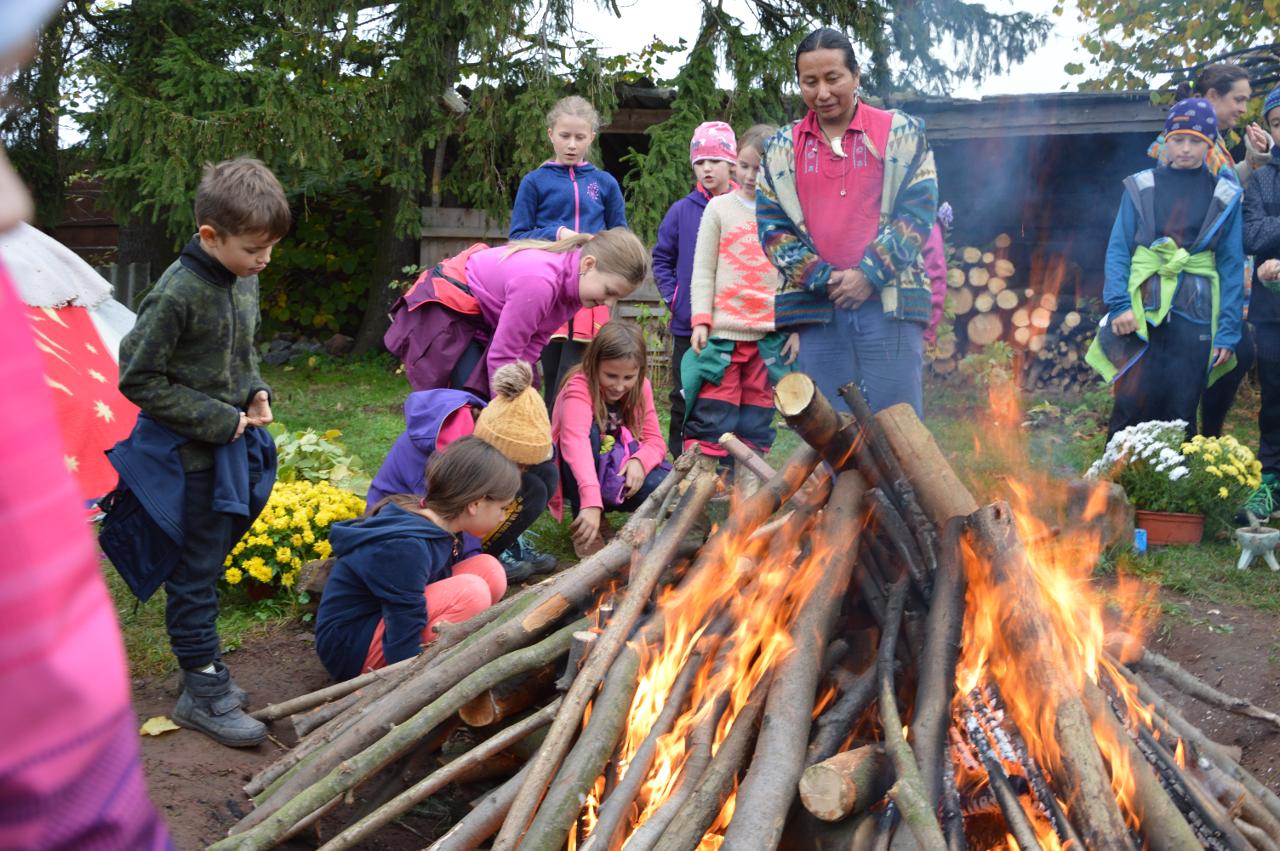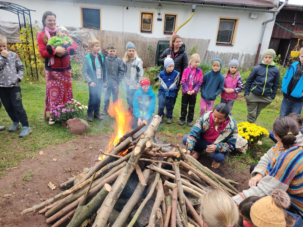 Tento týden byl velmi krátký, protože od středy nastaly vytoužené podzimní prázdniny. Část pondělních hodin jsme věnovali výročí vzniku Československa. Dále jsme se vyjímečně vydali na venkovní den v úterý, kdy v rámci projektu “Lidé kolem nás, aneb dospělí dětem” jsme podnikli cestu do Studýnky. Tam žije Wayra Grefa se sourozenci a rodiči. Nejprve jsme se přivítali v tee-pee u povzbuzujícího čaje, poznali rodiče Wayry - Augustina a Míšu. Augustin nám krátce povyprávěl o zvycích v Ekvádoru, odkud pochází. Poté jsme společně zapálili oheň se čtyřmi elementy - ohně, vody, větru a zemi. Na každého čekal lávový kámen zvaný Babička, který se s naším osobním přáním vložil do ohně. Babičky se poté rozpálené daly do potní chýše, kde se nejen potilo, ale probíhal i očistný rituál. Zchlazení si poté každý vybral sám, pod sprchou, v jezírku, bazéně. Taktéž jsme si připravili a uvařili výtečnou polévku. Sotva jsme ji dojedli už jsme spěchali na autobus, čas byl neúprosný.