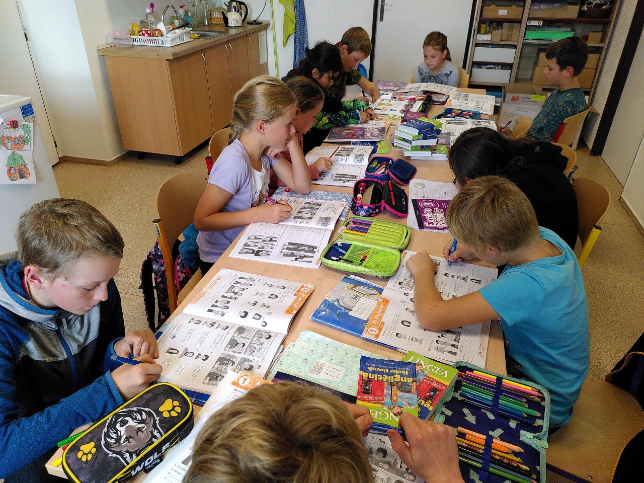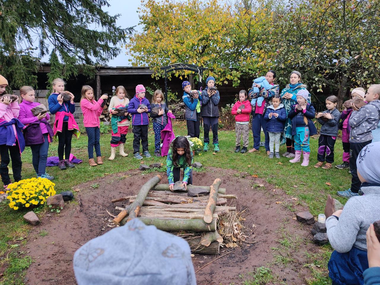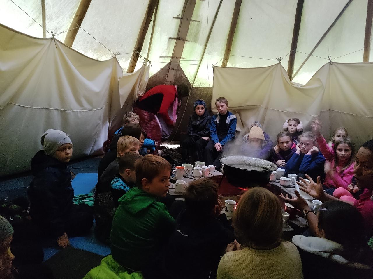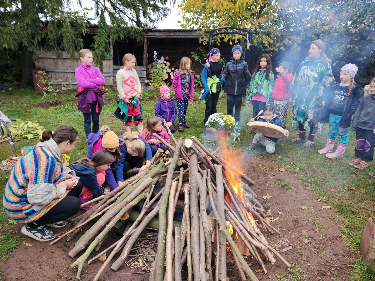 Tento týden byl velmi krátký, protože od středy nastaly vytoužené podzimní prázdniny. Část pondělních hodin jsme věnovali výročí vzniku Československa. Dále jsme se vyjímečně vydali na venkovní den v úterý, kdy v rámci projektu “Lidé kolem nás, aneb dospělí dětem” jsme podnikli cestu do Studýnky. Tam žije Wayra Grefa se sourozenci a rodiči. Nejprve jsme se přivítali v tee-pee u povzbuzujícího čaje, poznali rodiče Wayry - Augustina a Míšu. Augustin nám krátce povyprávěl o zvycích v Ekvádoru, odkud pochází. Poté jsme společně zapálili oheň se čtyřmi elementy - ohně, vody, větru a zemi. Na každého čekal lávový kámen zvaný Babička, který se s naším osobním přáním vložil do ohně. Babičky se poté rozpálené daly do potní chýše, kde se nejen potilo, ale probíhal i očistný rituál. Zchlazení si poté každý vybral sám, pod sprchou, v jezírku, bazéně. Taktéž jsme si připravili a uvařili výtečnou polévku. Sotva jsme ji dojedli už jsme spěchali na autobus, čas byl neúprosný.