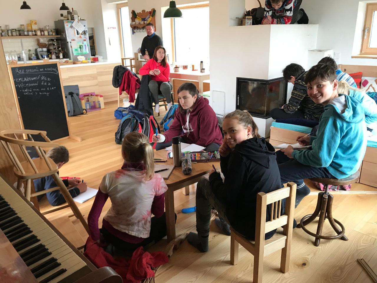 Je jaro a prý se probouzejí i zahradníci a tak se vydáme k Šafránkům domů, abychom se naučili řezat stromy. A druhá skupinka zatím pracuje venku se dřevem a každý má možnost něco si vybudovat. Vznikají tak krmítka, pelechy pro kočky i obrázky. Řezem stromů nás provede zkušený zahrádkář Jirka Bolehovský. U školy také pak zakládáme záhon a sejeme semínka.