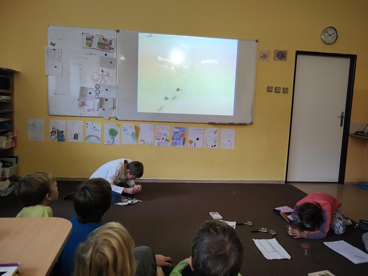 Tento týden jsme pokračovali v určování zvířat. Tentokrát to byli zvířata bez páteře - tedy bezobratlovci. Zjistili jsme i co je smýkačka a na co se používá. Ve čtvrtek jsme se vydali se smýkačkou na "lov" bezobratlovců. Jelikož nám počasí nepřálo a pršelo, měli jsme to docela těžké. Přesto i tak jsme něco ulovili, ve třídě v suchu pozorovali a poté zvířátka zase vypustili na svobodu.