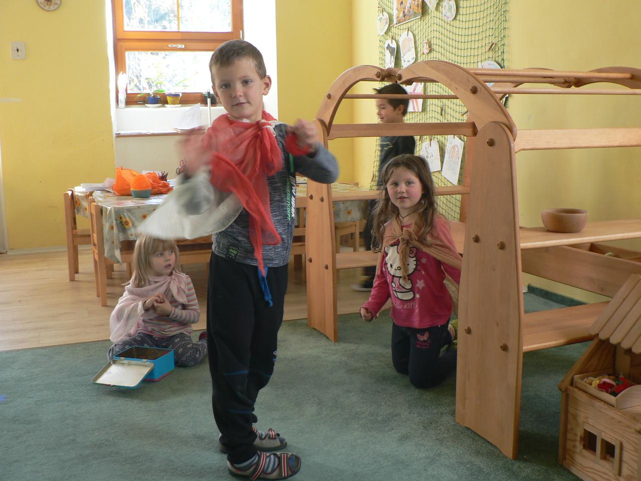 Tento týden nás provázely rozverné veverky a veselá i poučná Veverčí pohádka. Vyprávěli jsme si o lenivém veverčákovi Zrzkovi, o hodném a moudrém veverčím dědečkovi, o tom, že „bez práce nejsou koláče“ a také o tom, že si každý zaslouží druhou šanci. Dozvěděli jsme se, kde veverky žijí, čím se doopravdy živí, kam schovávají zásoby na zimu a kdo je v lese nejlepší detektiv. A stejně jako veverky jsme louskali ořechy, sbírali jablíčka a dělali si zásoby na zimu. Také jsme hledali zatoulané oříšky v naší herně a zahráli si veverčí divadýlko. V rámci tvoření jsme míchali barvy, stříhali, lepili, skládali a barvili. Venku jsme lezli po stromech, šplhali po větvích, váleli sudy a došlo i na vzájemné přetlačování a poměřování síly. Všechny aktivity jsme si moc užili a těšíme se, co nám přinese další listopadový týden.