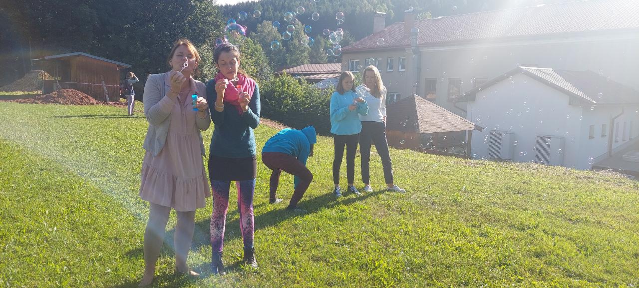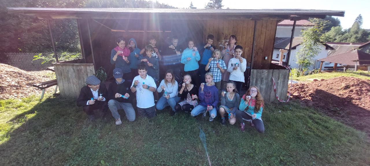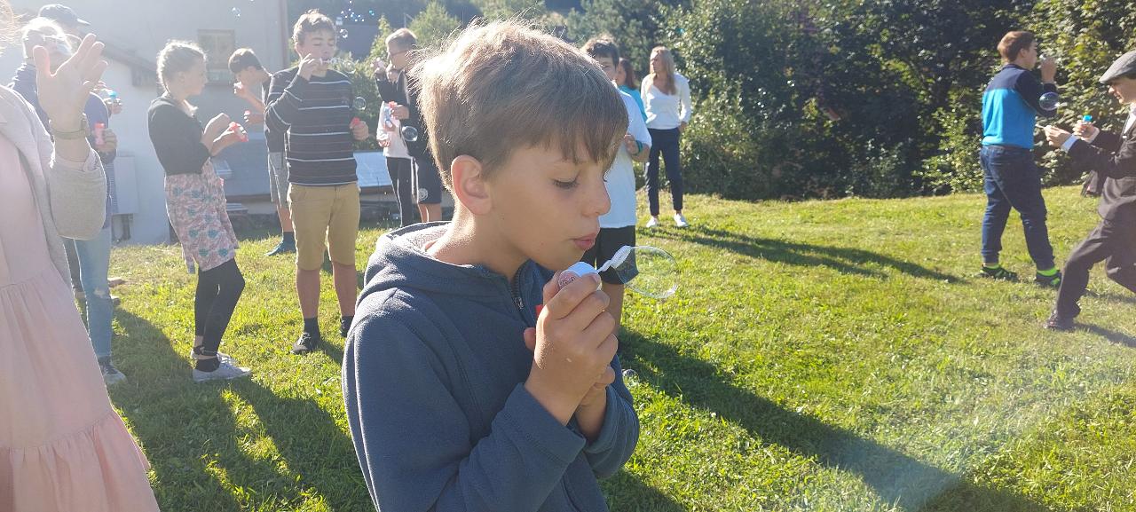 V tomto týdnu jsme zahájili nový školní rok společně na Návsi, kde jsme si zazpívali píseň (Chválím tě, země má) a vzájemně se představili. Naše třída se poté odebrala na hřiště, kde jsme pomocí bublifuků odfoukli všechny naše starosti, obavy. Ve třídě jsme se pustili do tvoření narozeninové, kruhové výseče a tvoření puzzle.