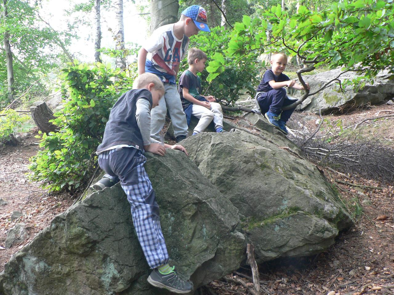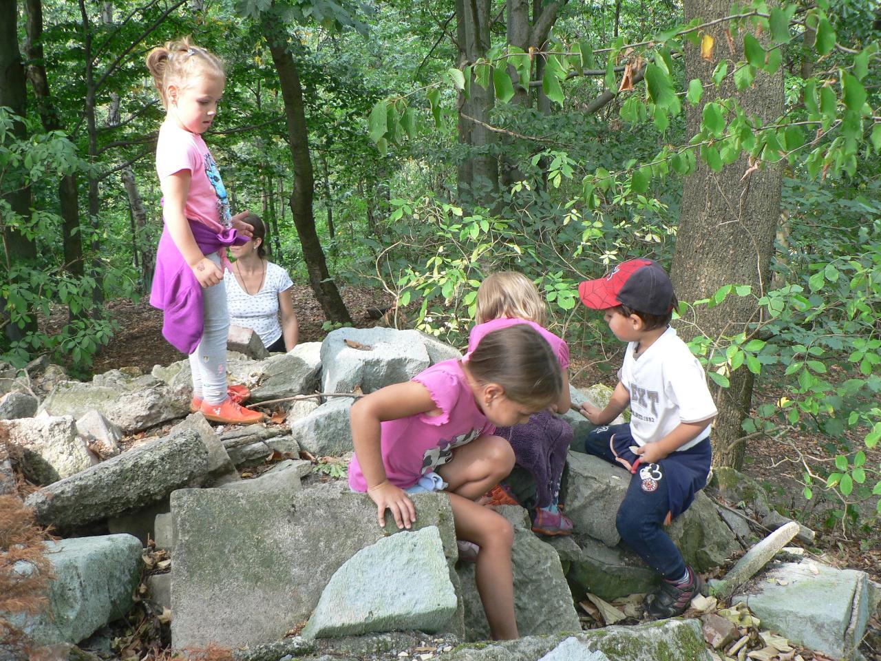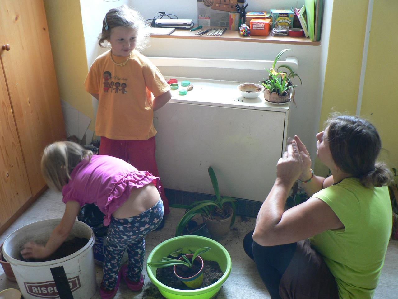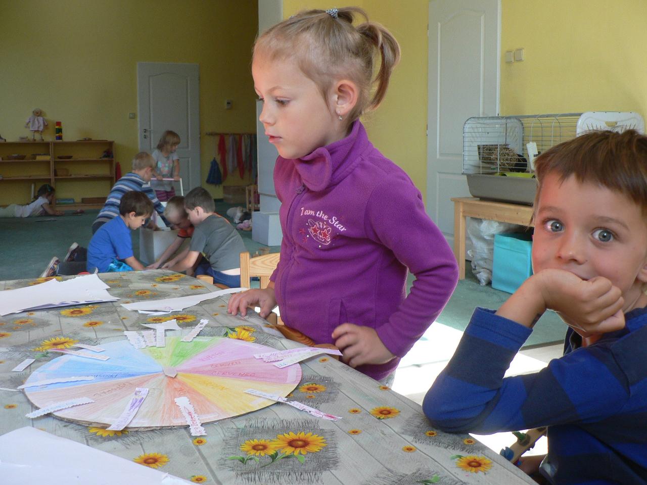 První týden ve školce byl pro nás všechny poznávací a seznamovací. Děti přijely nabité zážitky z prázdnin, a tak jsme si povídali, kde všude cestovaly a co přitom zažily. K tomu nám pomohla i nová říkačka o pěti malých výletníčcích, kterou jsme propojili s pohybem a připomněli si tak letní cestování. A jako malí výletníčci jsme také pěšky a chvílemi i klusem začali prozkoumávat okolí školky. Dostali jsme se na louky i do lesa, pozorovali, co se děje v trávě, stavěli domečky v lese, ochutnávali jsme čerstvé ořechy, sbírali šípky na voňavý čaj a také žaludy pro zvířátka na zimu. Děti si také mohly pomalovat své hrnečky na pití a společně vytvořily kalendář se svými jmény a narozeninami. Malovali jsme také květináče, do kterých jsme zasadili květiny a které nám teď zdobí hernu a některým dětem i jejich domovy. A při tom všem jsme se učili být spolu, vzájemně respektovat jeden druhého a už teď se těšíme, co dalšího spolu prožijeme.