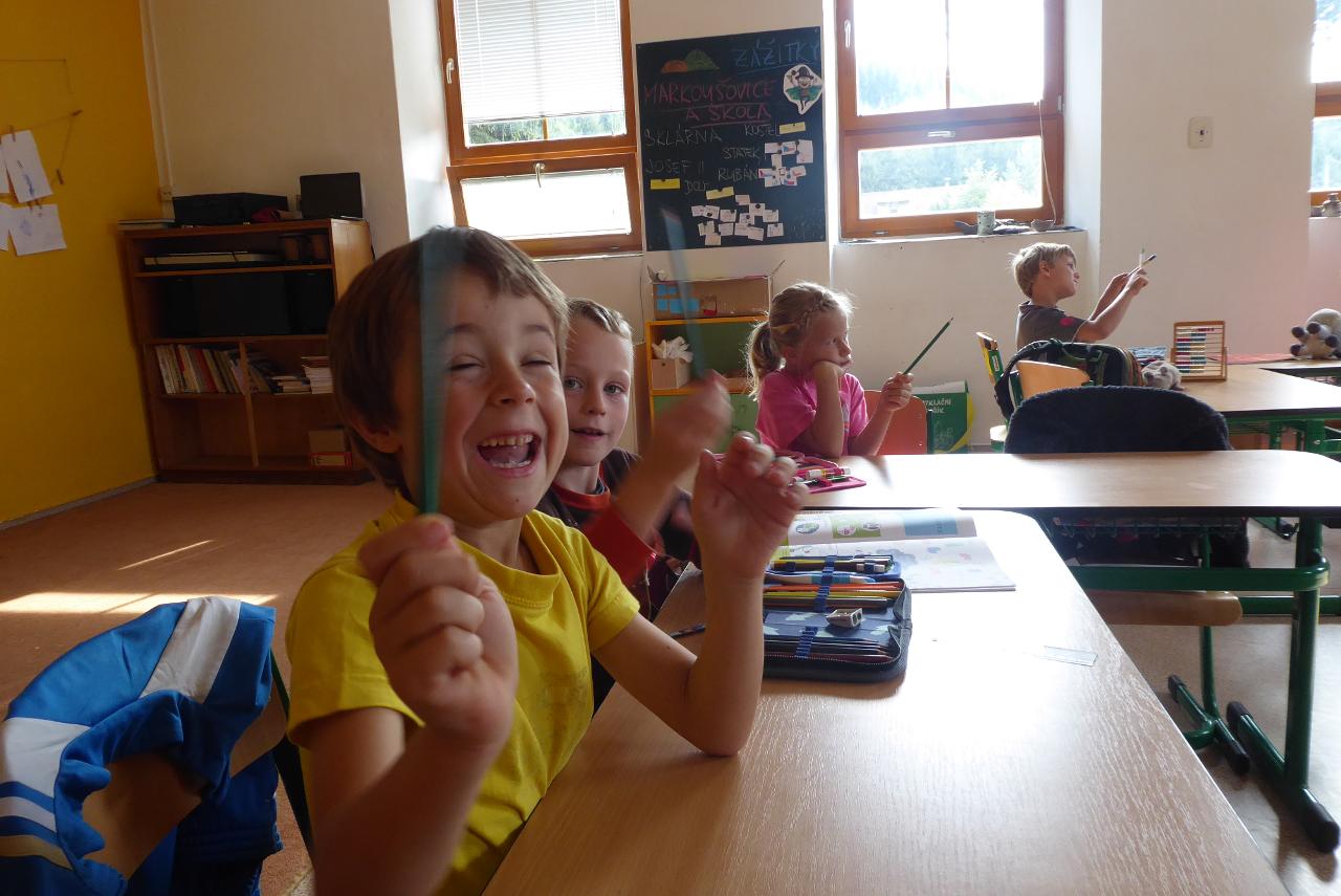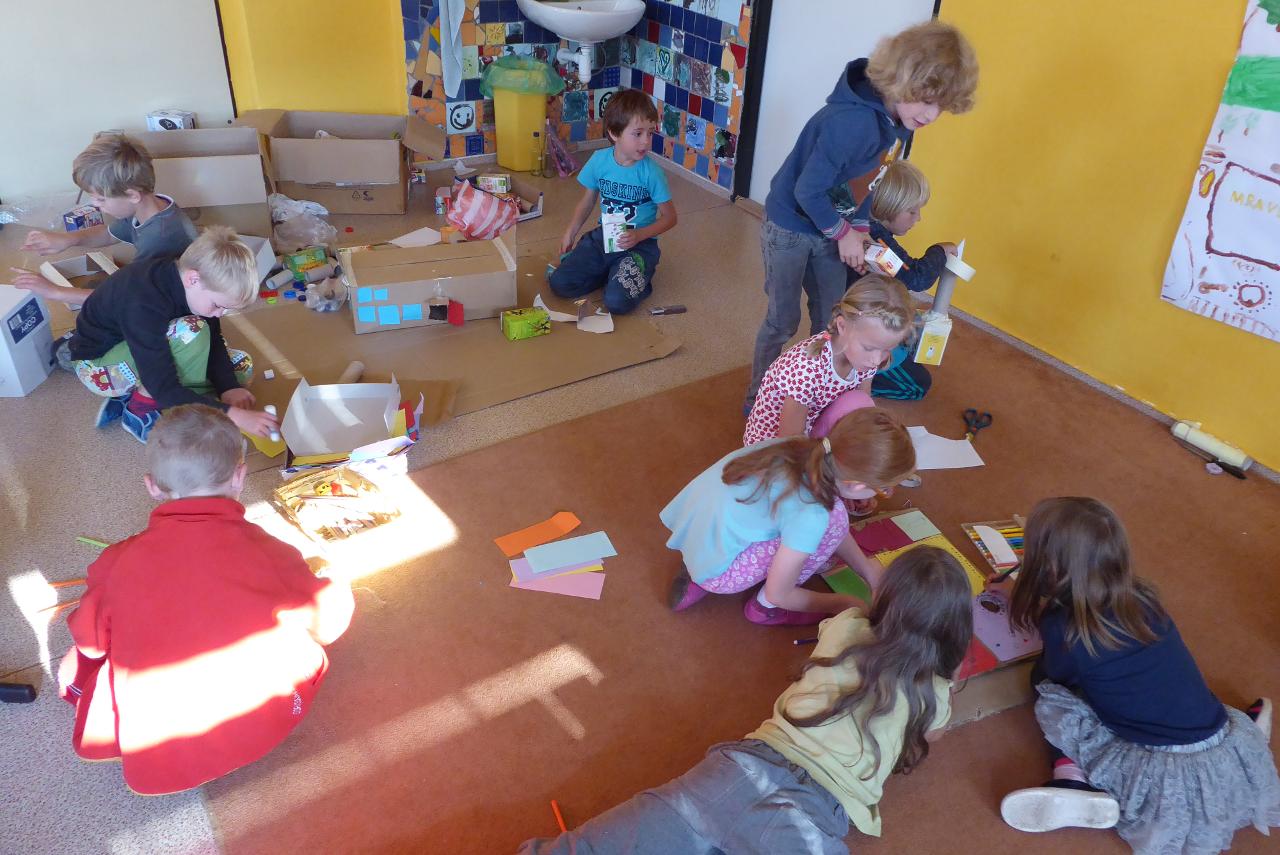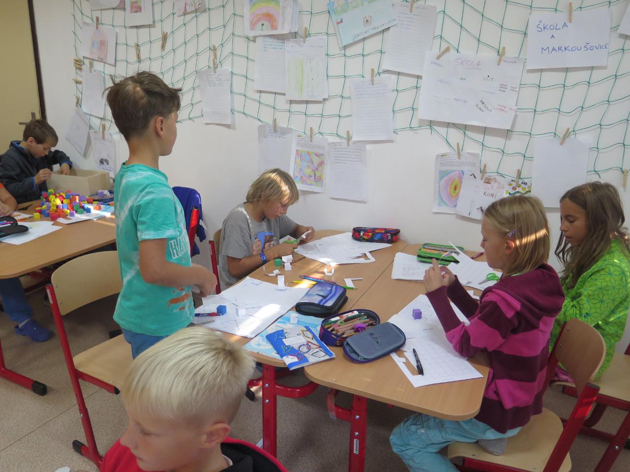 Starší školáci oceňují hodiny tzv. ČMUKu :) V rámci týdne mají vyhrazený prostor, kde si sami volí a organizují práci - kdy a na čem budou pracovat, jestli na českém jazyce, matematice nebo na tvoření v předmětu umění a kultura. Také začali tvořit draky a v angličtině si procvičili nebo naučili představení sebe sama.