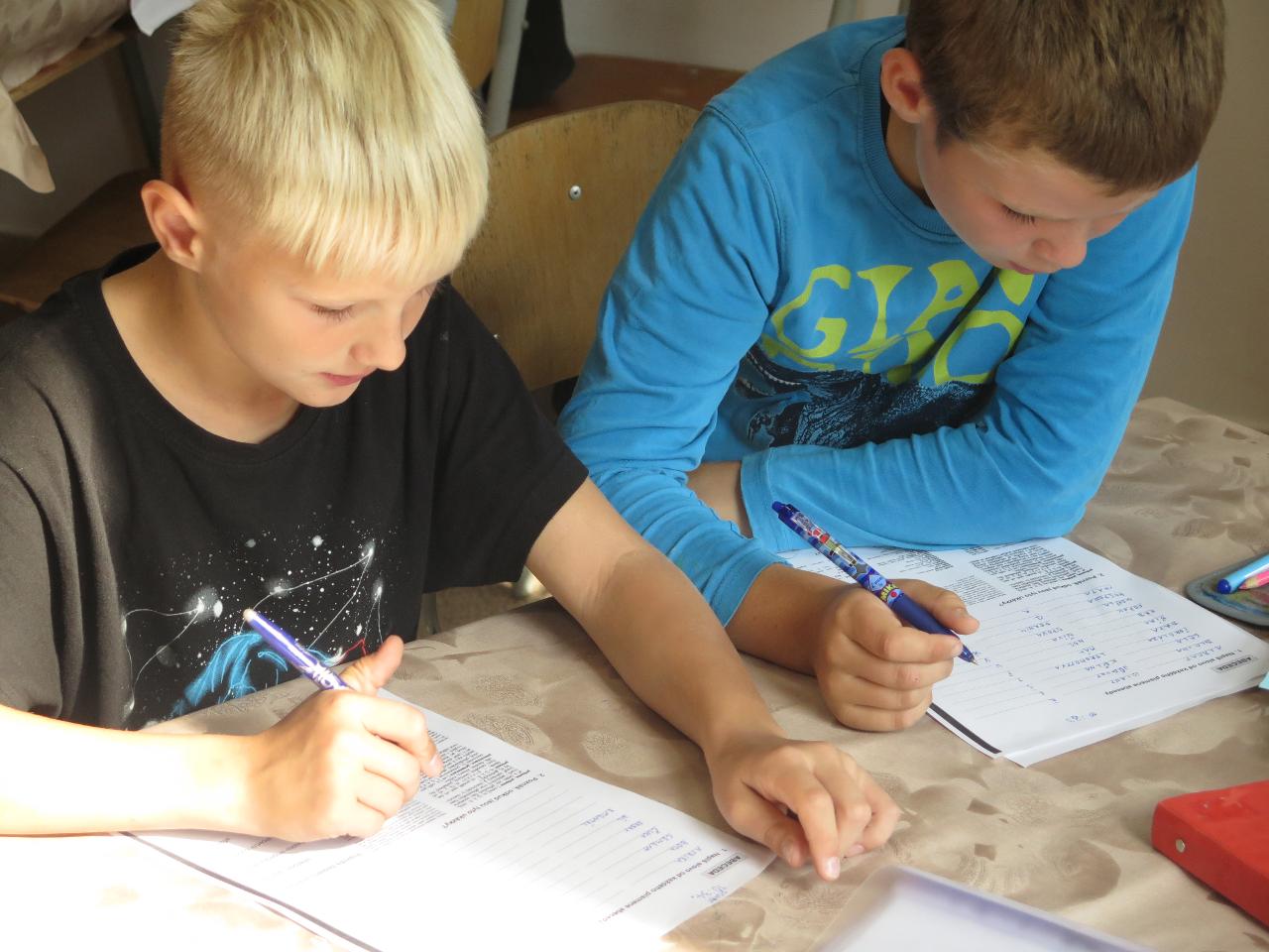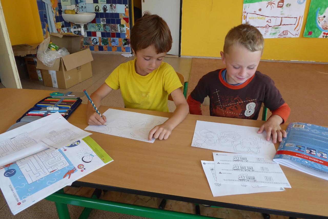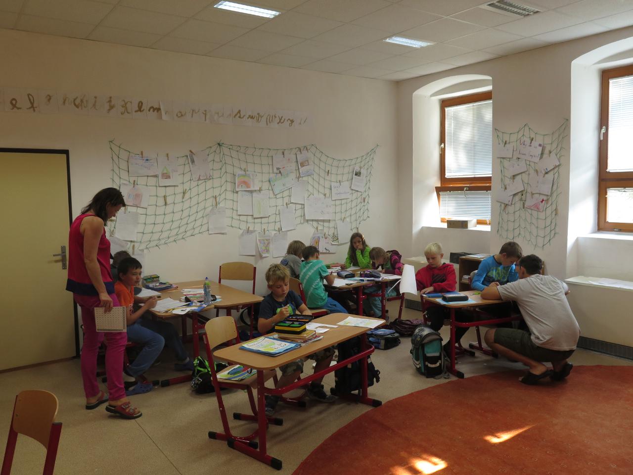 Starší školáci oceňují hodiny tzv. ČMUKu :) V rámci týdne mají vyhrazený prostor, kde si sami volí a organizují práci - kdy a na čem budou pracovat, jestli na českém jazyce, matematice nebo na tvoření v předmětu umění a kultura. Také začali tvořit draky a v angličtině si procvičili nebo naučili představení sebe sama.