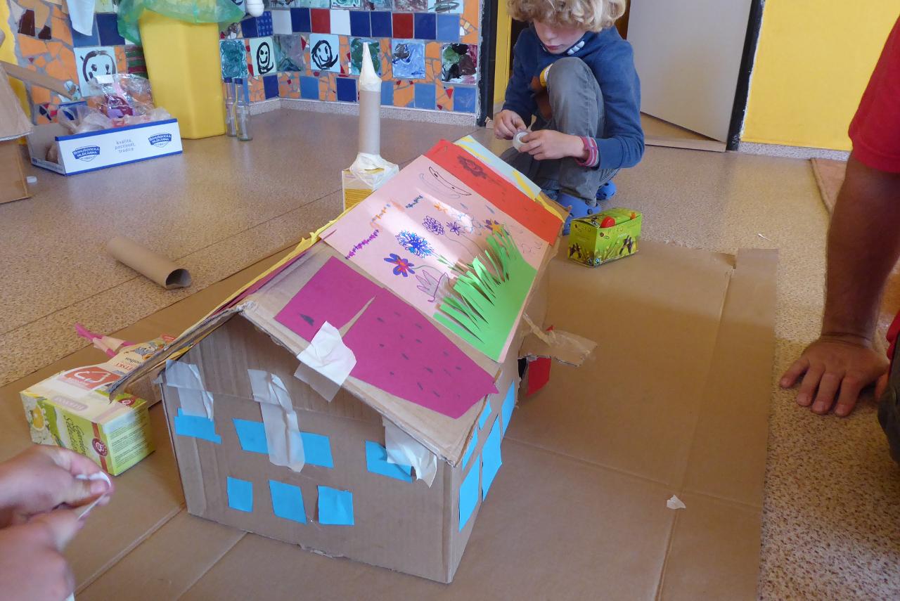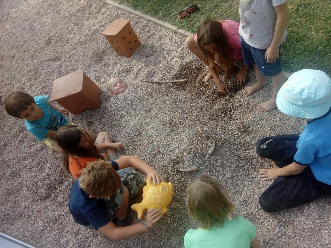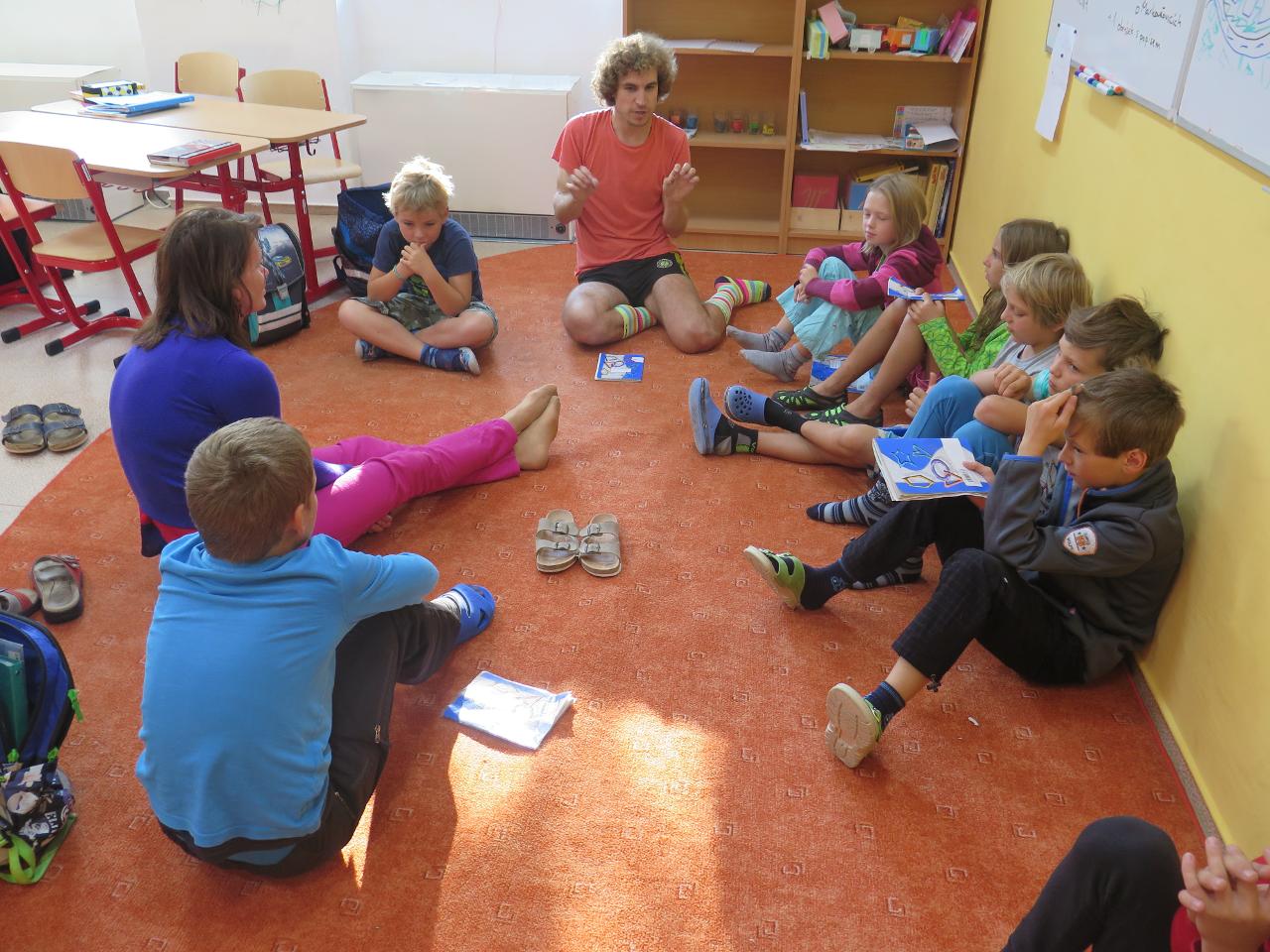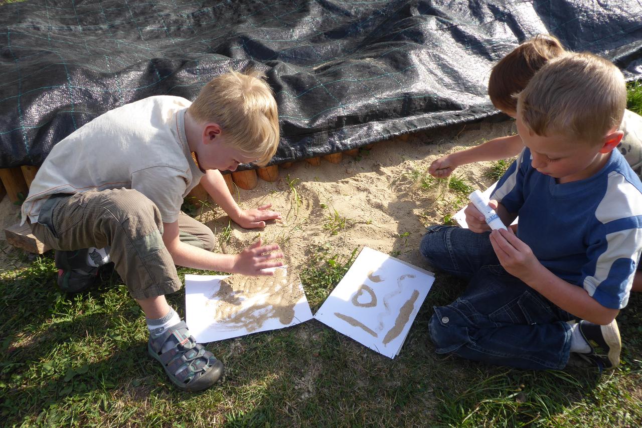 S menšími dětmi jsme si pak vyrobili model školy, kostela a blízkého okolí. V českém jazyce jsme objevovali dřevěná písmenka nebo jsme si parádně uvolnili ruce malováním pískových obrázků. V matematice jsme s nejmenšími objevovali nová matematická prostředí Hejného matematiky, a to hlavně vláčky a krychlové stavby. A v angličtině jsme si písničkou i s pastelkami zopakovali barvy a moc nás to bavilo.