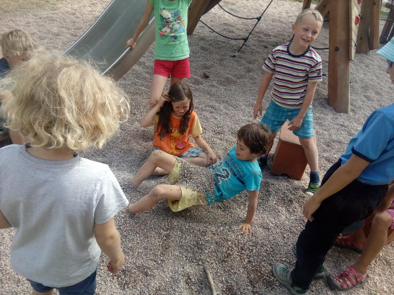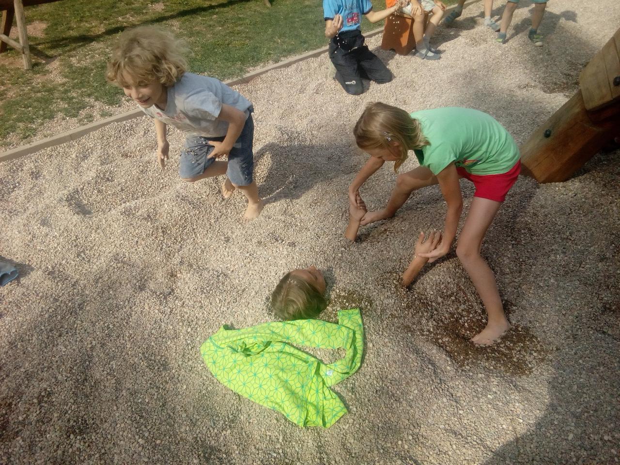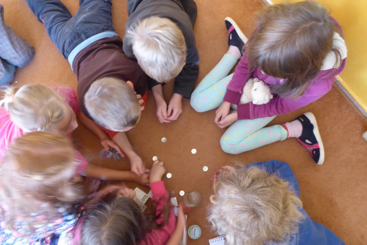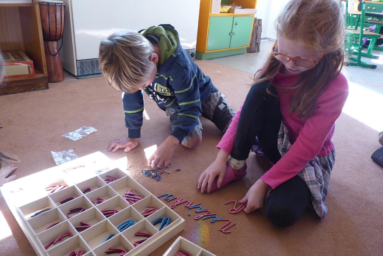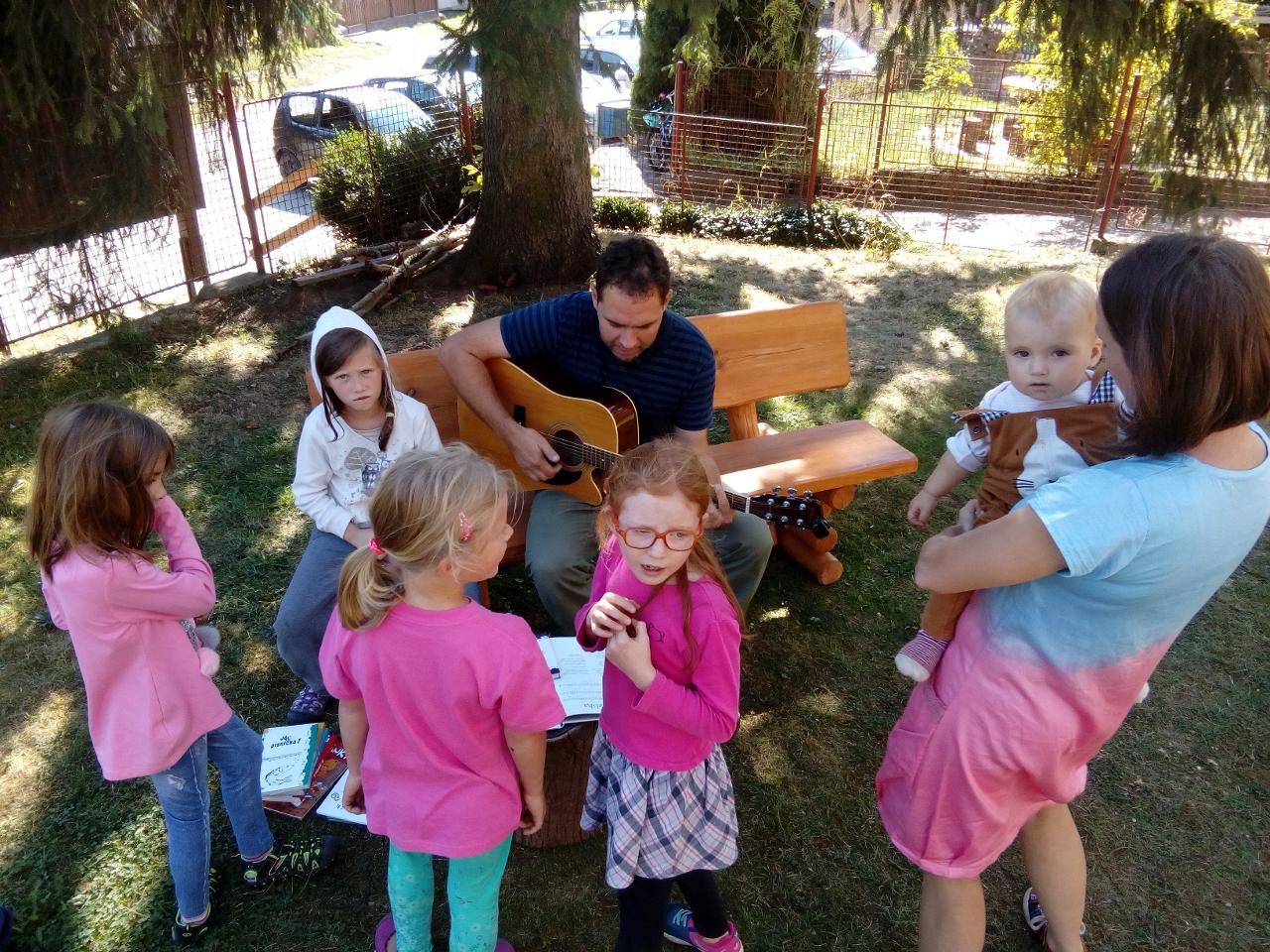 S menšími dětmi jsme si pak vyrobili model školy, kostela a blízkého okolí. V českém jazyce jsme objevovali dřevěná písmenka nebo jsme si parádně uvolnili ruce malováním pískových obrázků. V matematice jsme s nejmenšími objevovali nová matematická prostředí Hejného matematiky, a to hlavně vláčky a krychlové stavby. A v angličtině jsme si písničkou i s pastelkami zopakovali barvy a moc nás to bavilo.