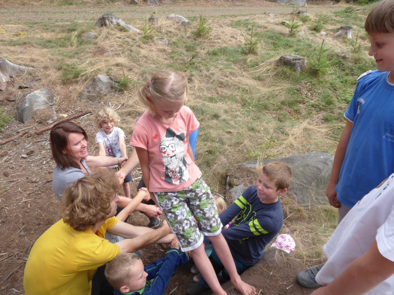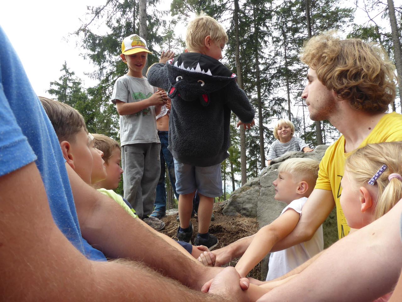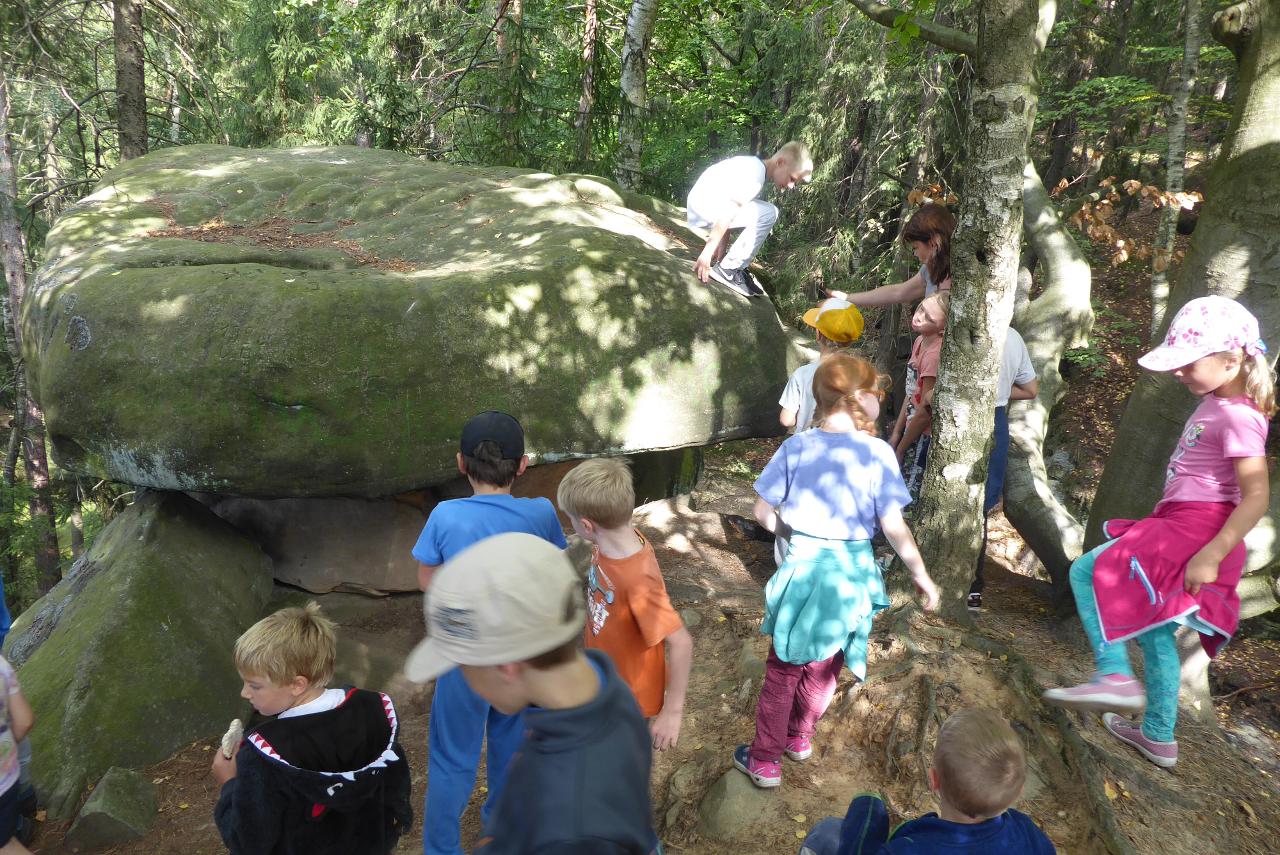 V rámci venkovního dne jsme vyrazili na Čížkovy kameny za poznáním širšího přírodního okolí školy a díky společné přípravě oběda od přinesení surovin a jejich krájení přes sbírání dřeva až po míchání kotlíku jsme posilovali spolupráci. Rozmanité hry nás zase vedly k posilování vzájemné důvěry a užili jsme si i skalní prolézačky.