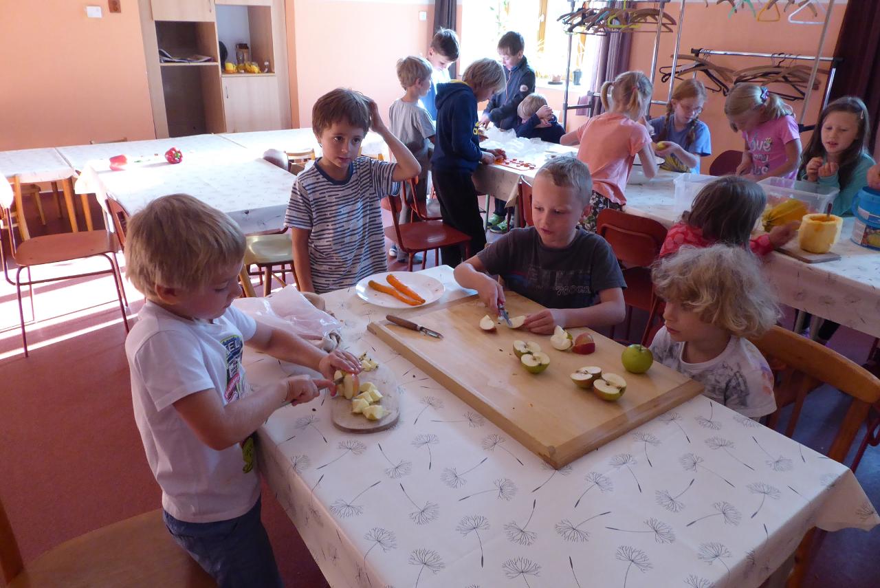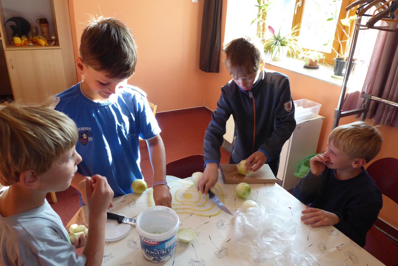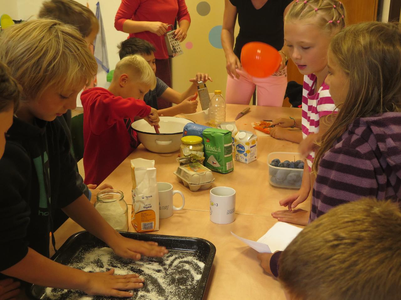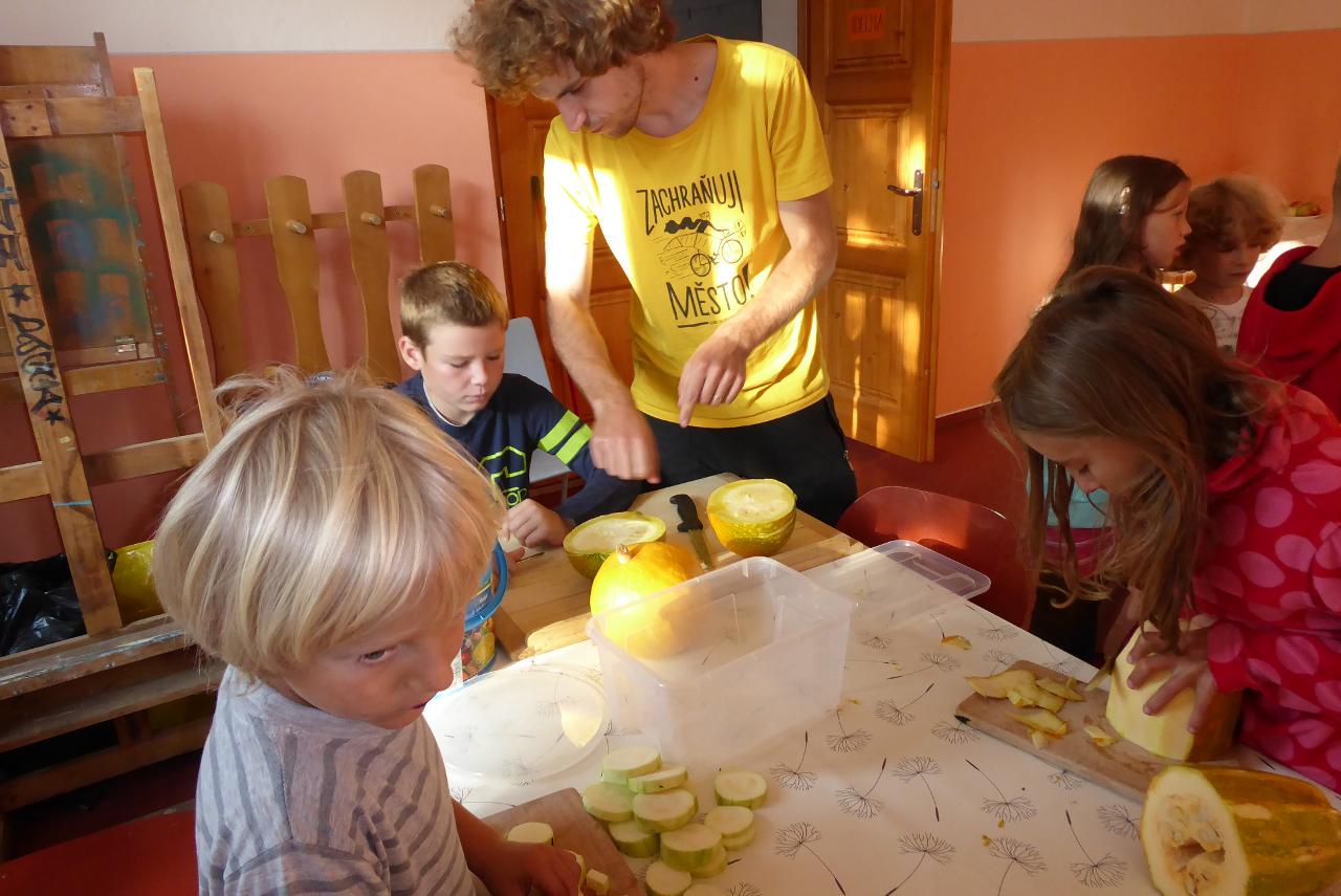 Také jsme v pátek společně připravili hojné dobroty (švestkový koláč, rozmanité pomazánky) na sobotní slavnost - Markoušovické rubání, kde Mraveniště zajišťovalo část občerstvení. Díky dovednostem z matematiky i jiných předmětů pak školáci zvládli jednotlivé výrobky označit, nacenit a prodat návštěvníkům :-)