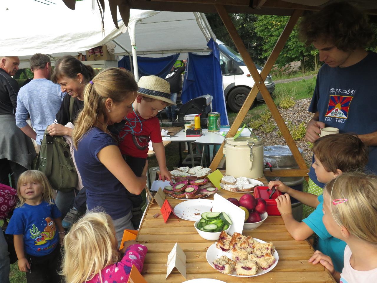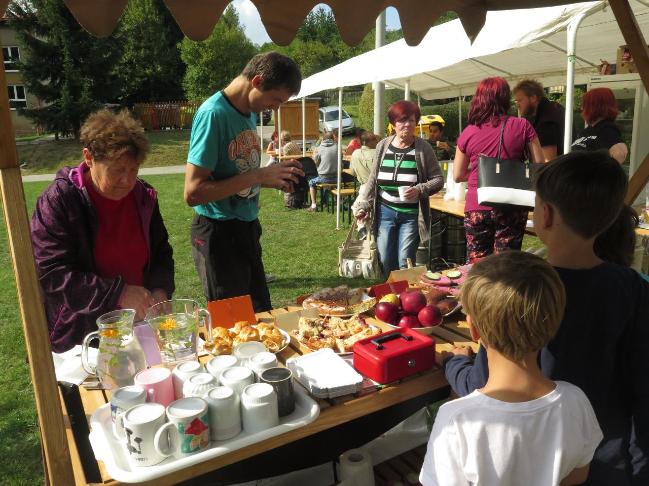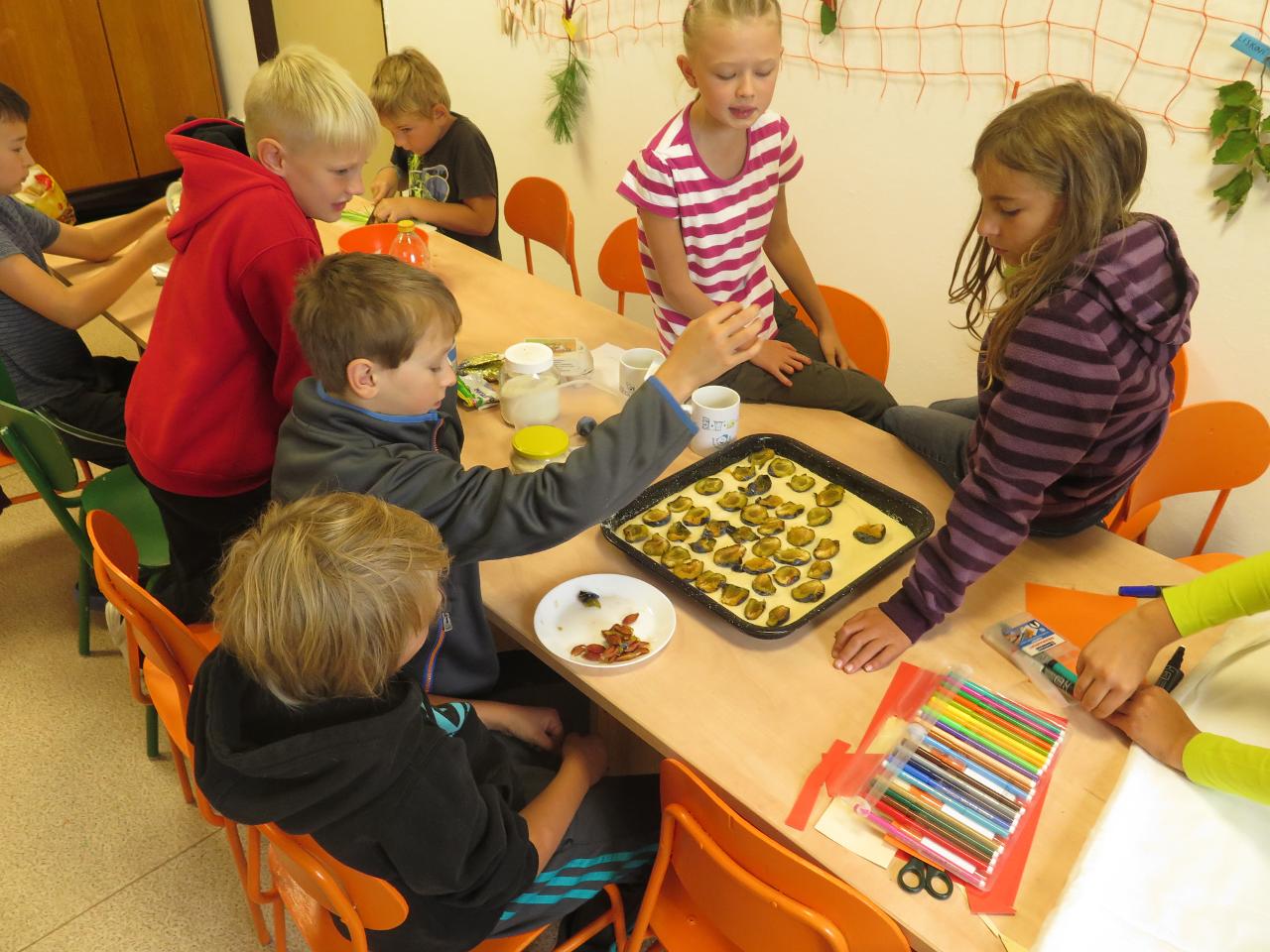 Také jsme v pátek společně připravili hojné dobroty (švestkový koláč, rozmanité pomazánky) na sobotní slavnost - Markoušovické rubání, kde Mraveniště zajišťovalo část občerstvení. Díky dovednostem z matematiky i jiných předmětů pak školáci zvládli jednotlivé výrobky označit, nacenit a prodat návštěvníkům :-)