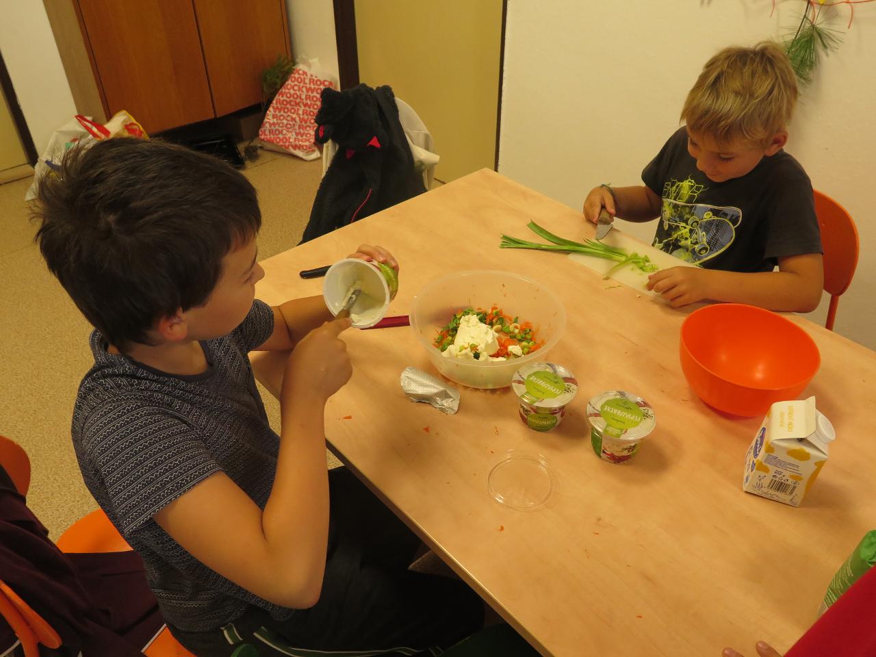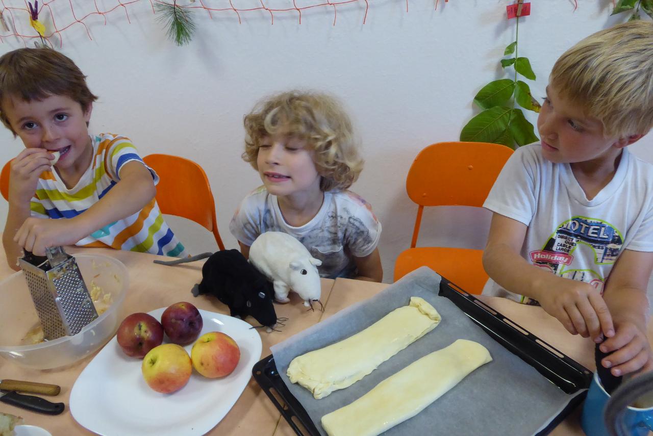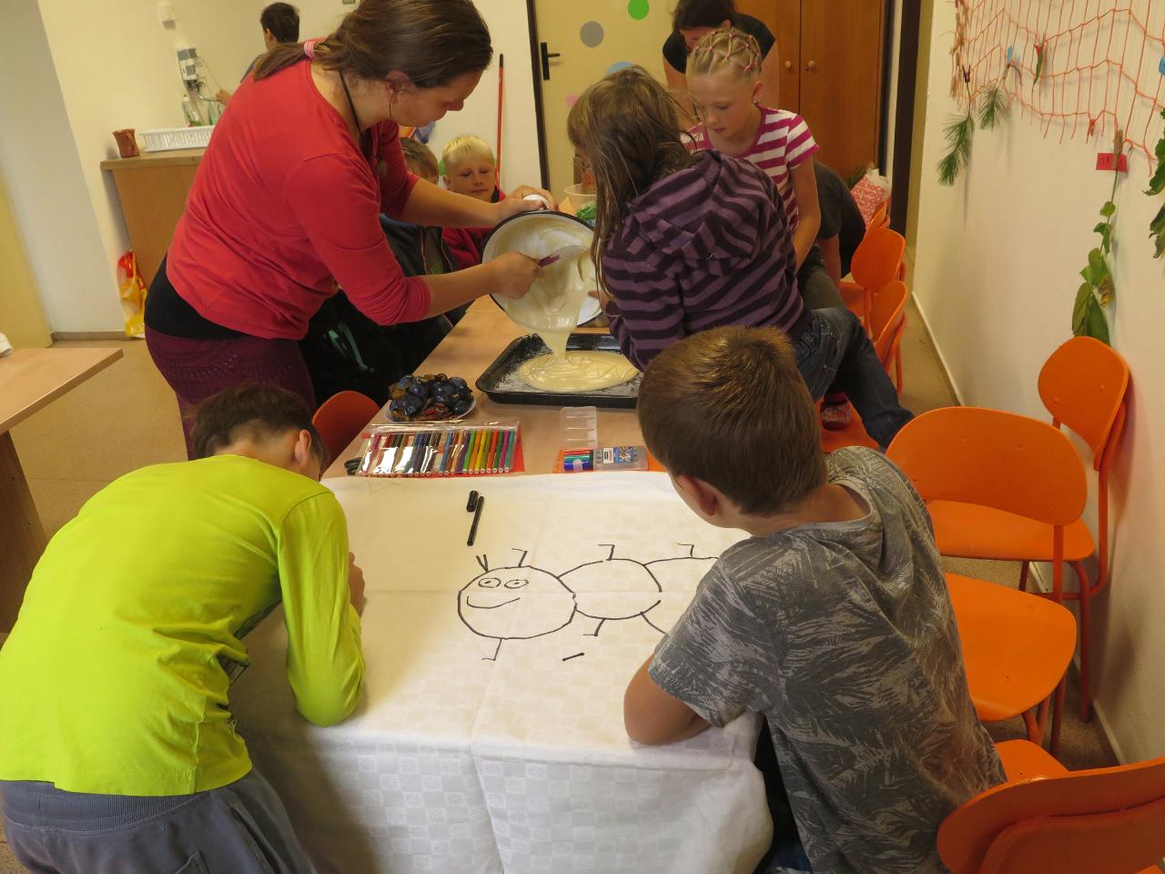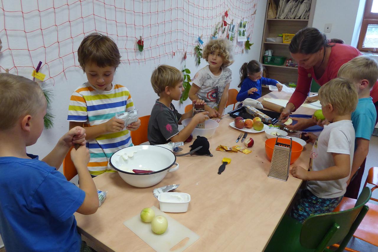 Také jsme v pátek společně připravili hojné dobroty (švestkový koláč, rozmanité pomazánky) na sobotní slavnost - Markoušovické rubání, kde Mraveniště zajišťovalo část občerstvení. Díky dovednostem z matematiky i jiných předmětů pak školáci zvládli jednotlivé výrobky označit, nacenit a prodat návštěvníkům :-)
