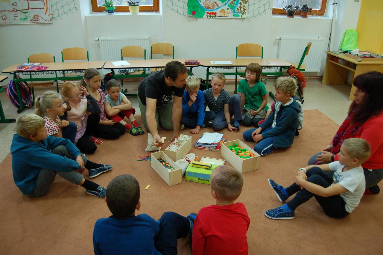 Druhý školní týden nás již dovedl k objevování jednotlivých předmětů a upevnění rytmu běžného školního týdne. Školáci tak zažili první češtinu, matematiku nebo angličtinu letošního roku. Dále jsme také podporovali společně vytvořená pravidla a spolupráci prostřednictvím her a dalších společných aktivit. K mravenčí písničce přibyla nová sloka o předcházejícím týdnu, kterou jsme si společně zazpívali při celoškolním zahájení týdne v pondělí na markoušovické návsi a pak opět v pátek při zakončení ve škole. Starší školáci taktéž poprvé zažili možnosti učení, které jím nabízí kombinovaný hodina s názvem ČAjMUK, kde si sami volí, jakou samostatnou práci z nabídky jaký den vypracují. Ve čtvrtek jsme se vypravili na venkovní den za poznáním Markoušovic v historickém kontextu. Venkovní den umožnil školákům prostřednictvím textů z kronik, mapy, obrázků a především vlastního pozorování objevit, kde byl před sto lety řezník, kde se prodávaly látky, kde byl pekař, jakými jazyky se tu mluvilo a z jakého důvodu je to dnes jinak či kdy a proč navštívil obec císař Josef II. Odpovědi na rozmanité otázky či řešení matematických úkolů umožnilo školákům složit a zjistit z jednotlivých písmen jeden z cílů dne - výstup na markoušovickou rozhlednu. Z rozhledny na hřebenu Jestřebích hor, kam vystoupali všichni přítomní školáci, jsme se rozhlédli od Železných hor přes hory Javoří či Zviřinu až po tři nejvyšší vrcholky Česka.