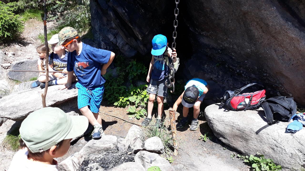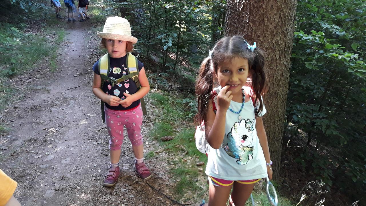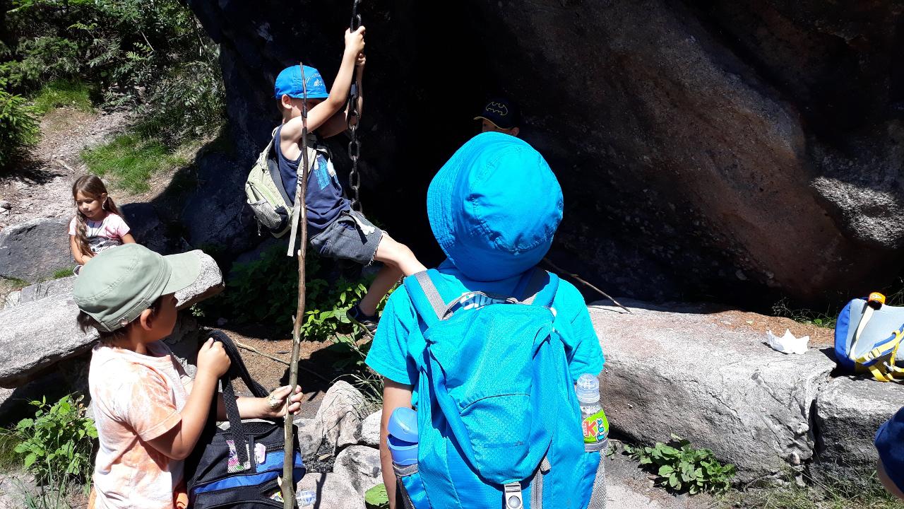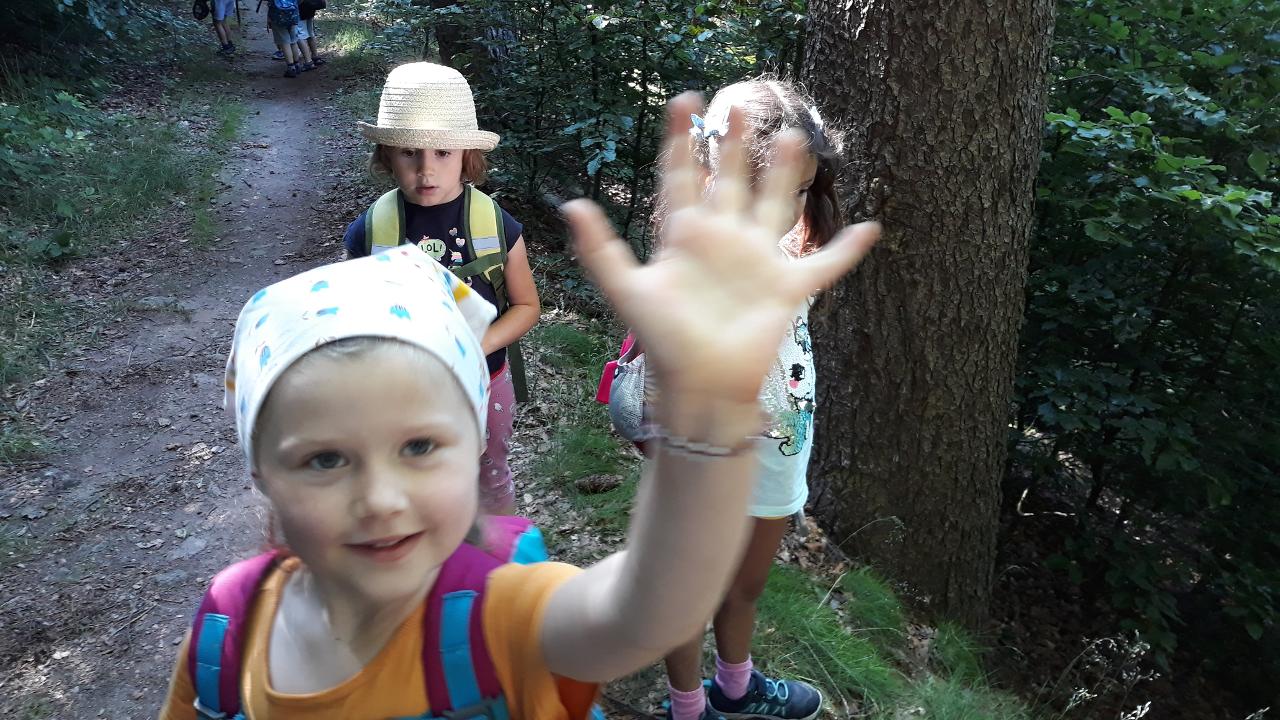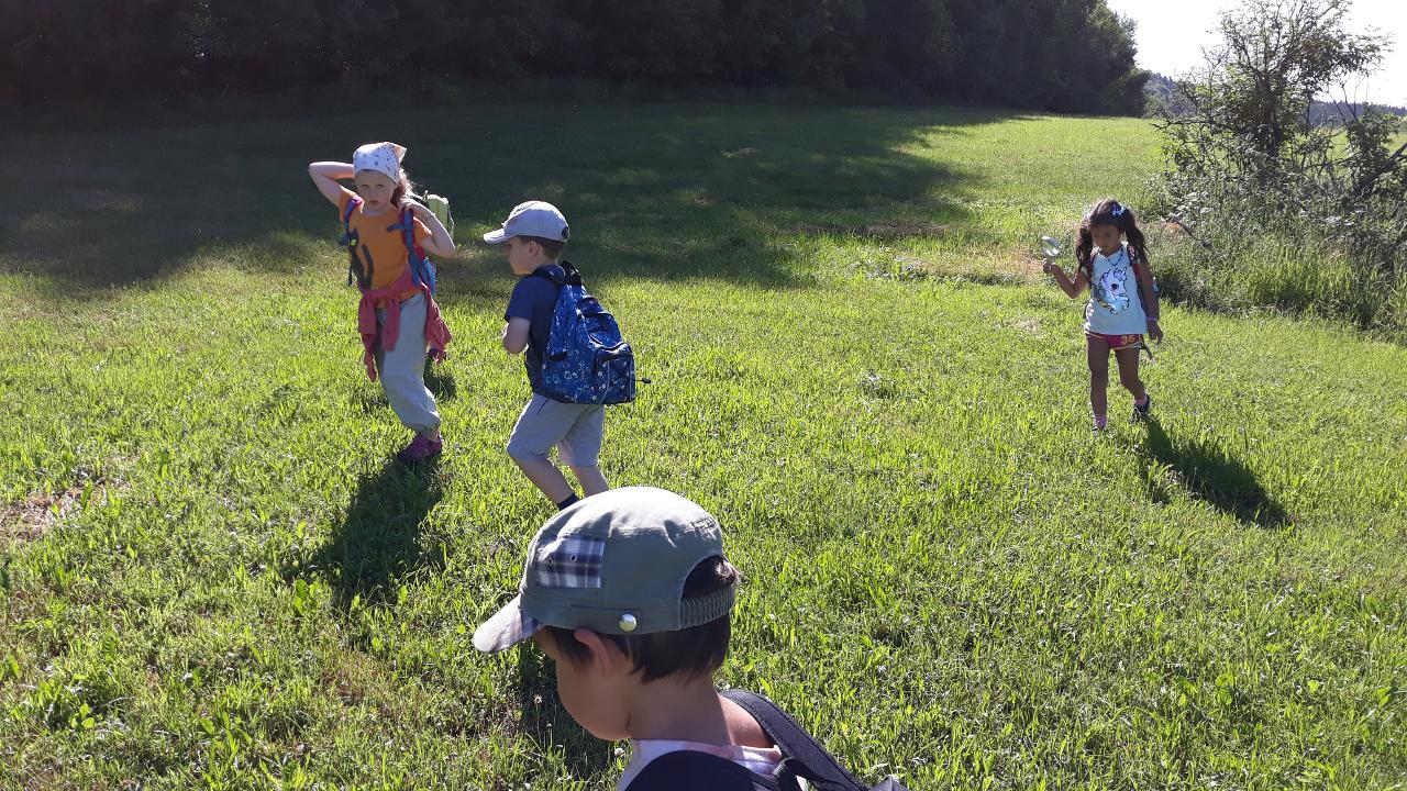 Hned v pondělí jsme s dětmi vyrazili na putování za poznáním. Naší cestou nás provázel příběh o malých indiánech z jedné daleké vesnice, kteří se vydali na cestu na vysokou horu, na cestu za poznáním sebe sama. S dětmi jsme cestou plnili různé úkoly, při kterých se projevila naše zručnost, šikovnost, také vytrvalost a schopnost překonávat překážky. Podívali jsme se do loupežnické jeskyně, sbírali dřevo na oheň, ořezávali si klacky na opékání, pochutnali si na čerstvých borůvkách a objevovali krásy okolní přírody. Všechny děti prokázaly velkou statečnost během celé cesty a také to, že umí táhnout za jeden provaz a navzájem si pomáhat, když je potřeba. Celý týden bylo velmi horké počasí, a tak jsme se také znovu vyrazili zchladit do potoka, naposledy navštívili naše oblíbená místa a společně si zahráli oblíbené hry nebo zpívali písničky, které jsme se společně během roku naučili. Poslední den školky jsme se také rozloučili s našimi předškoláčky.