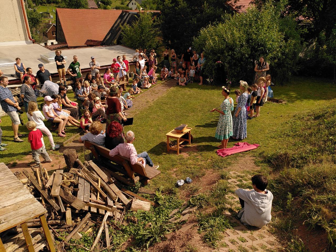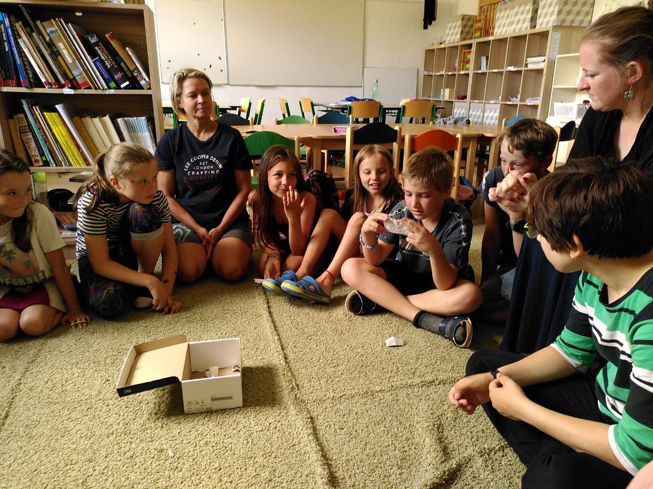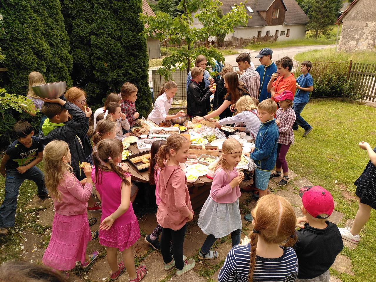 Během posledního týden školního roku jsme prožili nejprve zahradní slanost, kde školáci rodičům ukázali různé scénky nejen ze života třídy. Díky stroji čas se dostali i do hluboké minulosti! Dále jsme se v týdnu věnovali úklidu. Středu jsme prožili vskutku slavnostně. V markoušovickém kostele nejprve školáci školákům zahráli či zazpívali, dále jsme si ve třídním kruhu na louce rozdali závěrečná vysvědčení. Před odjezdem na prázdniny jsme si dali společný piknik a zažili překvapení v podobě jízdy historickým “fárem” z USA. Enjoy holidays!