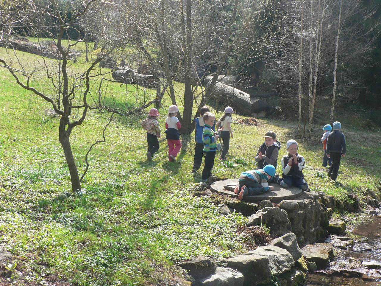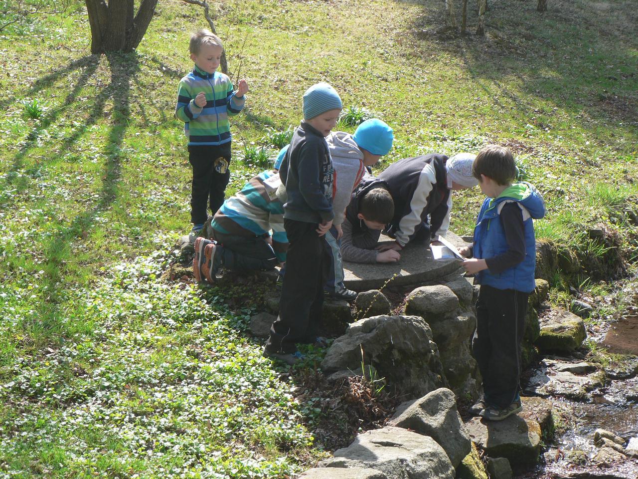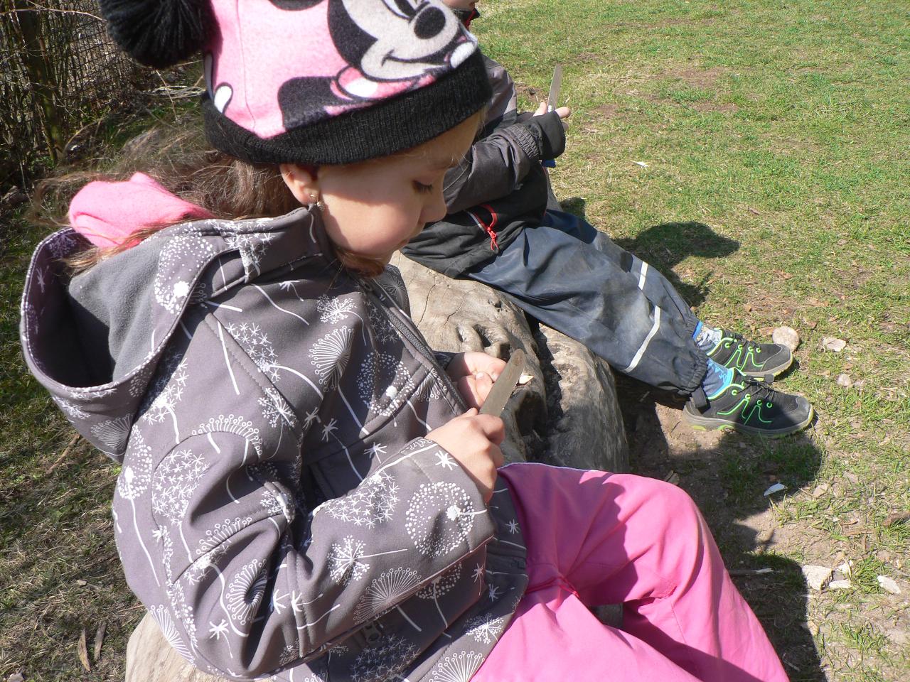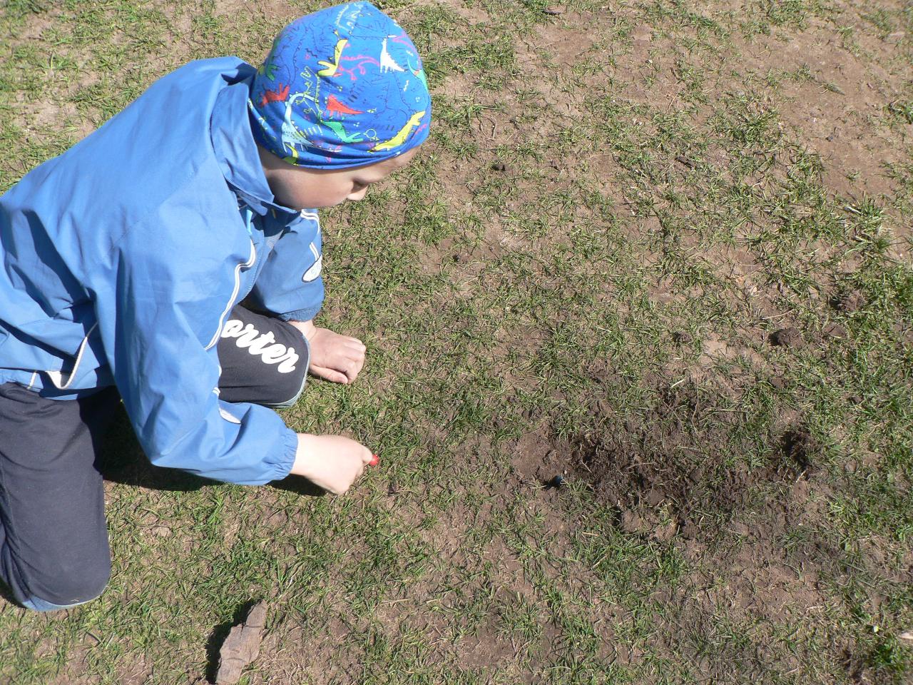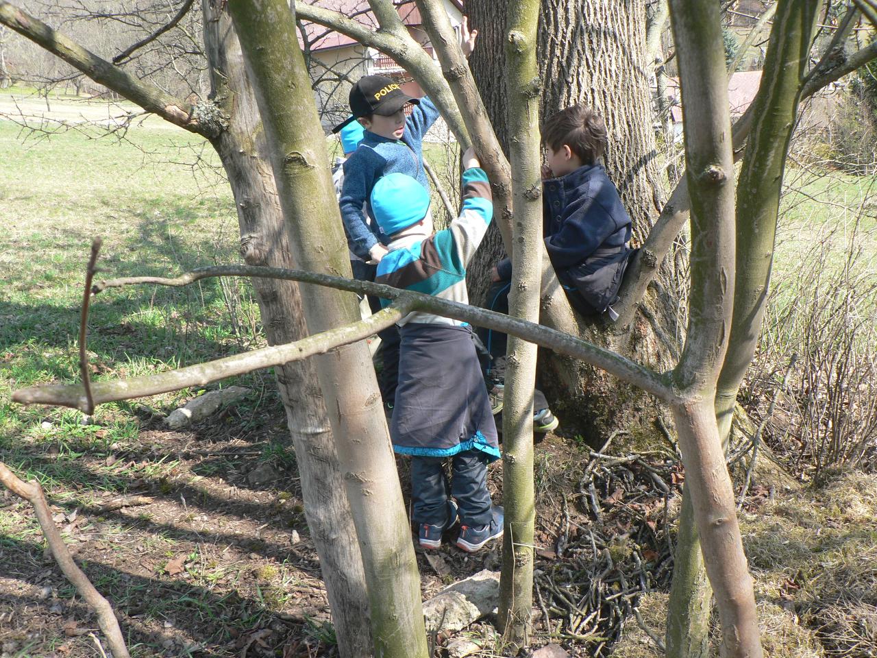 Týden plný krásného slunečného počasí a bláznivého větru. Vyprávěli jsme si aprílovou pohádku Jak se sluníčku zdál veselý sen, ve které sluníčko vrací světu ztracený smysl pro humor. Vesele tvoří, maluje, hraje si a směje se tak, až mu od smíchu ryskají slzy. Také naše tvoření proto bylo velmi pestré a barevné. Stříhali jsme a lepili sluníčka, seli jarní osení, za pomoci vodovek a štětců vymalovali opravdu spoustu barevných motýlů a šili jsme i pytlíčky na kuličky. Stejně jako děti v pohádce, i my jsme pak venku vyráběli důlky a cvrnkali kuličky. A protože bylo celý týden krásné slunečné počasí, měli jsme celou řadu příležitostí pozorovat probouzející se přírodu. Poznávali jsme nově vykukující květiny, v trávě se honili za brouky a pavouky a na procházce jsme potkali prvního slepýše. Skákali jsme přes potok, lezli po stromech, skákali panáka, na písku stavěli, tvořili i vařili. Také jsme se naučili nové říkačky, zpívali jsme, hráli hry, při kterých jsme trénovali rychlost, postřeh i spolupráci a zkoušeli jsme si naslouchat a dobře si porozumět. A protože to byl i týden prvních zápisů do školy, prožívali jsme s našimi předškoláky jejich první setkání se školou a sdíleli s nimi jejich velké zážitky.