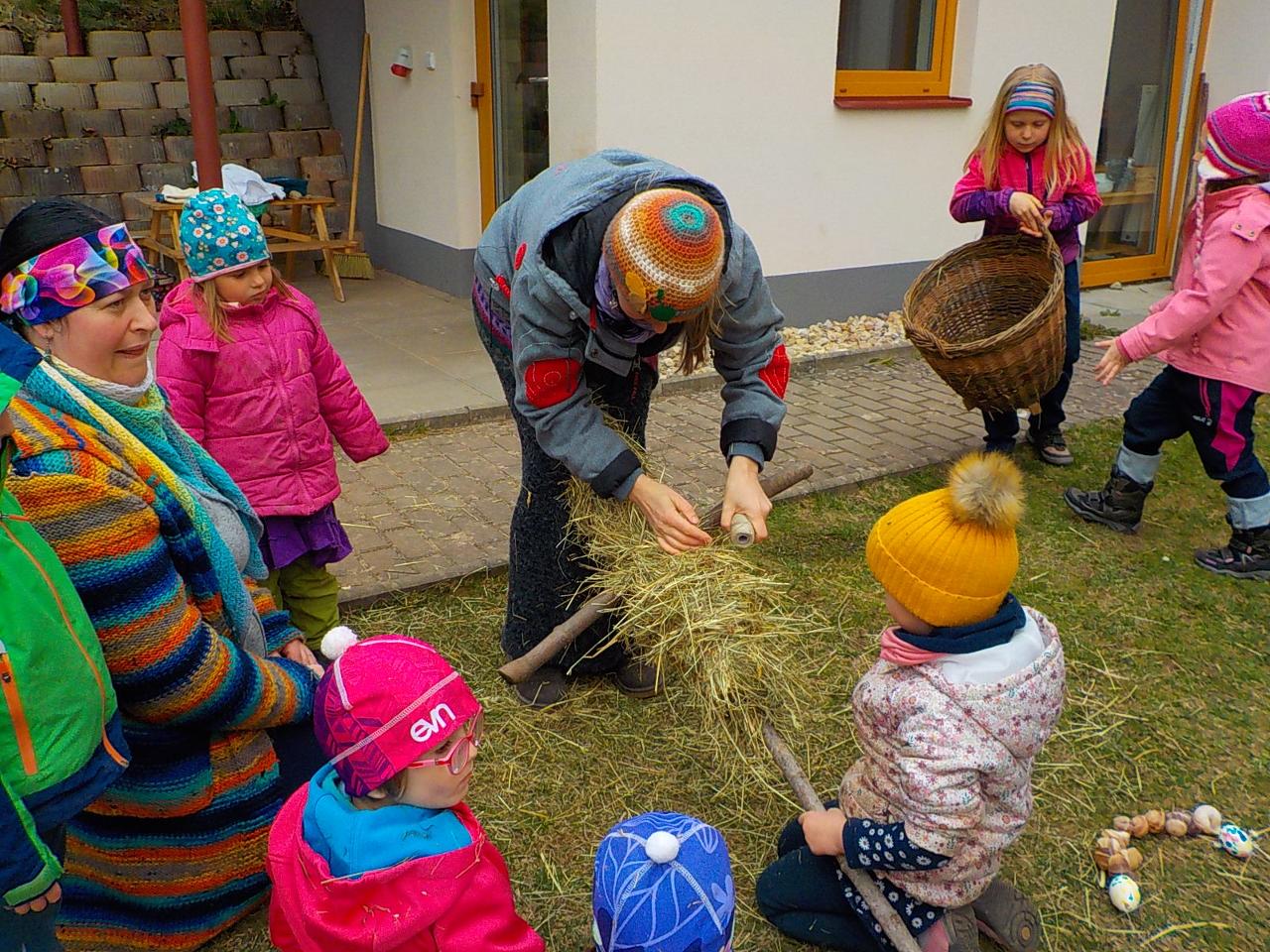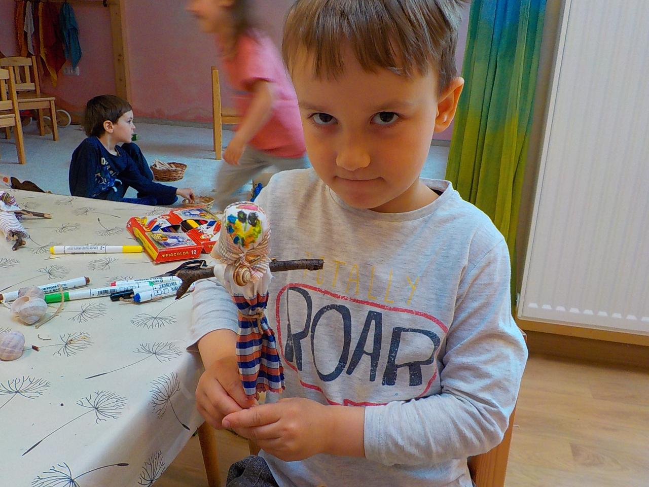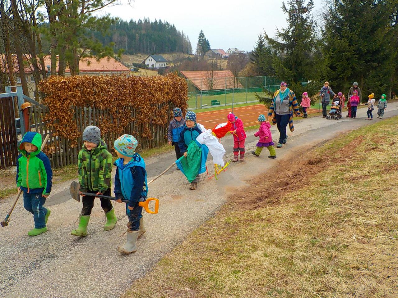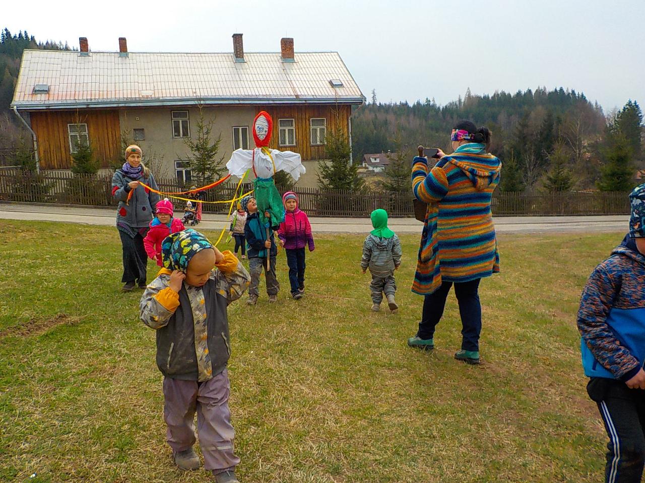 Velké příprava, velké prožitky, velká akce, doufáme, že i povedené následky - takový byl náš týden. O ničem jiném se nemluvilo, jen o té Moraně, Zimnici, která tu ještě straší, zebe, chladí, fouká i sněží. Té se teď chceme zbavit. Pěkně jsme si ji vyrobili, vystrojili, na pěkná slůvka ji nalákali, zazpívali, zatančili i zahráli - a pak jsme s ní skoncovali. Všechny čtyři živly nám s ní pomohly. Ohněm jsme ji podpálili, větřík nám pomáhal při hoření, do země jsme ji zakopali a nakonec jemné kapky deště z nebe ji pokropily. Takové to bylo. A ke všemu jsme ji ke svačině snědli. Každý si pak mohl vyrobit ještě svoji maličkou Moranu a tu si odnést domů. Tak doufáme, že je pro letošek s ní amen.