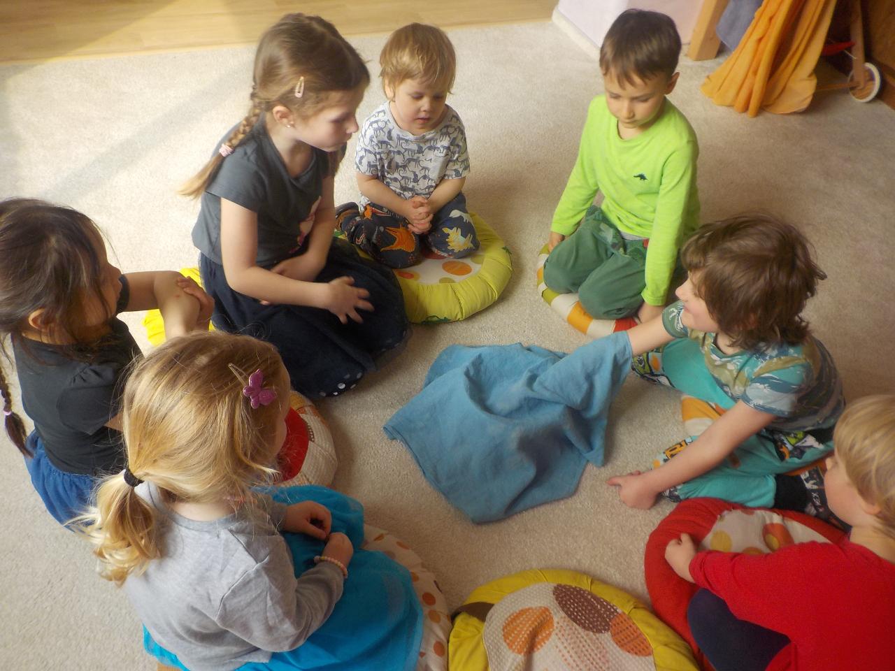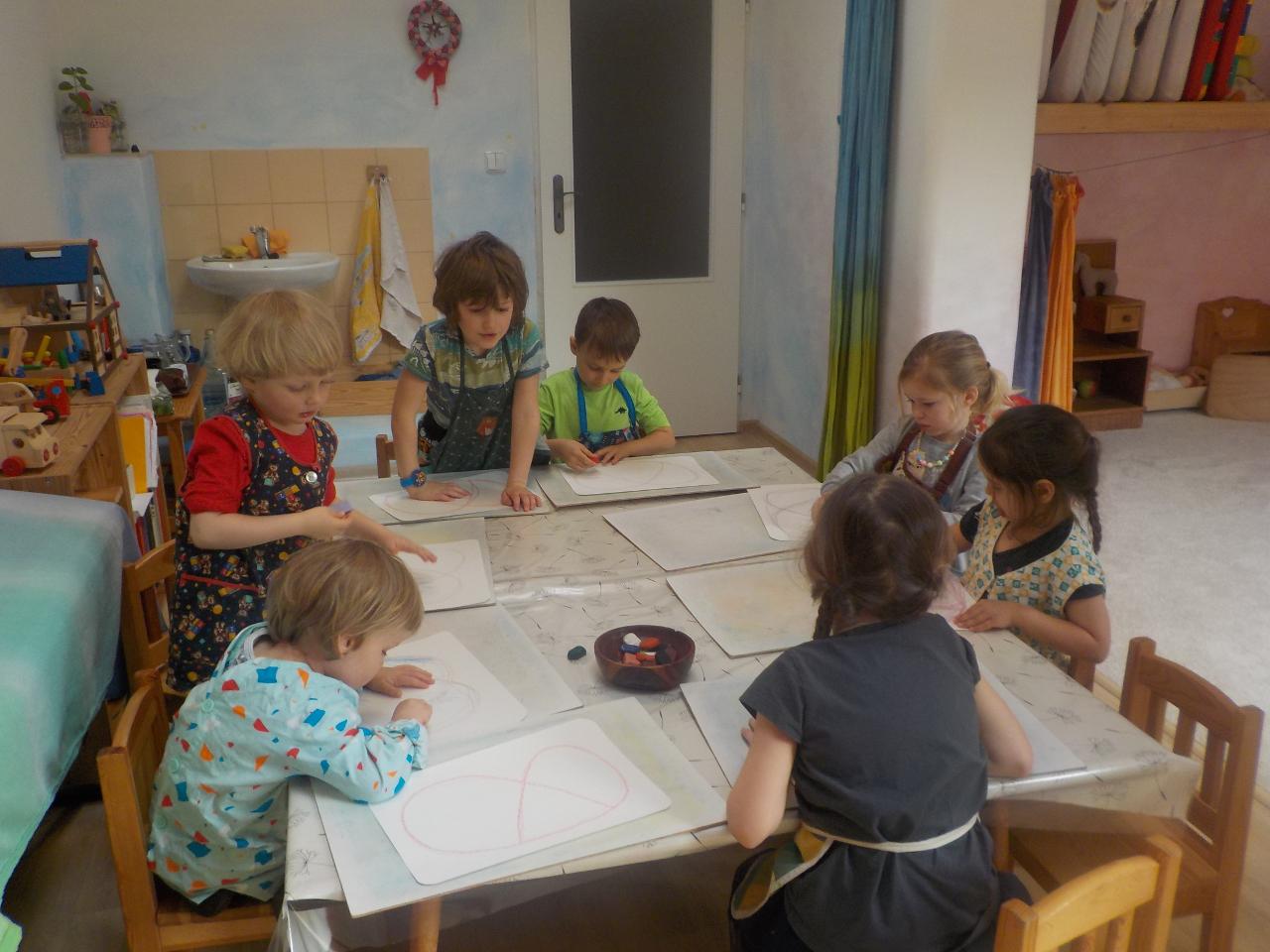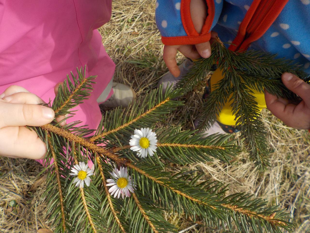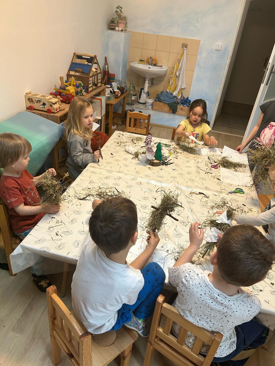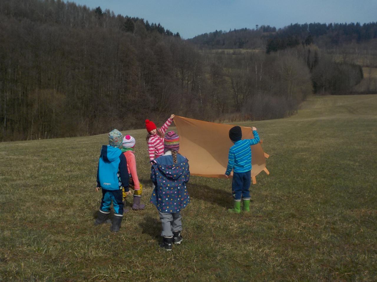 Pár vzpomínek jsme tento týden věnovali ještě neděli liščí, dopékali jsme preclíky, zkoušeli je kreslit, zahráli si pohádku z minulého týdne o zvířátkách, jak vyzrála na lišce. Ale hlavní téma bylo loučení se se zimou. Každý z dětí si vyrobil malou Moranku, naučili jsme se písničky, které nám pomohli při loučení a vhození Moranek do potoka. Počasí nám ukázalo, že jaro je už opravdu tady - poprvé jsme vyběhli ven jen v mikinkách a radostně procházeli "jarní branou", nedílnou součástí krásných dní byla i návštěva potůčku.