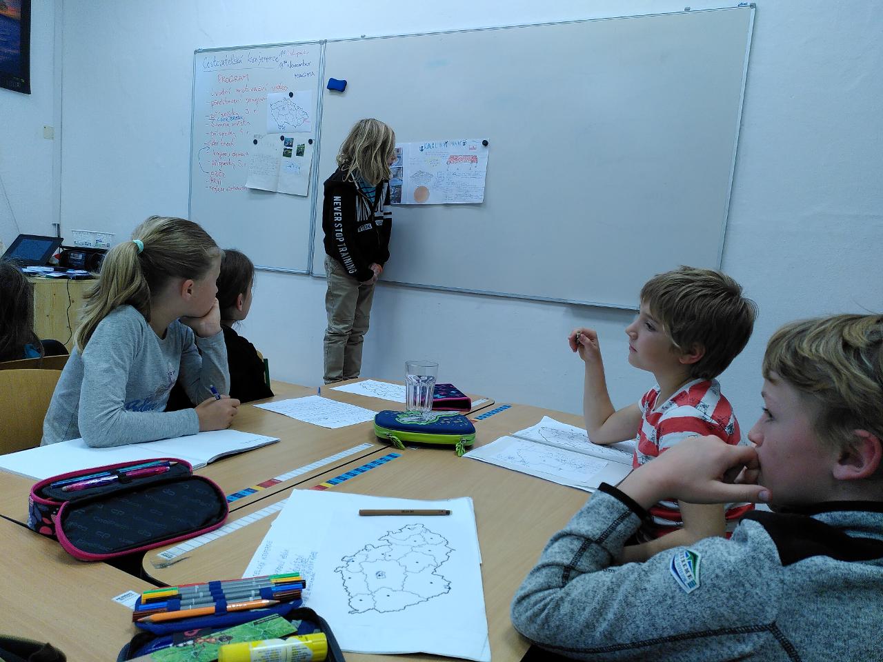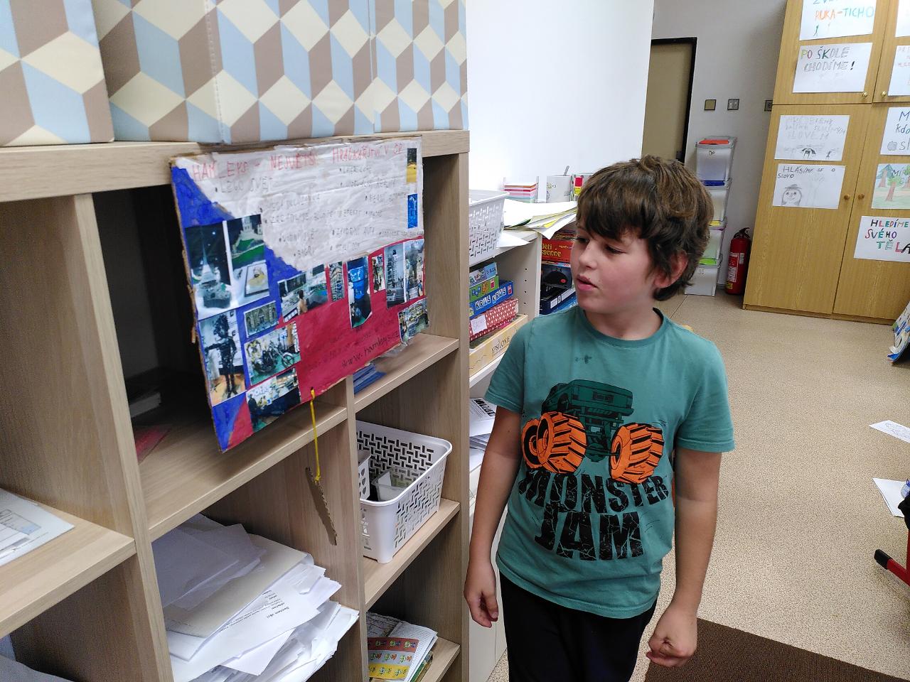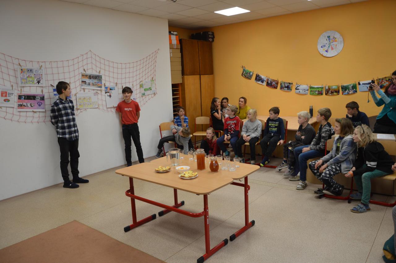 Svatomartinský týden byl tematicky velmi rozmanitý. Část týdne jsme věnovali svatému Martinovi - pekli jsme rohlíčky, povídali si o jeho odkazu, zpívali o něm písně v angličtině i v češtině, ve třídě i s celým Mraveništěm. Dělili jsme se s ostatními. Svatomartinský den jsme poznali i jako “příměří 1918” a den válečných veteránů, na které vzpomíná plno českých rodin. Dokončili jsme také téma o Česku, třídní Cestovatelskou konferencí, kde školáci svými příspěvky lákali spolužáky k navštívení právě jimi zvolené lokality. Velmi rozmanité práce se dají použít i jako průvodce - můžete vyrazit třeba do Ostravy, Karlových Varů, za Jurkovičem do Beskyd nebo objevit známá i neznámá místa pražská, například hotel Juliš. Na závěr jsme si zahráli i rozmanité vědomostní a cestovatelské hry, které nás také učí.