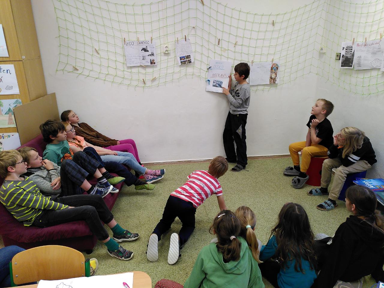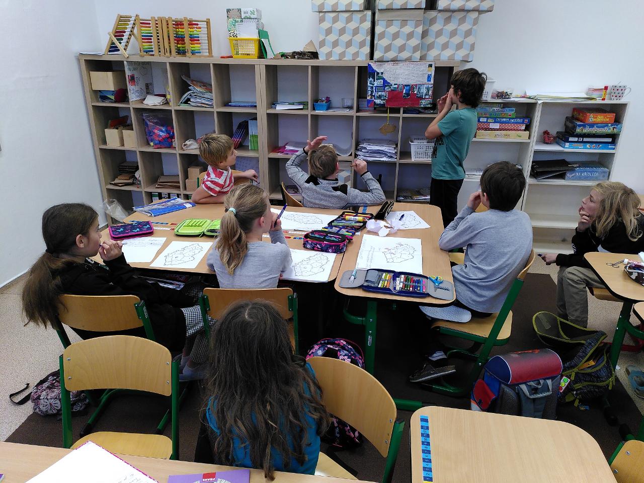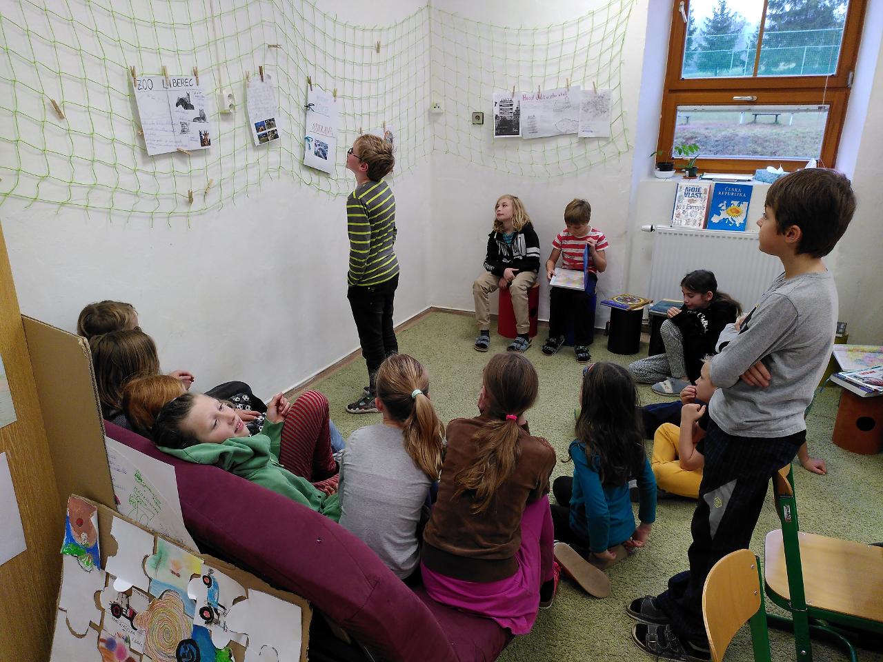Svatomartinský týden byl tematicky velmi rozmanitý. Část týdne jsme věnovali svatému Martinovi - pekli jsme rohlíčky, povídali si o jeho odkazu, zpívali o něm písně v angličtině i v češtině, ve třídě i s celým Mraveništěm. Dělili jsme se s ostatními. Svatomartinský den jsme poznali i jako “příměří 1918” a den válečných veteránů, na které vzpomíná plno českých rodin. Dokončili jsme také téma o Česku, třídní Cestovatelskou konferencí, kde školáci svými příspěvky lákali spolužáky k navštívení právě jimi zvolené lokality. Velmi rozmanité práce se dají použít i jako průvodce - můžete vyrazit třeba do Ostravy, Karlových Varů, za Jurkovičem do Beskyd nebo objevit známá i neznámá místa pražská, například hotel Juliš. Na závěr jsme si zahráli i rozmanité vědomostní a cestovatelské hry, které nás také učí.