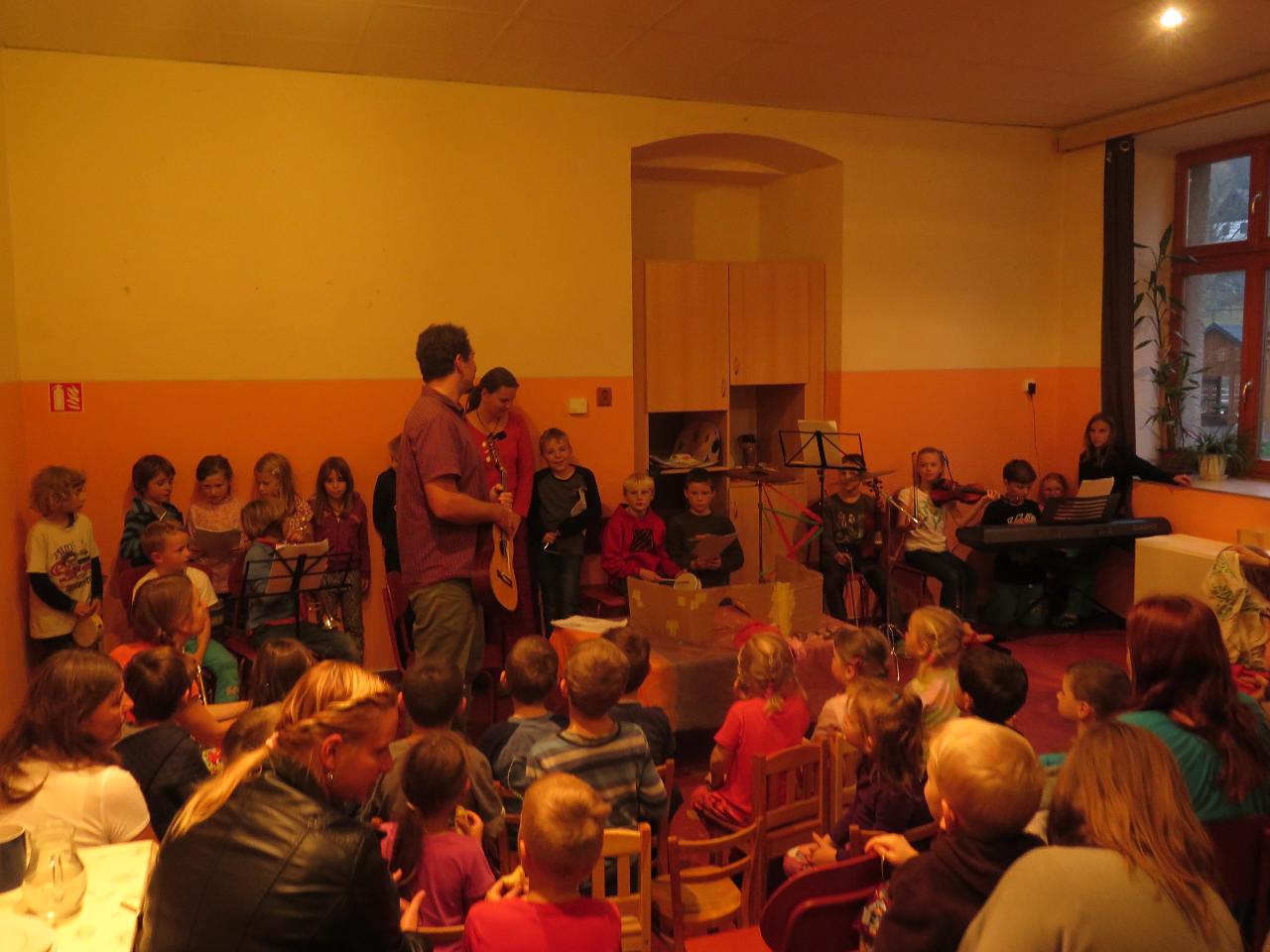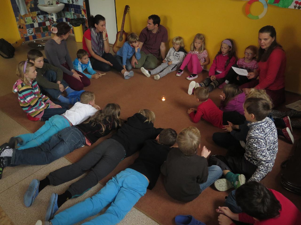 V tomto týdnu jsme také prožili v Mraveništi svátek svatého Martina na společné slavnosti i s rodinami školkáčků. V jídelně jsme shlédli divadélko o příběhu svatého Martina a jeho schopnosti pomoci potřebným, pak jsme si zazpívali martinské písně, rozsvítili lucerničky a vydali se na průvod Markoušovicemi podělit se o napečené rohlíčky se sousedy. Na konci průvodu nás překvapil svatý Martin na koni, který nám daroval zlaté podkovičky.