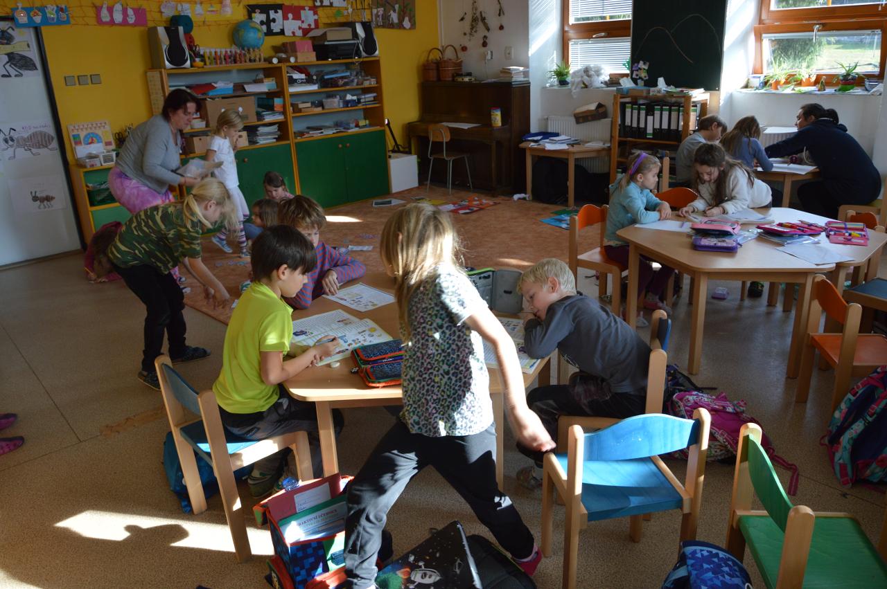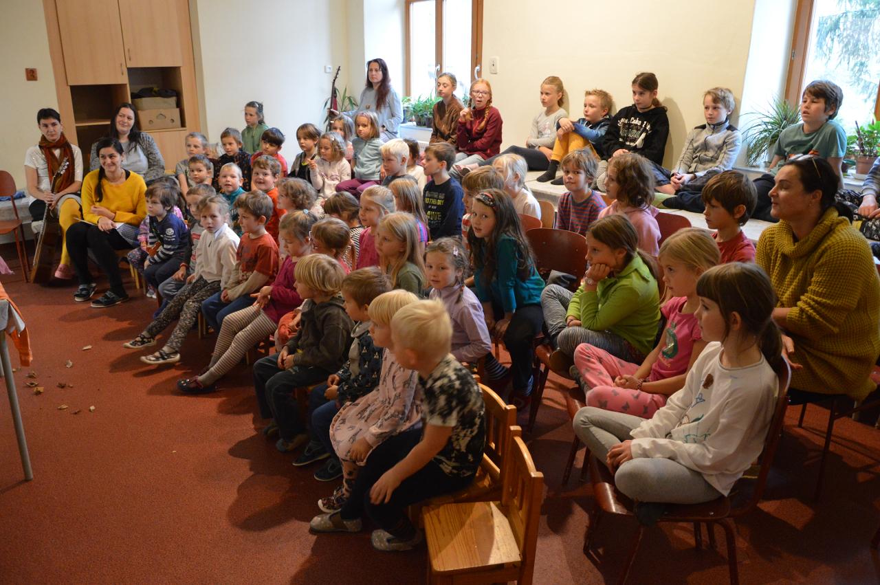 Na tento týden jsme se celý rok těšili. Je to čas, kdy nastává začátek zimy a vše pomalu směřuje k vánočnímu období. Mezi dětmi už je cítit, jak se na Vánoce těší. V pondělí jsme navštívili vernisáž starších školáků s tématem 17 cílů udržitelného rozvoje a měli možnost se podívat, co všechno už starší školáci dovedou vytvořit. Celý týden jsme se připravovali na čtvrteční venkovní den, kdy má svátek Martin. Učili jsme se písně, vyprávěli jsme si příběhy o Svatém Martinovi a chystali jsme se na pečení svatomartinských rohlíčků. Těšili jsme se na to, jak tento čas proběhne a také na to jak se navzájem obdarujeme. Ve čtvrtek už nadešel náš svatomartinský den. Sešli jsme se v jídelně, kde nám Péťa Němečková zahrála už tradiční divadélko. Je radost pohledět a znovu si prožít krátký příběh Svatého Martina. Každá komůrka si připravila pár písní, které jsme si zazpívali a také jsme se obdarovali upečenými rohlíčky. Naše třída se poté rozhodla, že půjde do lesa podarovat i srnky. Donesli jsme jim jablíčka, kaštany a žaludy. A na večer pak byla nachystaná svatomartinská cesta, kterou mohl projít každý, kdo si to přál. Na konci cesty si každý mohl vzít to, co tam našel a zároveň zanechat nějakou dobrůtku či radost pro další příchozí. Byly to příjemné chvíle setkání a rozjímání.