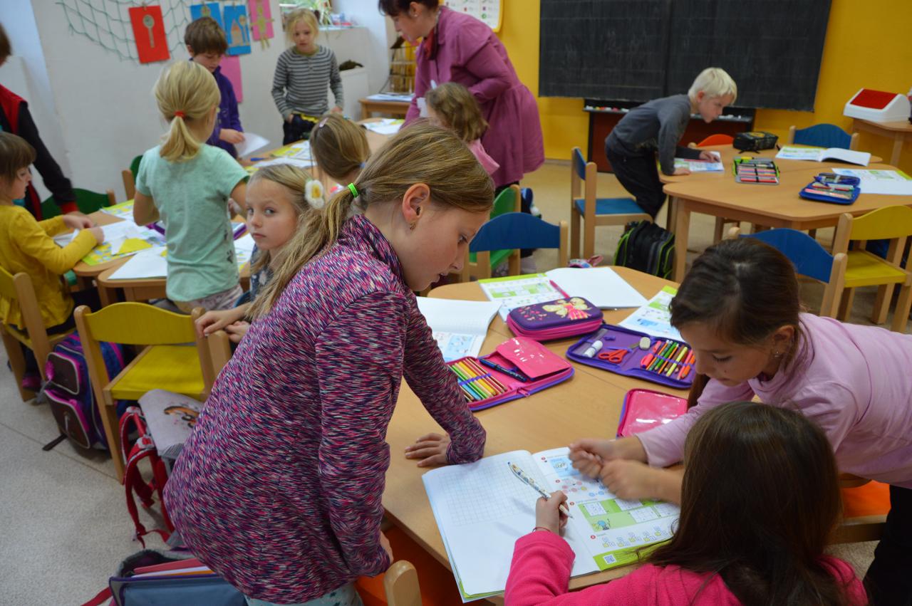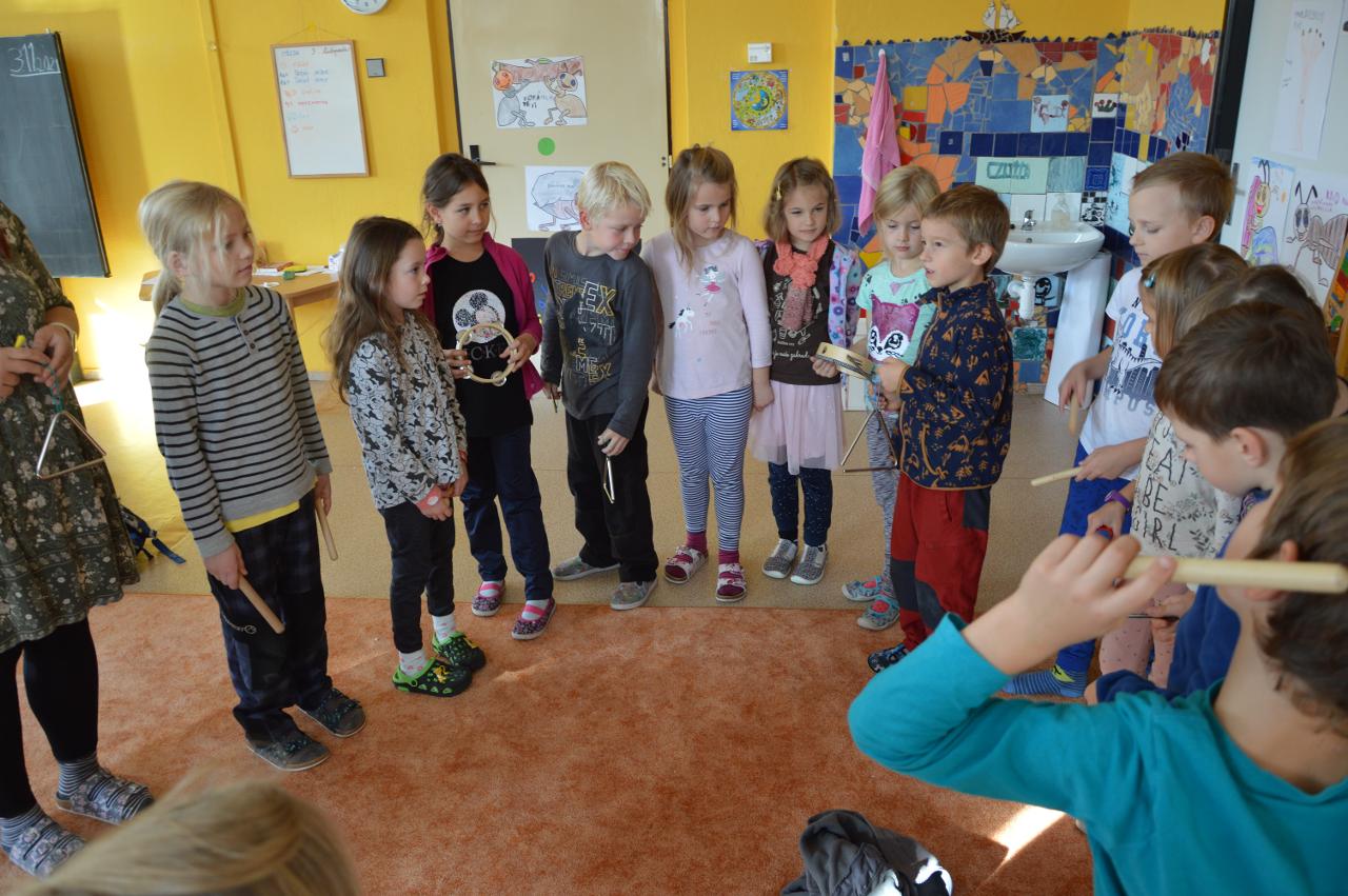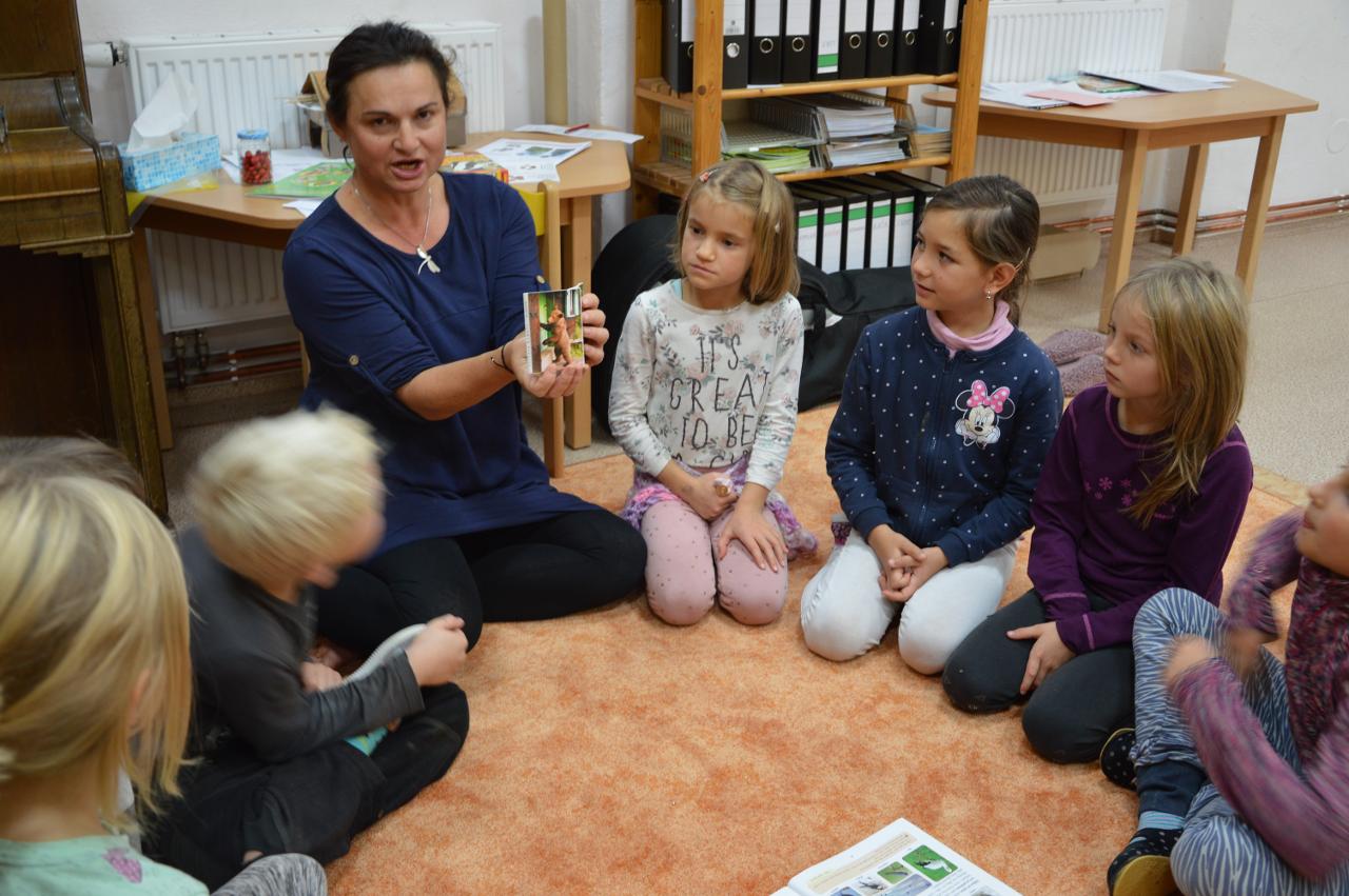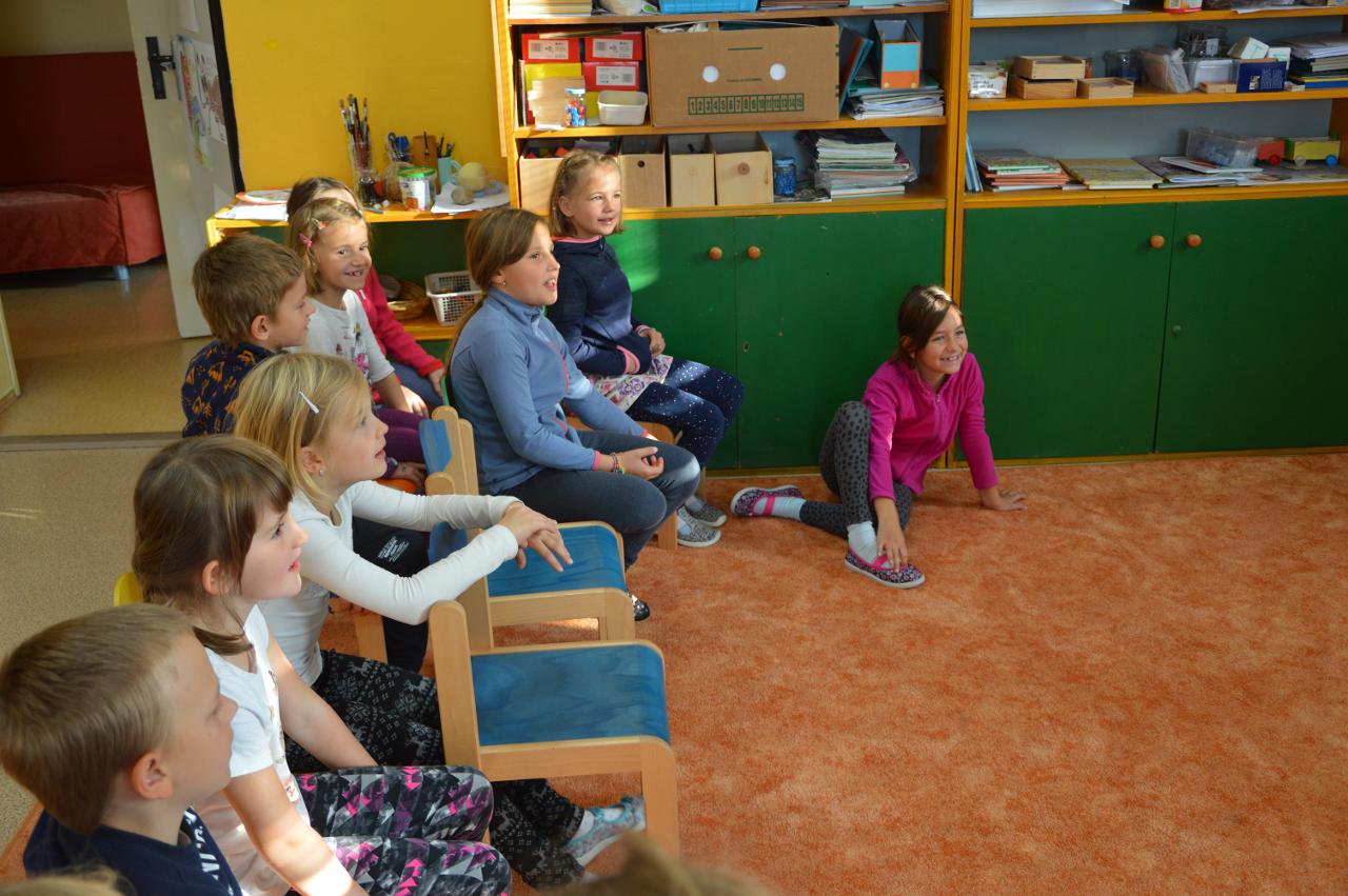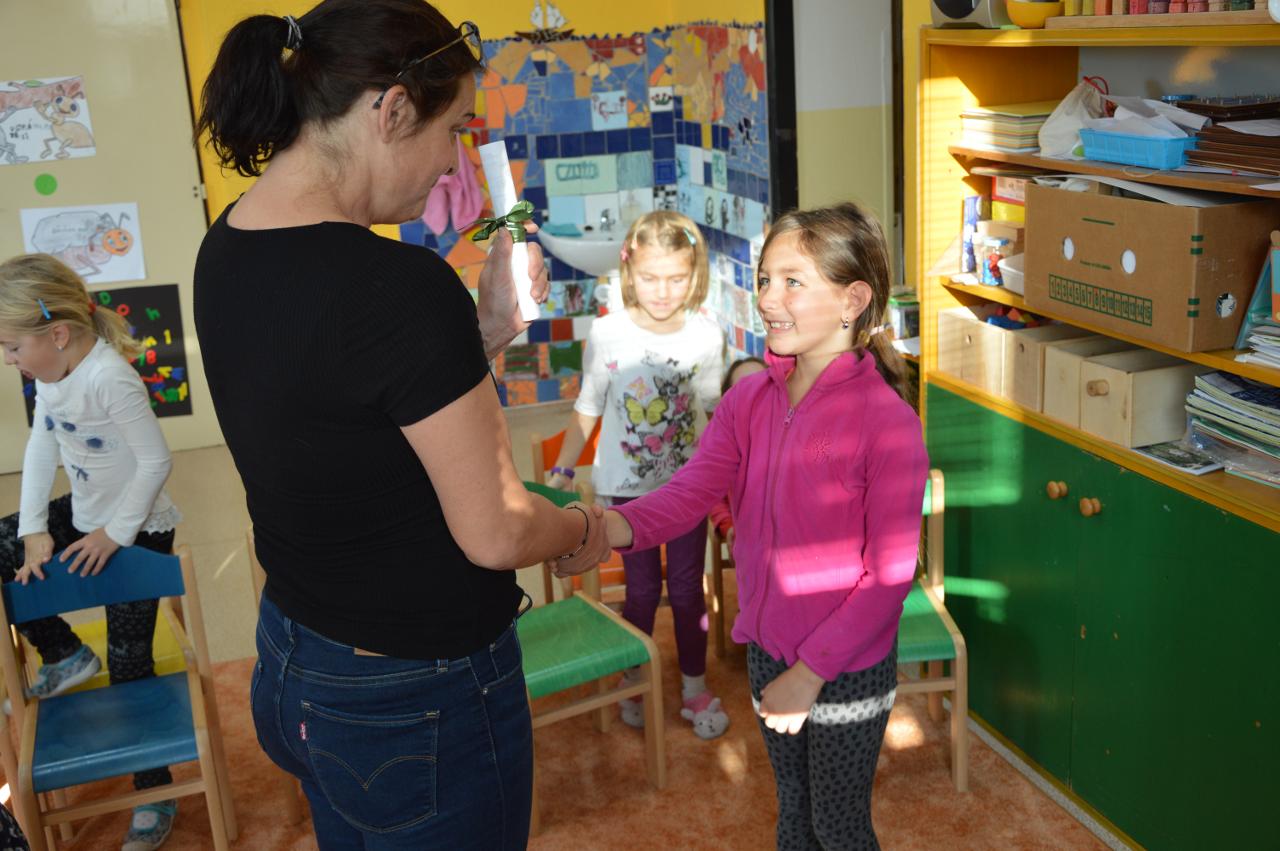 Tento týden se k nám už postupně vplížil chladný podzim. Přesto jsme se vydali během čtvrtečního venkovního dne za poznáním života v lese. Kromě zimy nás ani déšť neušetřil, a tak jsme nakonec vodu vylévali i z holínek. Ale zato jsme zjistili spousty zajímavých informacích o lese, především o stromech. Vydali jsme se kolem Tichošlápka a Hadího kopečku až k Německým lukám. Cestou jsme sbírali a určovali větve, listy a plody stromů. I když pršelo, přepadla nás žízeň. A měli jsme velké štěstí, protože jsme potkali jeden dub, ze kterého tekla malým proudem voda. Každý z nás ochutnal alespoň pár kapiček - to byla ale dobrůtka :-) Cestou z kopce dolů jsme zjistili, že mokrá tráva bezvadně klouže. A už se jezdilo jako po sněhu. Nejlépe to frčelo Páťovi. Po celou cestu nám pršelo, ale nám to vůbec nevadilo a užili jsme si to jak jen to šlo. Ve škole jsme po obědě měli také možnost se podívat, jak pracuje ladič klavírů, který nám přijel naladit školní pianina. Společně s ním jsme hledali odpovědi na to, co musí takový ladič klavírů umět. Poté jsme se rozdělili do skupin. Každá skupina si vzala na starosti jeden strom a na velkou čtvrtku jsme nalepili větev, listy a plod daného stromu. Měli jsme z toho radost takovou, že jsme se rozhodli vytvořit z naší práce také příspěvek do našeho školního Mravenčího časopisu. Nakonec jsme se rozloučili písničkovým ping pongem na téma LES. Díky za krásné chvíle.