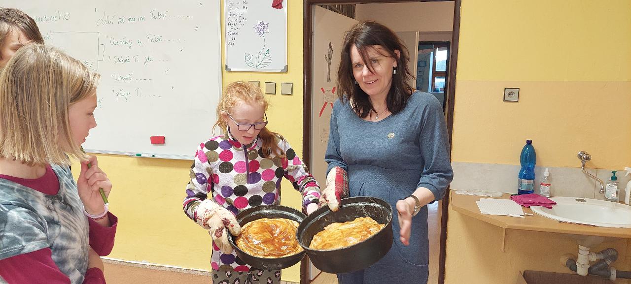 V tomto týdnu jsme se vydali na tradiční tříkrálovou výpravu a než jsme vyrazili, pustili jsme se do pečení tříkrálového koláče. Do jednoho dílku jsme zapekli minci a ten kdo ji našel ve svém kousku se stal králem/královnou na celý den.