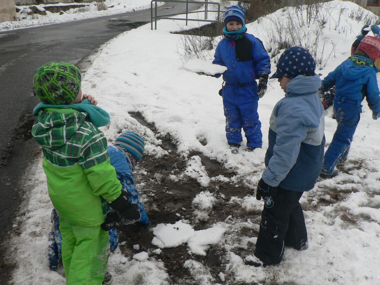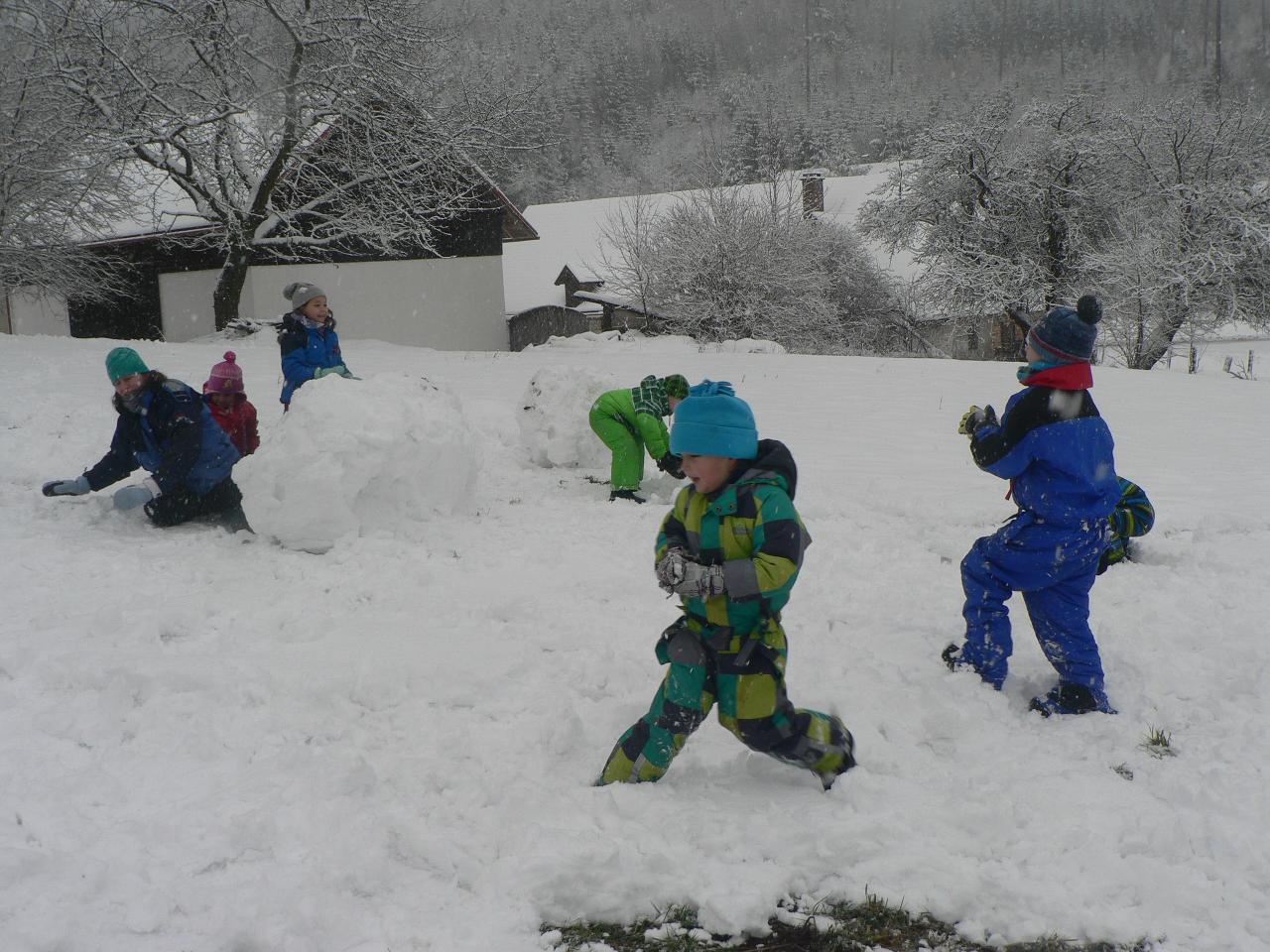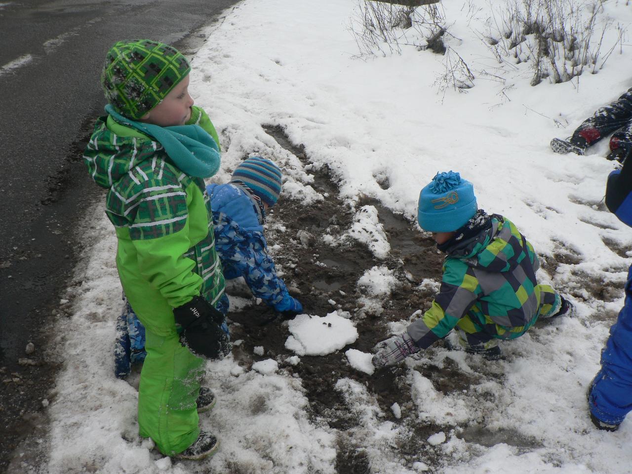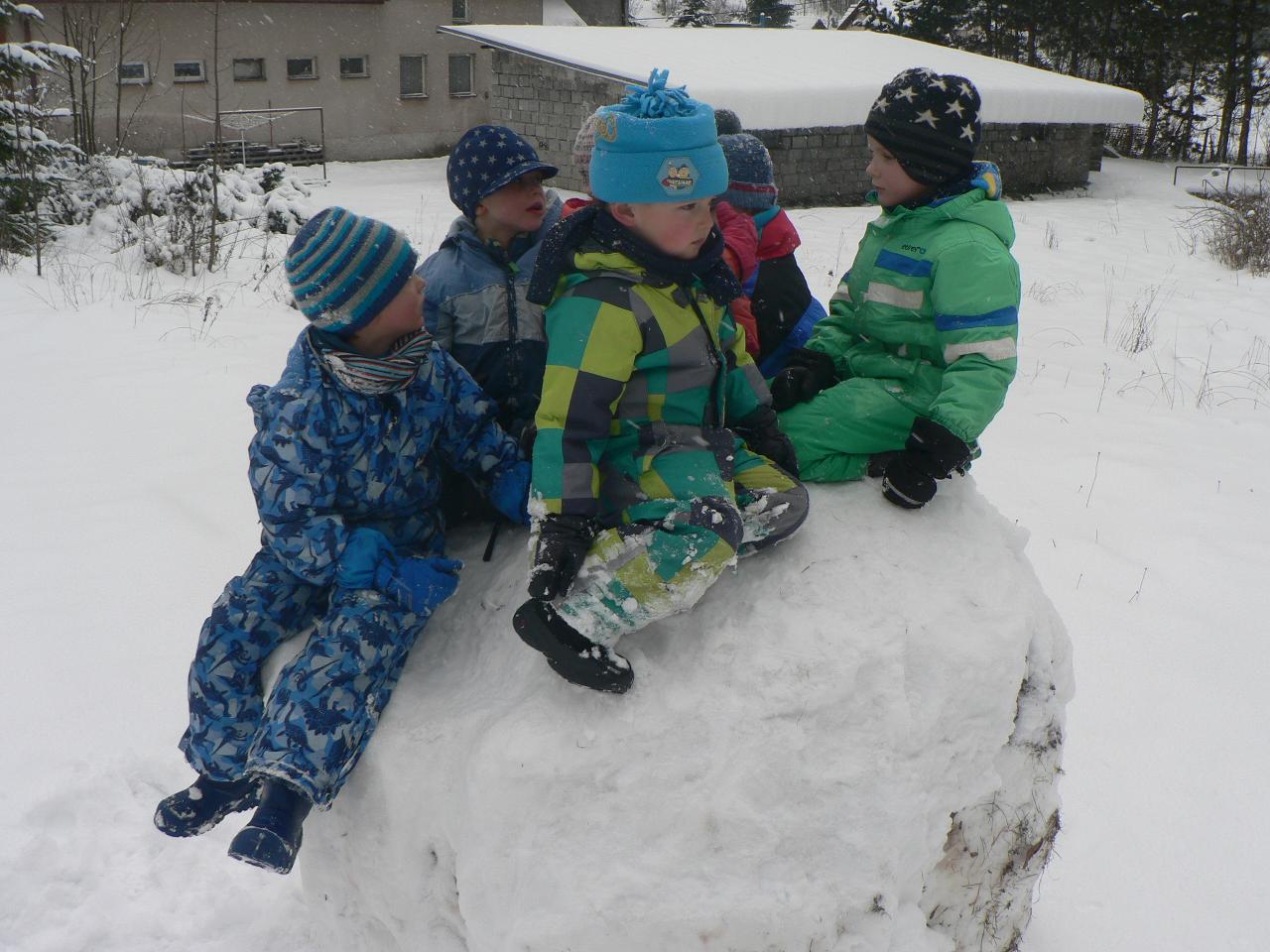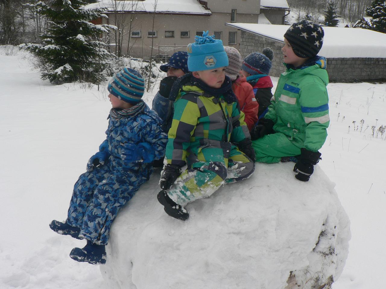 Vyprávíme si příběh O hvězdě a třech mudrcích. Příběh nás vede zpět do minulosti a společně s třemi mudrci se v představách vydáváme na putování za hvězdou. Připomínáme si, kam a proč putovali, jaká byla jejich cesta a jaké dary právě narozenému Ježíškovi nesli. Vyrábíme si tříkrálové koruny, malujeme a vystřihujeme velbloudy i svítící komety, tvoříme společně postavičky tří králů. Tento týden jsme také pekli speciální tříkrálový koláč, na jehož přípravě se všichni poctivě podíleli. Někdo strouhal mrkev a jablíčka, někdo válel těsto, další sekali oříšky nebo míchali náplň. Výsledkem byl opravdu vynikající koláč, který jsme pak společně spořádali ke svačině následující den. Ve čtvrtek nás pak čekalo tříkrálové divadýlko, do kterého se děti naplno ponořily a své role si opravdu užily, jak je ostatně vidět i na fotkách. A přitom všem nechyběly ani nové říkanky, zimní písničky a spousta zábavy na sněhu.