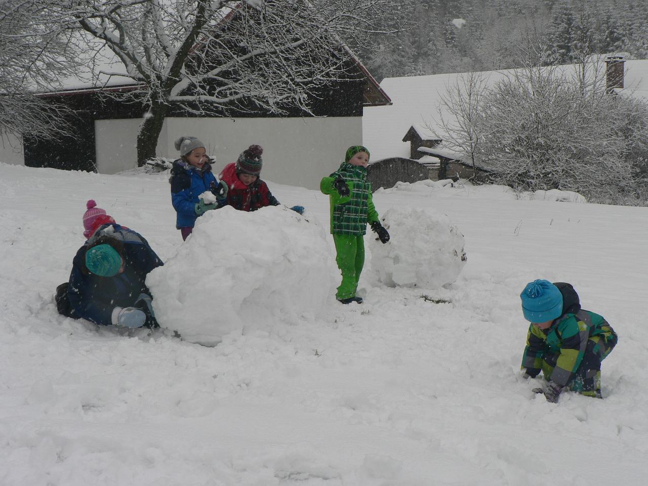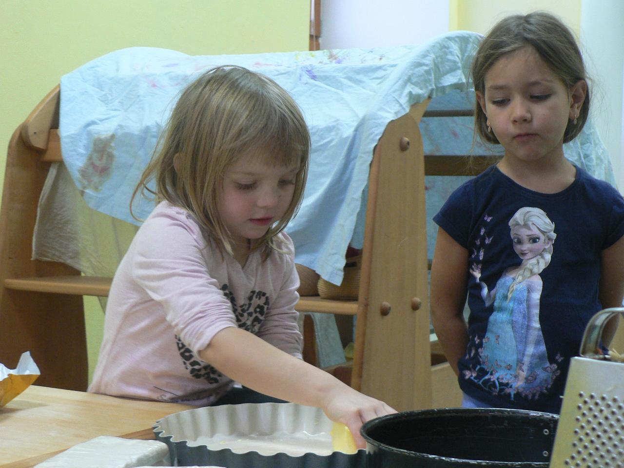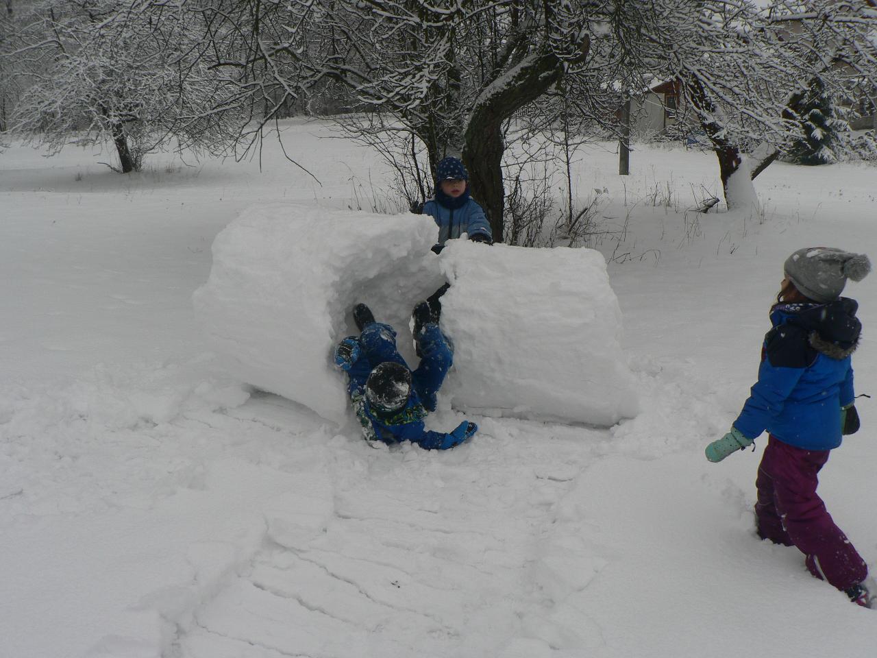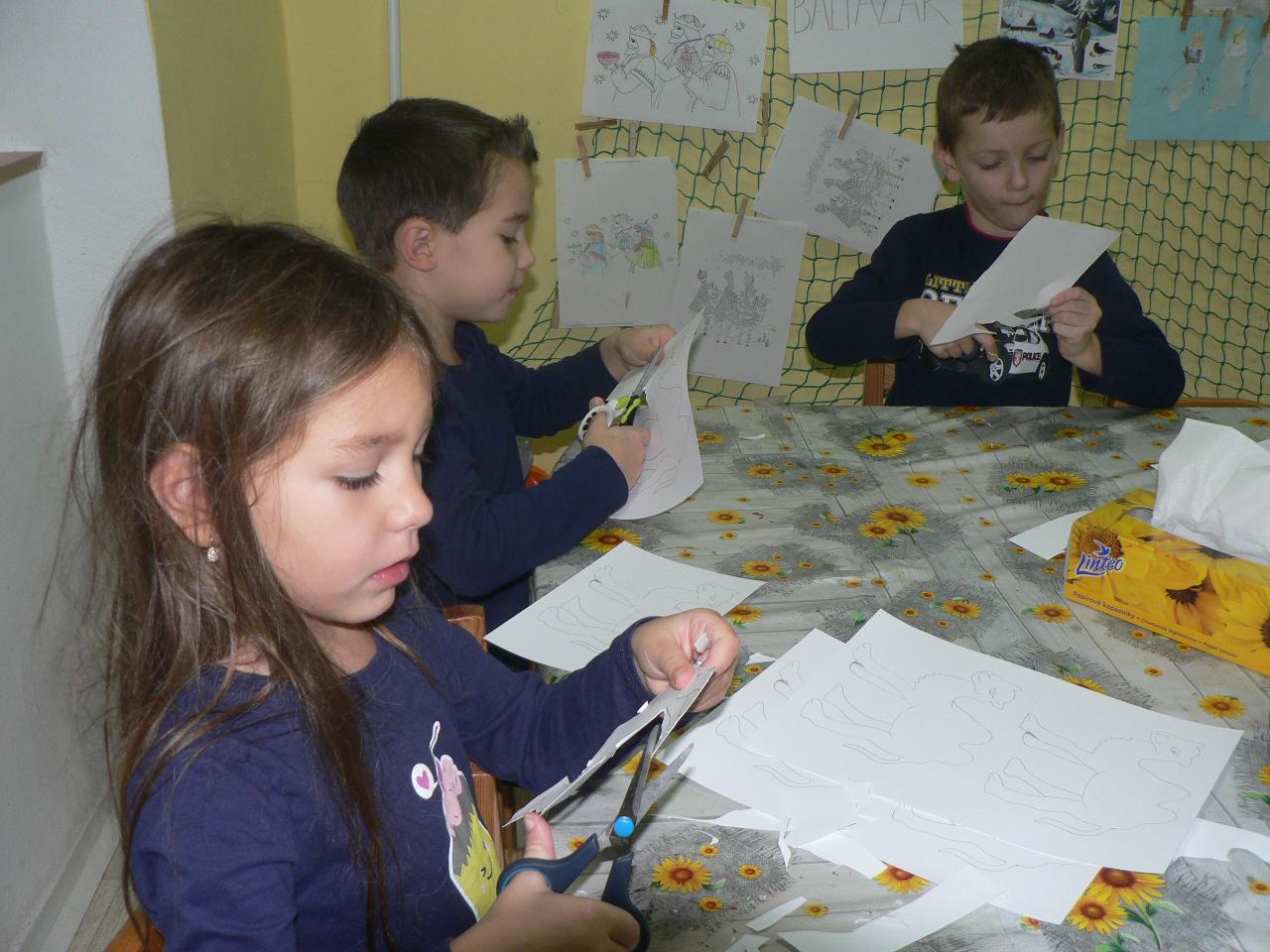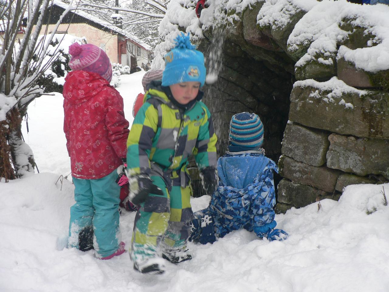 Vyprávíme si příběh O hvězdě a třech mudrcích. Příběh nás vede zpět do minulosti a společně s třemi mudrci se v představách vydáváme na putování za hvězdou. Připomínáme si, kam a proč putovali, jaká byla jejich cesta a jaké dary právě narozenému Ježíškovi nesli. Vyrábíme si tříkrálové koruny, malujeme a vystřihujeme velbloudy i svítící komety, tvoříme společně postavičky tří králů. Tento týden jsme také pekli speciální tříkrálový koláč, na jehož přípravě se všichni poctivě podíleli. Někdo strouhal mrkev a jablíčka, někdo válel těsto, další sekali oříšky nebo míchali náplň. Výsledkem byl opravdu vynikající koláč, který jsme pak společně spořádali ke svačině následující den. Ve čtvrtek nás pak čekalo tříkrálové divadýlko, do kterého se děti naplno ponořily a své role si opravdu užily, jak je ostatně vidět i na fotkách. A přitom všem nechyběly ani nové říkanky, zimní písničky a spousta zábavy na sněhu.