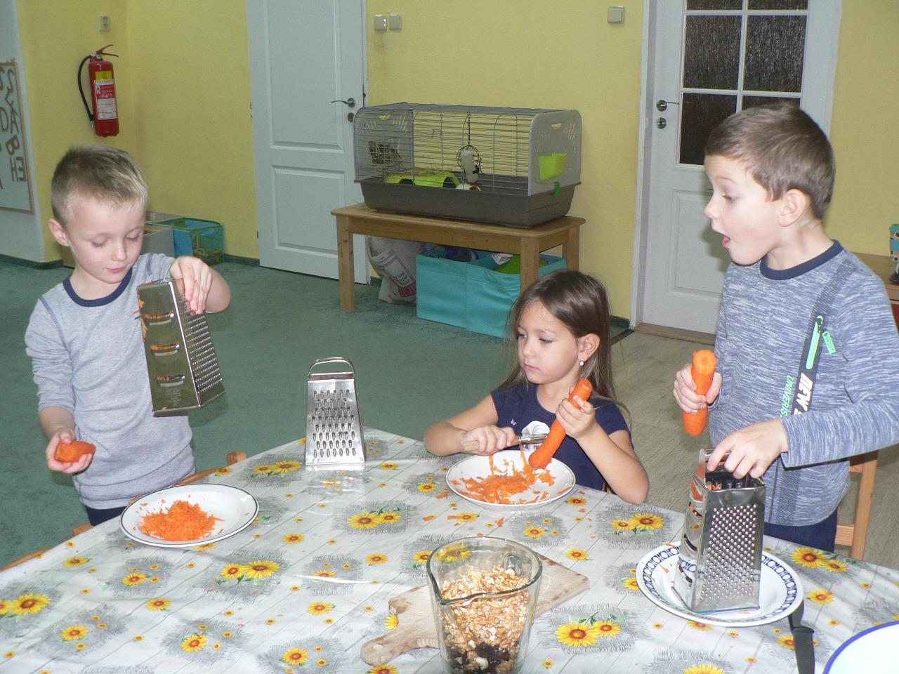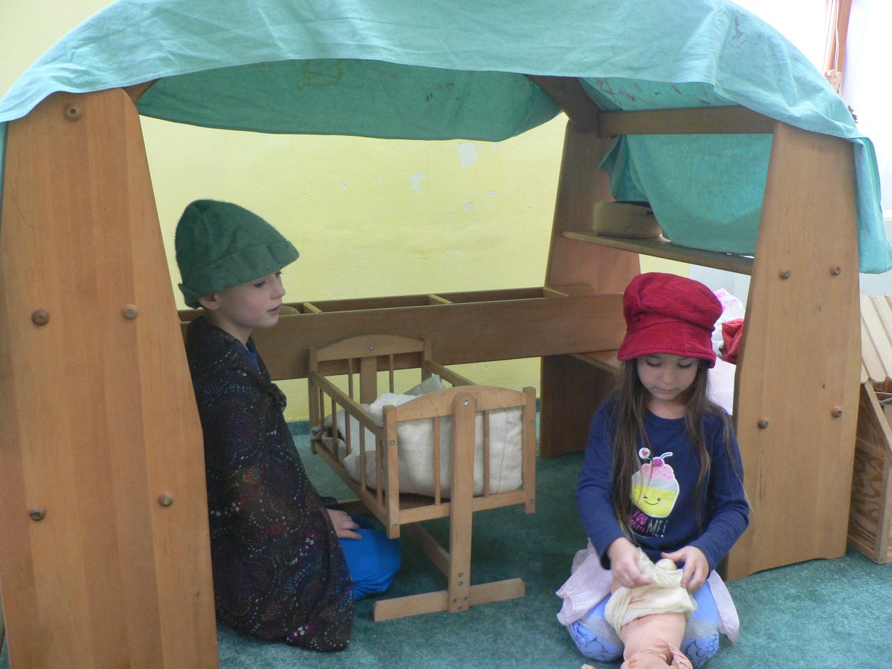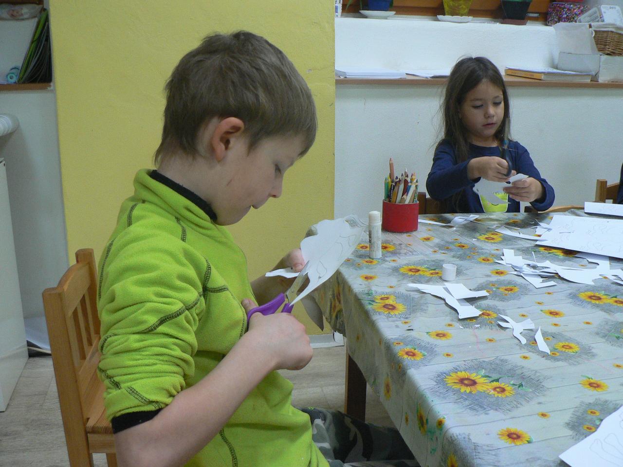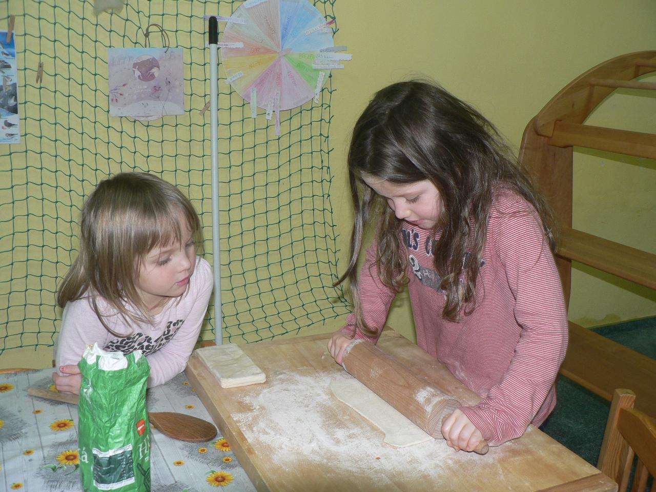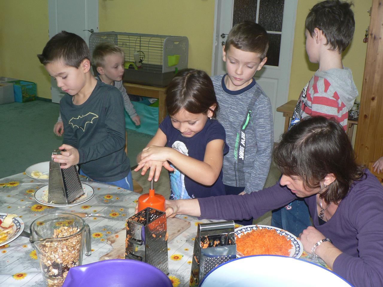 Vyprávíme si příběh O hvězdě a třech mudrcích. Příběh nás vede zpět do minulosti a společně s třemi mudrci se v představách vydáváme na putování za hvězdou. Připomínáme si, kam a proč putovali, jaká byla jejich cesta a jaké dary právě narozenému Ježíškovi nesli. Vyrábíme si tříkrálové koruny, malujeme a vystřihujeme velbloudy i svítící komety, tvoříme společně postavičky tří králů. Tento týden jsme také pekli speciální tříkrálový koláč, na jehož přípravě se všichni poctivě podíleli. Někdo strouhal mrkev a jablíčka, někdo válel těsto, další sekali oříšky nebo míchali náplň. Výsledkem byl opravdu vynikající koláč, který jsme pak společně spořádali ke svačině následující den. Ve čtvrtek nás pak čekalo tříkrálové divadýlko, do kterého se děti naplno ponořily a své role si opravdu užily, jak je ostatně vidět i na fotkách. A přitom všem nechyběly ani nové říkanky, zimní písničky a spousta zábavy na sněhu.