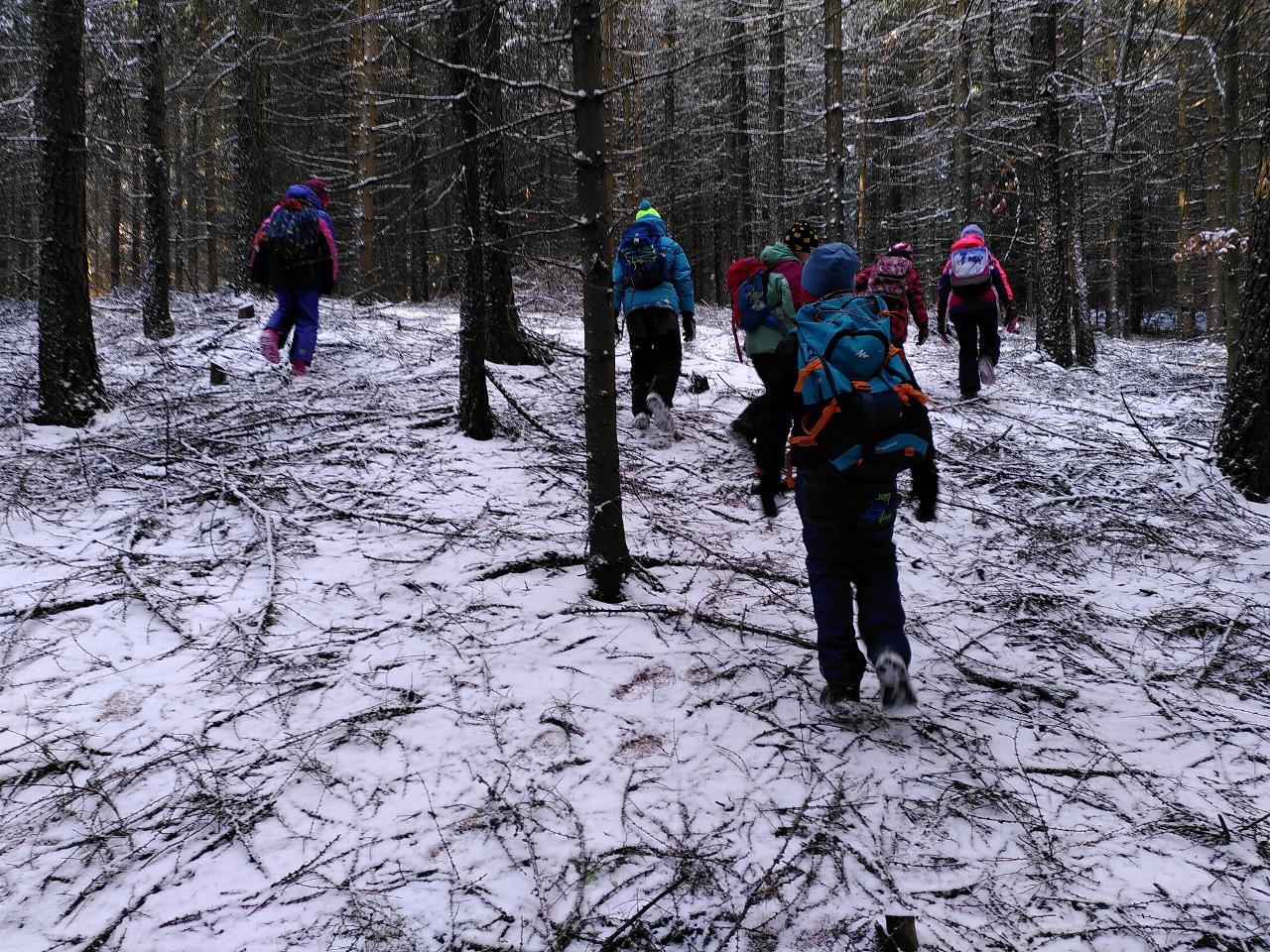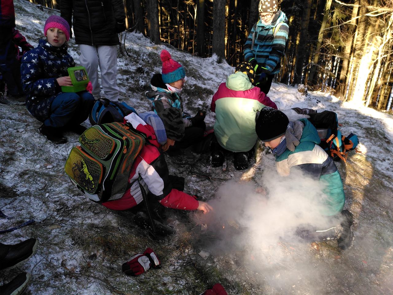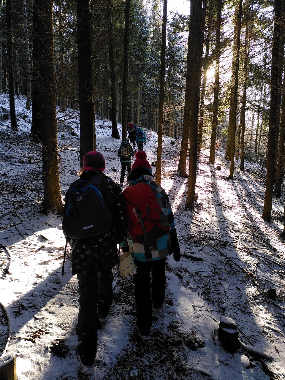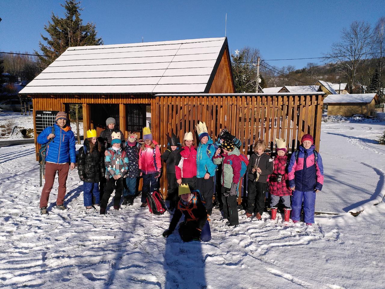 Novoroční týden jsme zahájili sdílením prožitků z prázdnin a také ukázkou dárků, co kdo objevil pod stromečkem. Než jsme se ve čtvrtek jsme se vypravili na dobrodružnou výpravu, tvořili školáci postavy Tří Králů či jejich korun dle svých představ. Na výpravě pak školáci luštili zapeklité šifry, využili i pro někoho známou, pro někoho novou morseovu abecedu nebo své znalosti v angličtině. Na Zaječím vrchu jsme po velkém snažení opravdu v zimních sněhových podmínkách zapálili oheň. Na konci týdne se pak, kdo měl chuť, zapojil do každoroční ptačí hodinky aneb sčítání a podpory přezimujícího ptactva.