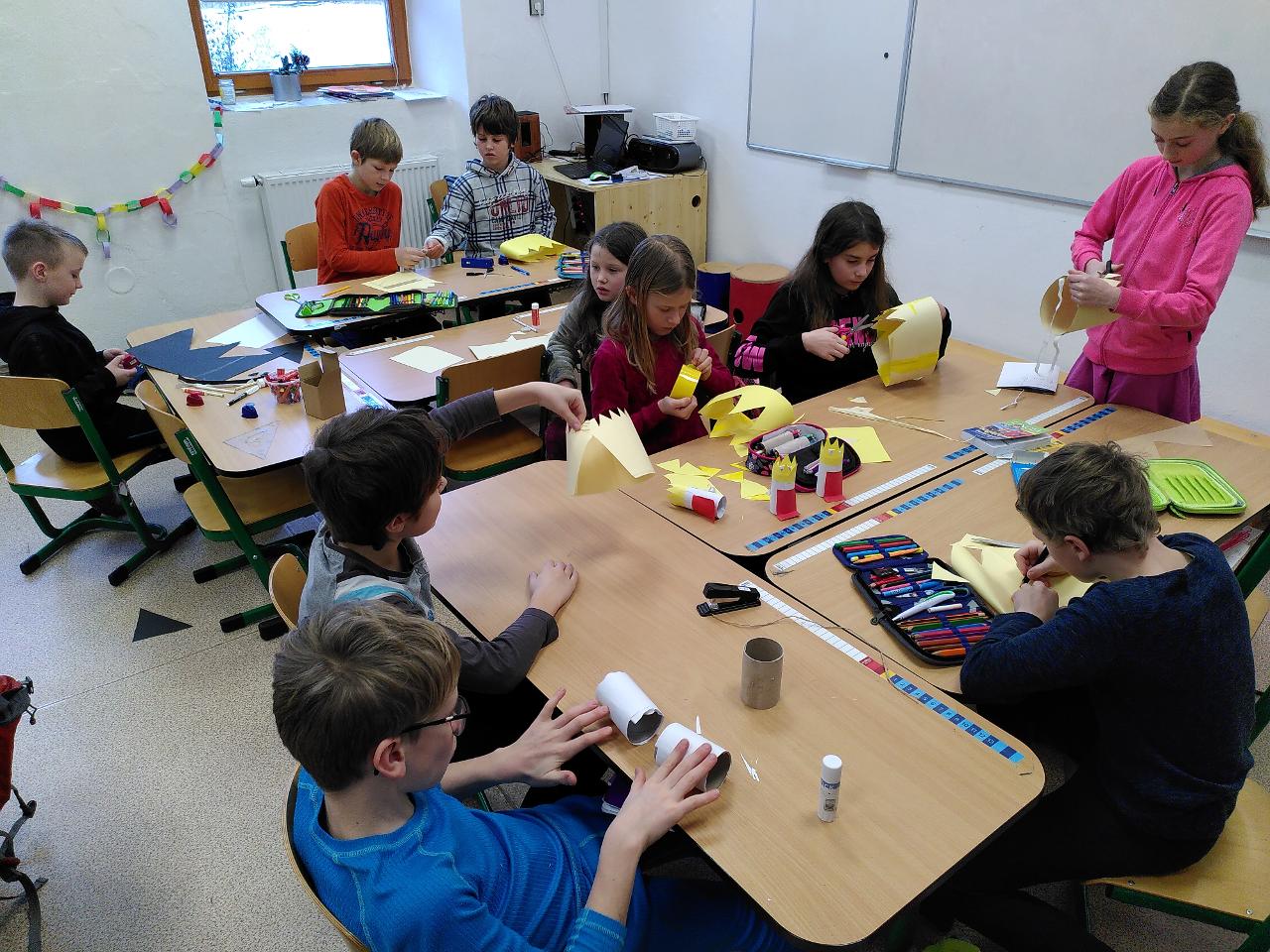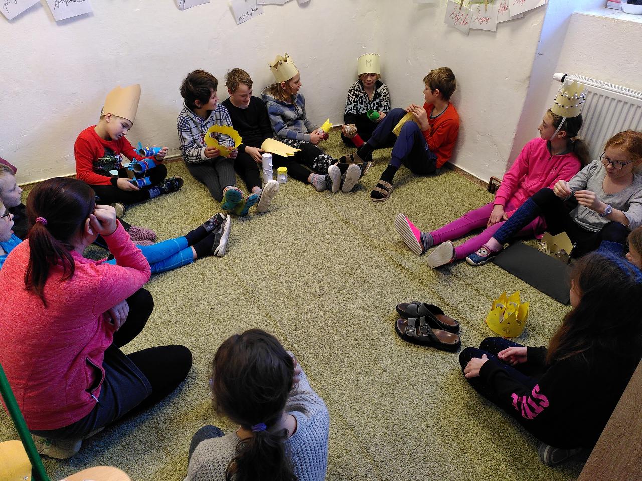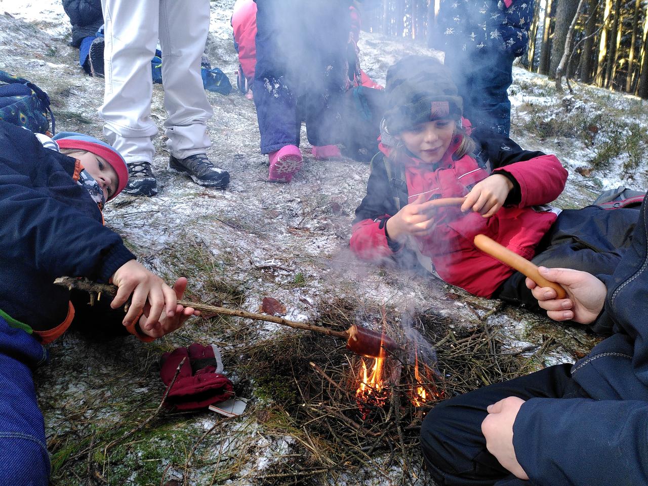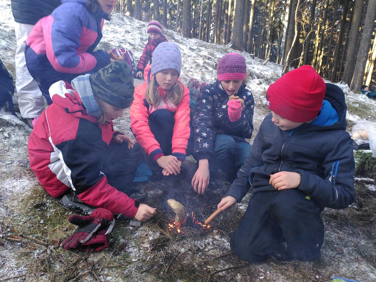 Novoroční týden jsme zahájili sdílením prožitků z prázdnin a také ukázkou dárků, co kdo objevil pod stromečkem. Než jsme se ve čtvrtek jsme se vypravili na dobrodružnou výpravu, tvořili školáci postavy Tří Králů či jejich korun dle svých představ. Na výpravě pak školáci luštili zapeklité šifry, využili i pro někoho známou, pro někoho novou morseovu abecedu nebo své znalosti v angličtině. Na Zaječím vrchu jsme po velkém snažení opravdu v zimních sněhových podmínkách zapálili oheň. Na konci týdne se pak, kdo měl chuť, zapojil do každoroční ptačí hodinky aneb sčítání a podpory přezimujícího ptactva.