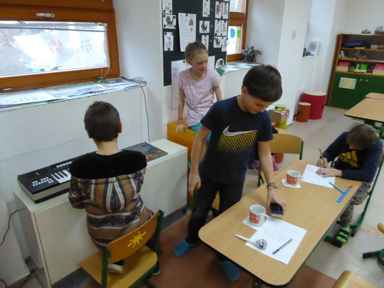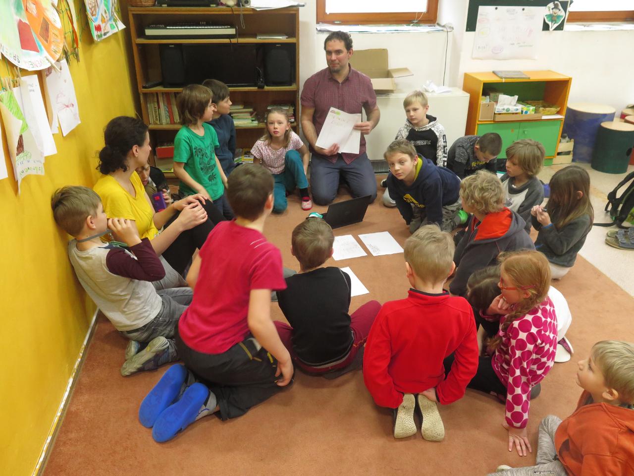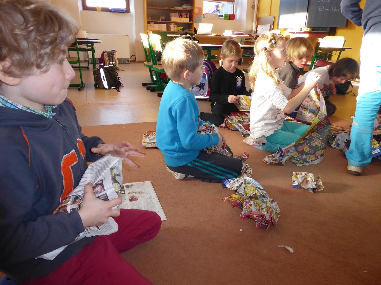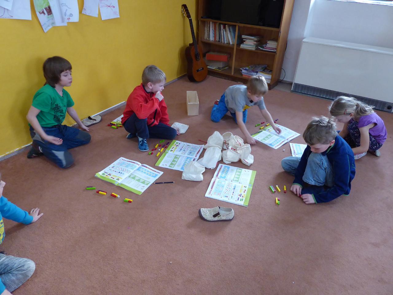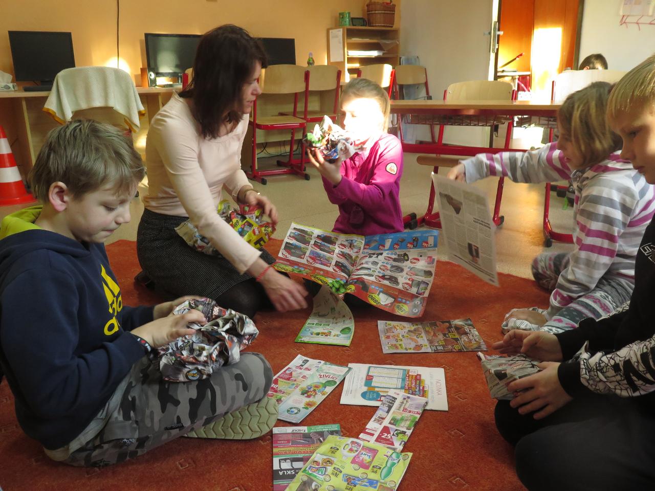 V druhé polovině února jsme se začali blížit k masopustnímu veselí. Školáci začali tvorbu masek technikou kašírování. Pracovali jsme s novinami a lepidlem, vytvořili jsme základní tvar masky, kterou jsme nechali na týden schnout. Navázali jsme také na předchozí týden medií tvorbou školního časopisu. Společně jsme vymýšleli název i obsah časopisu, který si tvoří školáci s pomocí dospěláků. Tvořili jsme rozmanité části časopisu, psali jsme články ze života mravenčího, kreslili jsme i vymýšleli hlavolamy. Při bruslícím úterku jsme také navštívili trutnovskou knihovnu a objevovali jsme, jak vypadají a co nabízí jiné časopisy. Školáci měli i chvilku na čtení toho, co jim padlo do oka - čas s klidem a radostí využili. Při angličtině si starší třída zahrála pohybové hry v tělocvičně a spojila tak komunikaci v cizím jazyce a fyzickou aktivitu. Ve čtvrtek jsme pak společně zažili druhé deskohraní, školáci i jejich rodiče naplnili družinu radostnou atmosférou plnou kartiček, vagónků, figurek, kostek a hráli rozmanité hry. Například při cestách vlaky po Evropě využívali k porozumění jazyky, které cestou potkali - kromě češtiny i francouzštinu, angličtinu a němčinu.