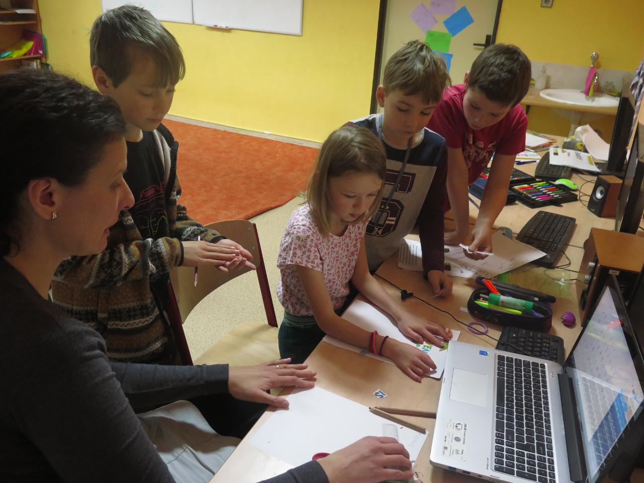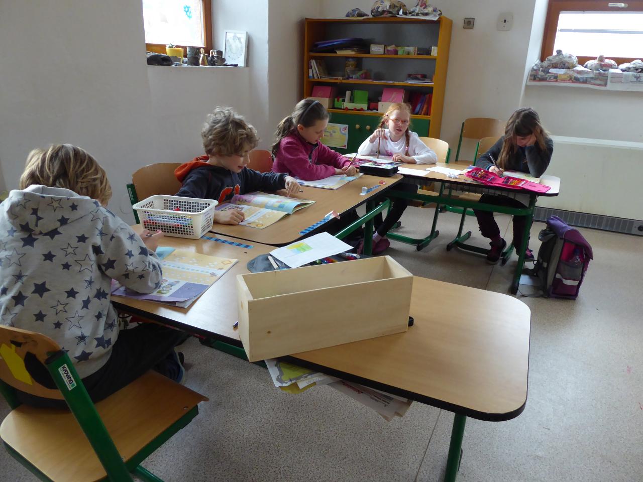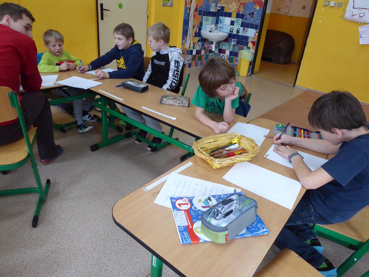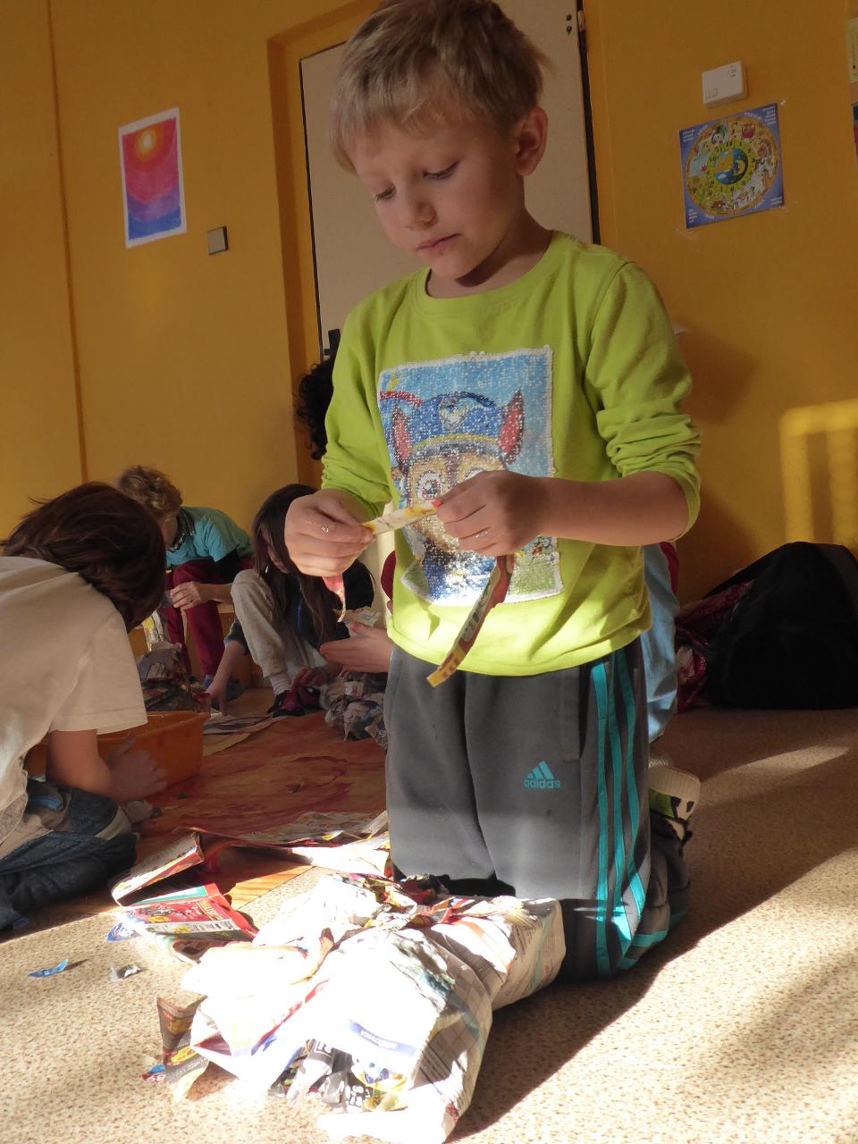 V druhé polovině února jsme se začali blížit k masopustnímu veselí. Školáci začali tvorbu masek technikou kašírování. Pracovali jsme s novinami a lepidlem, vytvořili jsme základní tvar masky, kterou jsme nechali na týden schnout. Navázali jsme také na předchozí týden medií tvorbou školního časopisu. Společně jsme vymýšleli název i obsah časopisu, který si tvoří školáci s pomocí dospěláků. Tvořili jsme rozmanité části časopisu, psali jsme články ze života mravenčího, kreslili jsme i vymýšleli hlavolamy. Při bruslícím úterku jsme také navštívili trutnovskou knihovnu a objevovali jsme, jak vypadají a co nabízí jiné časopisy. Školáci měli i chvilku na čtení toho, co jim padlo do oka - čas s klidem a radostí využili. Při angličtině si starší třída zahrála pohybové hry v tělocvičně a spojila tak komunikaci v cizím jazyce a fyzickou aktivitu. Ve čtvrtek jsme pak společně zažili druhé deskohraní, školáci i jejich rodiče naplnili družinu radostnou atmosférou plnou kartiček, vagónků, figurek, kostek a hráli rozmanité hry. Například při cestách vlaky po Evropě využívali k porozumění jazyky, které cestou potkali - kromě češtiny i francouzštinu, angličtinu a němčinu.