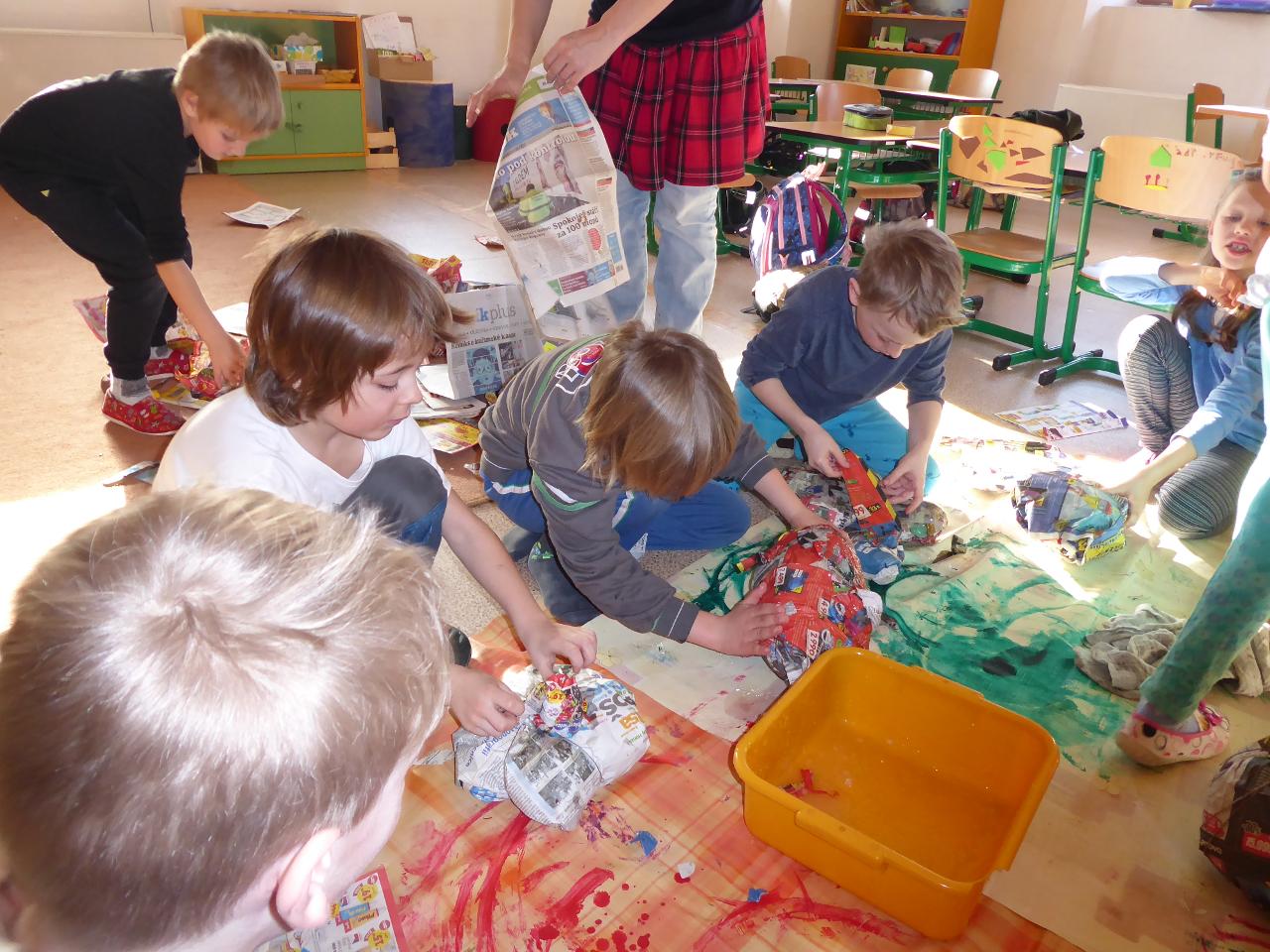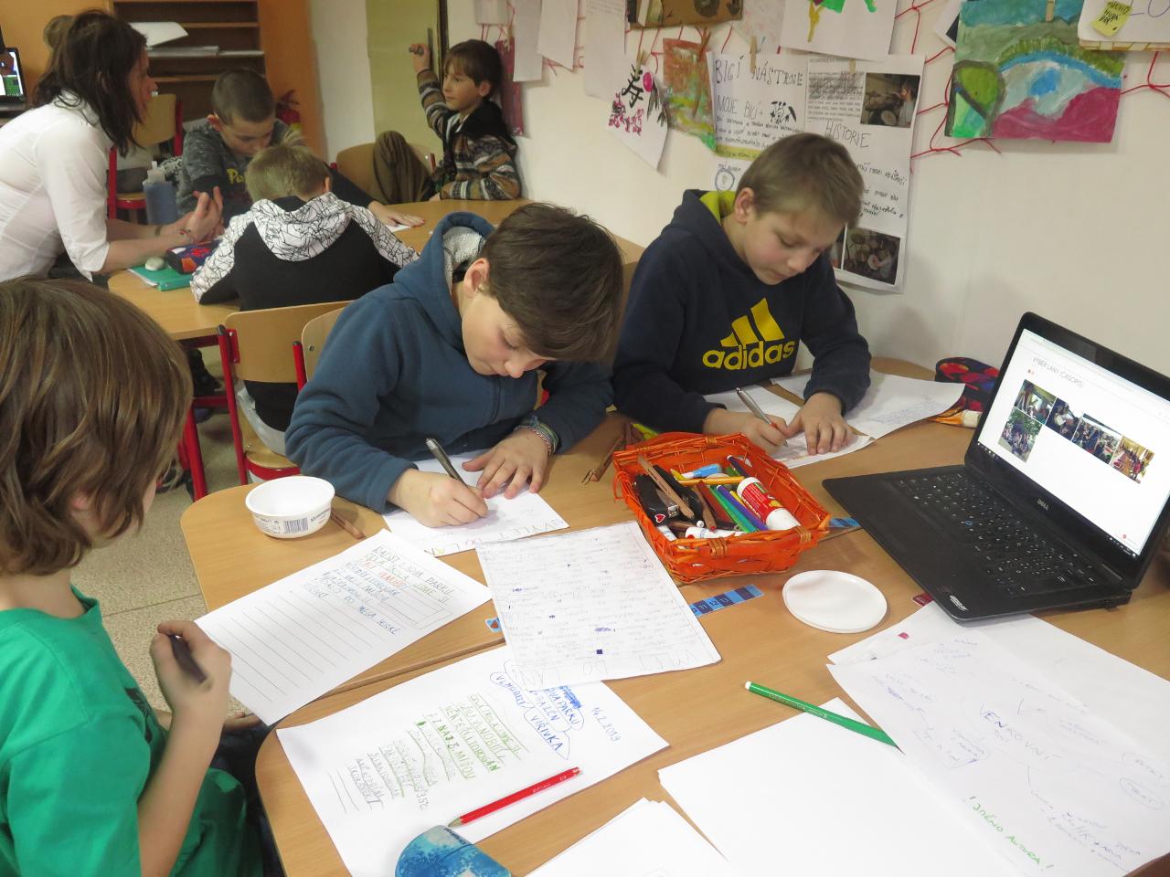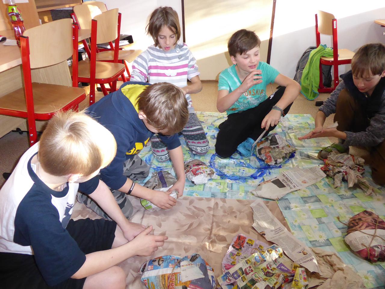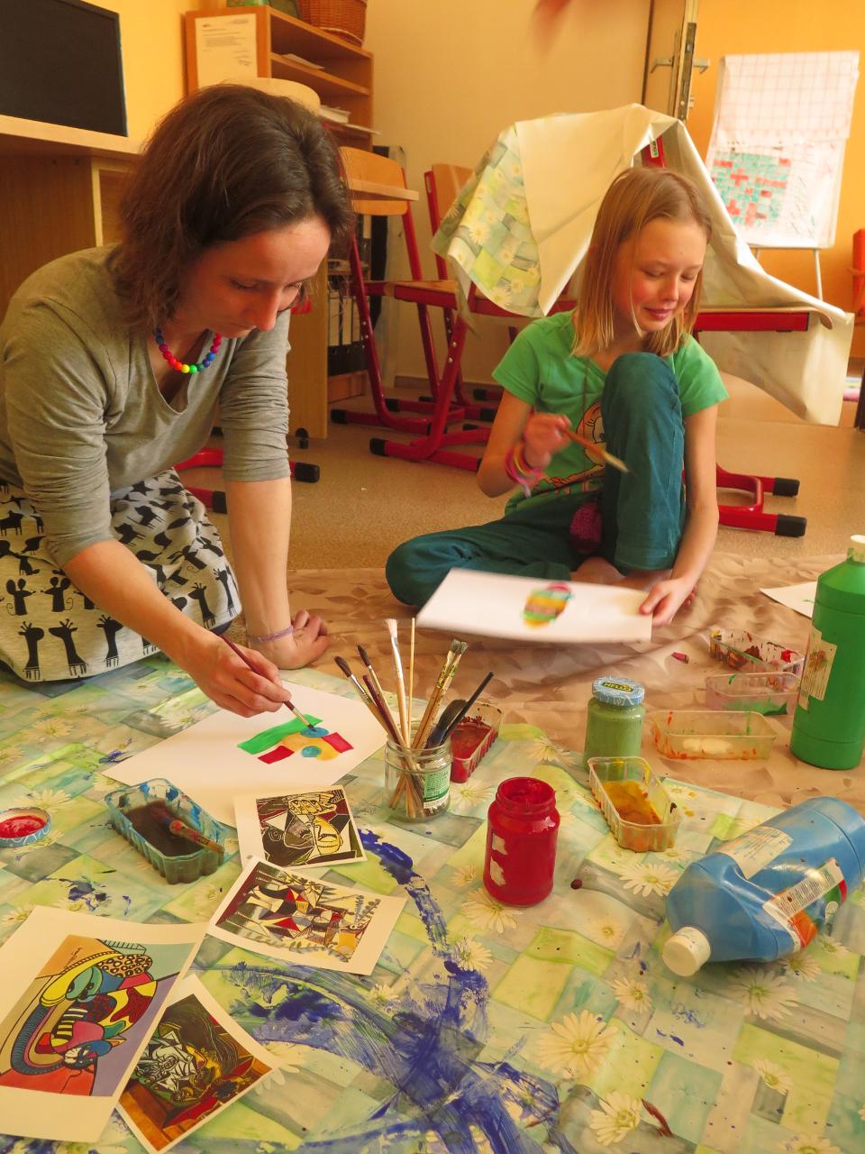 V druhé polovině února jsme se začali blížit k masopustnímu veselí. Školáci začali tvorbu masek technikou kašírování. Pracovali jsme s novinami a lepidlem, vytvořili jsme základní tvar masky, kterou jsme nechali na týden schnout. Navázali jsme také na předchozí týden medií tvorbou školního časopisu. Společně jsme vymýšleli název i obsah časopisu, který si tvoří školáci s pomocí dospěláků. Tvořili jsme rozmanité části časopisu, psali jsme články ze života mravenčího, kreslili jsme i vymýšleli hlavolamy. Při bruslícím úterku jsme také navštívili trutnovskou knihovnu a objevovali jsme, jak vypadají a co nabízí jiné časopisy. Školáci měli i chvilku na čtení toho, co jim padlo do oka - čas s klidem a radostí využili. Při angličtině si starší třída zahrála pohybové hry v tělocvičně a spojila tak komunikaci v cizím jazyce a fyzickou aktivitu. Ve čtvrtek jsme pak společně zažili druhé deskohraní, školáci i jejich rodiče naplnili družinu radostnou atmosférou plnou kartiček, vagónků, figurek, kostek a hráli rozmanité hry. Například při cestách vlaky po Evropě využívali k porozumění jazyky, které cestou potkali - kromě češtiny i francouzštinu, angličtinu a němčinu.