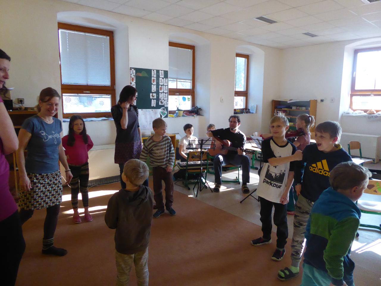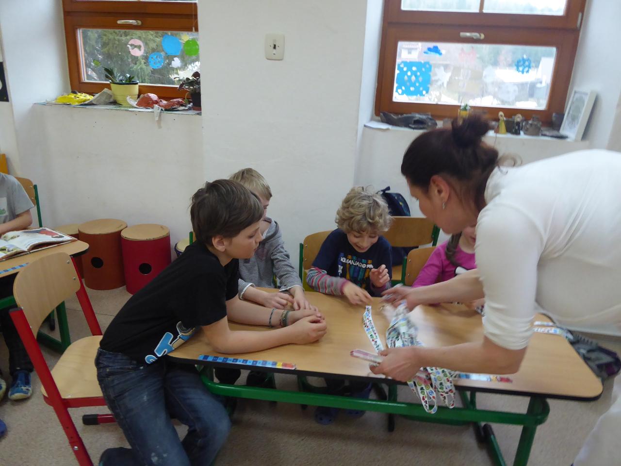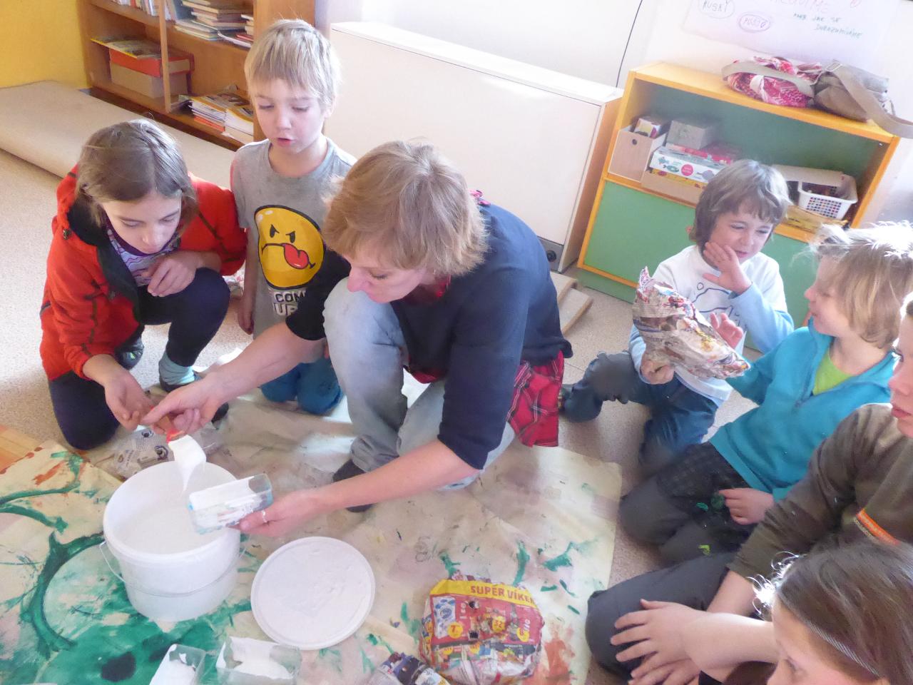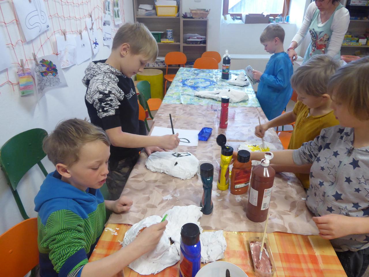 V týdnu, který nás zavedl z měsíce února do března jsme pokračovali jak ve tvorbě masopustních masek barvením latexem - bílou zpevňující barvou, tak i školního časopisu, u kterého jsme dokončili kompletní rukopis včetně volby a grafického znázornění titulní strany i obsahu všech částí. Školákům se také plnila přání z nápadníčku, kam mohou napsat, co by se jim líbilo ve škole zažít či mít. Třída mladších dětí tak zažila dvě hodiny, kdy se obrátili tradiční role a školáci se stali učiteli, připravili si pestrý program v češtině, matematice, angličtině i tělocviku a učitelé se naopak přenesli do lavic či na koberec do role školáků. Třída starších dětí pracovala na posílení vazeb a vzájemném poznání ve třídní kolektivu. Při angličtině pak pracovala s písničkou Mbube/Lion sleeps tonight, kterou nejen poslouchali a pracovali s doplňování jejího textu chybějícími slovy, píseň i zpívali a hráli na hudební nástroje. V úterý jsme společně po druhém bruslení vyrazili v rámci projektu “Lidé kolem nás aneb dospělí dětem” na obhlídku zimního stadionu s tátou od Davida. Poznali jsme nejen jak se vyrábí led, čím se povrch chladí, ale i jak se topí v šatnách či jak a na čem se brousí brusle. Hlavním bodem pro mnohé byla prohlídka úplně nové rolby na úpravu ledové plochy, kterou pár dní před tím přivezli přímo od výrobce z Kanady. V pátek jsme pak všichni zažili program Zdravá pětka, v rámci projektu Lidé kolem nás aneb dospělí dětem nám máma Jeremiho představila, jaké potraviny by měly být součástí našeho jídelníčku, aby nabízel pestrou a zdravou stravu.