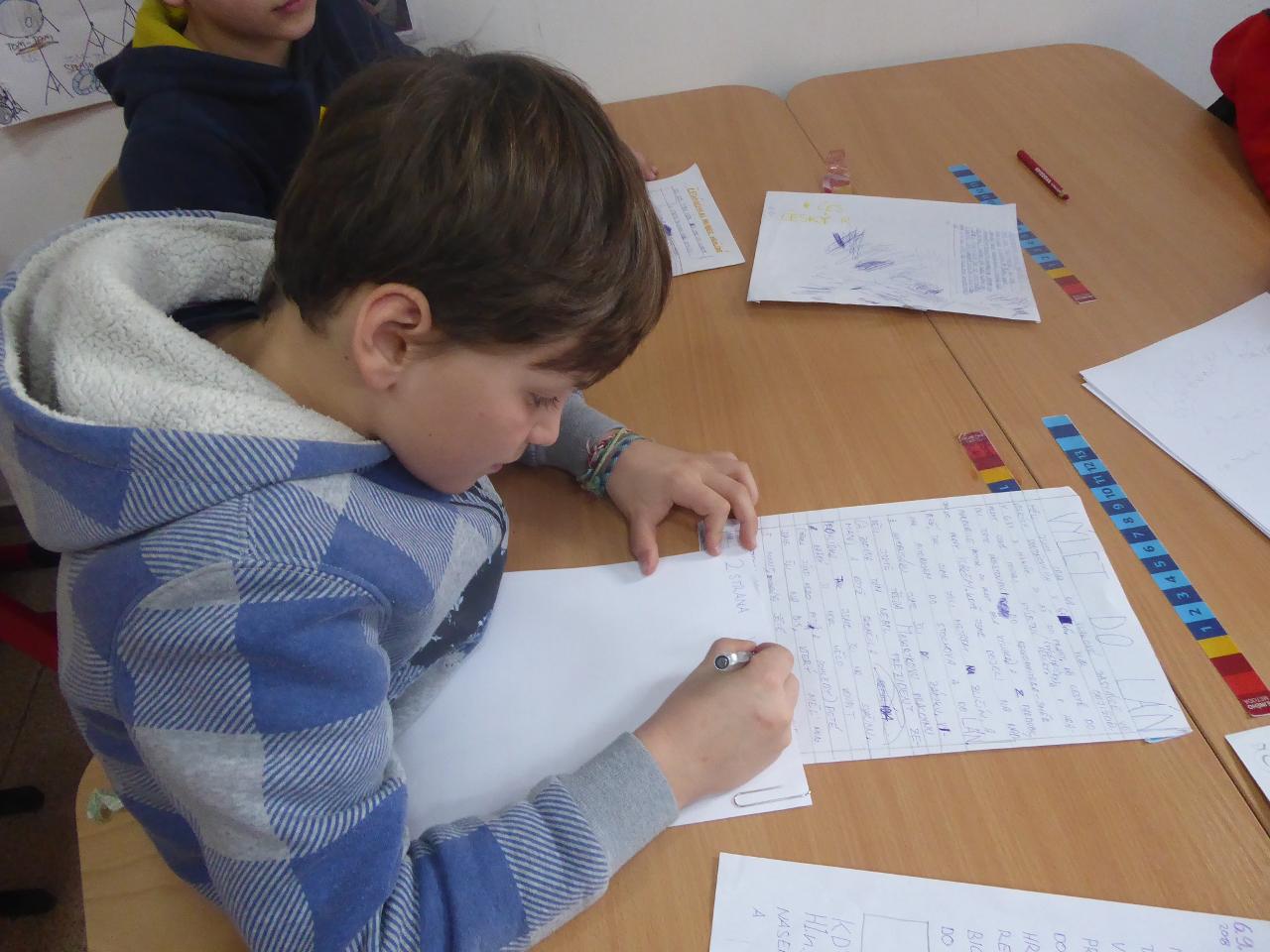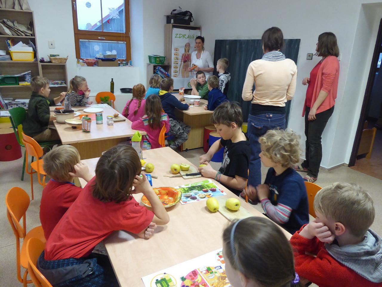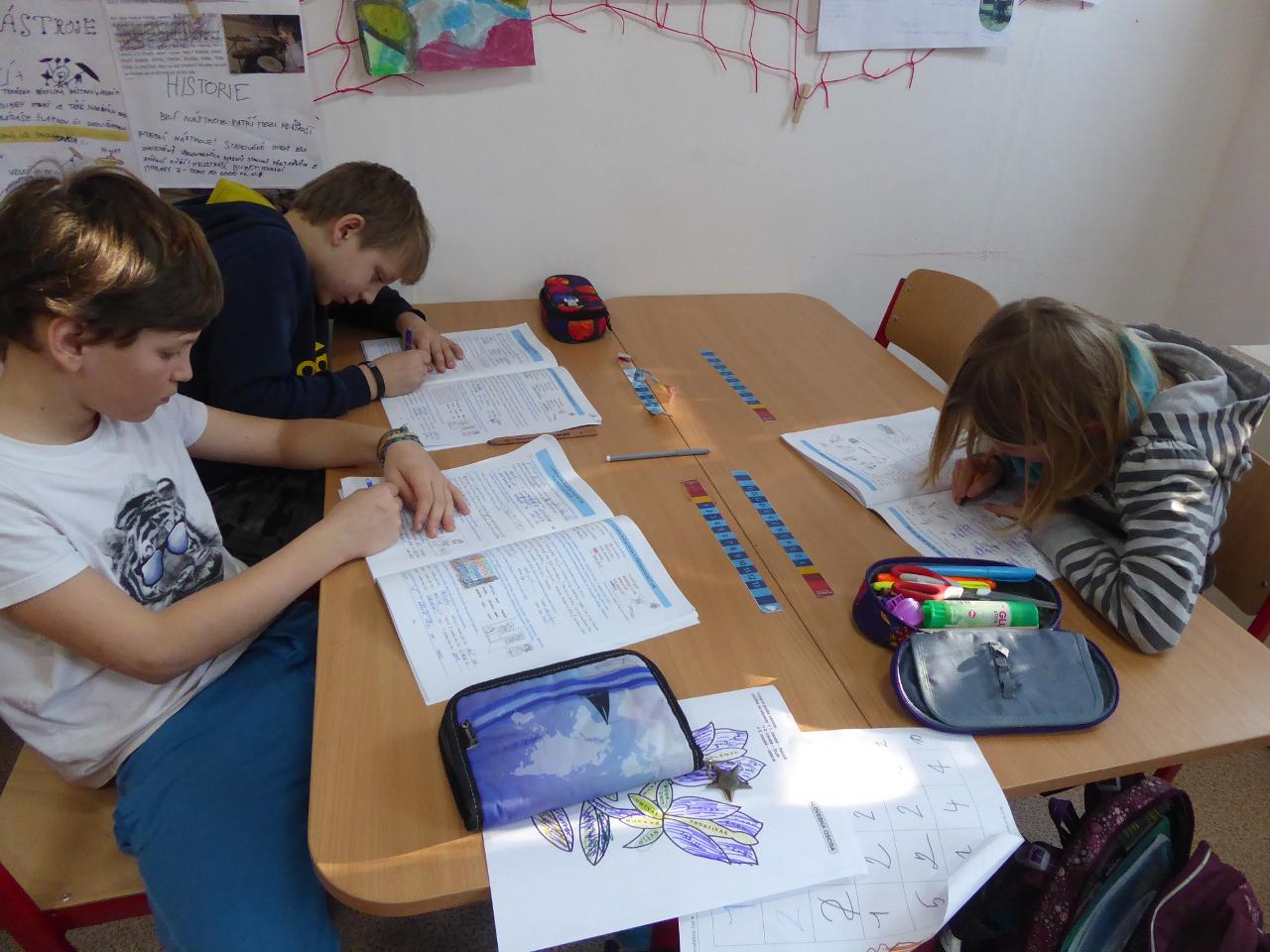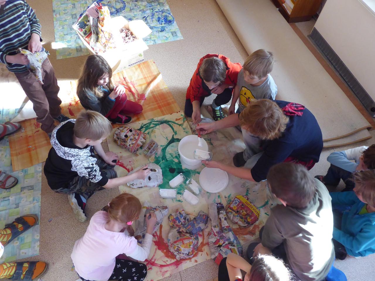 V týdnu, který nás zavedl z měsíce února do března jsme pokračovali jak ve tvorbě masopustních masek barvením latexem - bílou zpevňující barvou, tak i školního časopisu, u kterého jsme dokončili kompletní rukopis včetně volby a grafického znázornění titulní strany i obsahu všech částí. Školákům se také plnila přání z nápadníčku, kam mohou napsat, co by se jim líbilo ve škole zažít či mít. Třída mladších dětí tak zažila dvě hodiny, kdy se obrátili tradiční role a školáci se stali učiteli, připravili si pestrý program v češtině, matematice, angličtině i tělocviku a učitelé se naopak přenesli do lavic či na koberec do role školáků. Třída starších dětí pracovala na posílení vazeb a vzájemném poznání ve třídní kolektivu. Při angličtině pak pracovala s písničkou Mbube/Lion sleeps tonight, kterou nejen poslouchali a pracovali s doplňování jejího textu chybějícími slovy, píseň i zpívali a hráli na hudební nástroje. V úterý jsme společně po druhém bruslení vyrazili v rámci projektu “Lidé kolem nás aneb dospělí dětem” na obhlídku zimního stadionu s tátou od Davida. Poznali jsme nejen jak se vyrábí led, čím se povrch chladí, ale i jak se topí v šatnách či jak a na čem se brousí brusle. Hlavním bodem pro mnohé byla prohlídka úplně nové rolby na úpravu ledové plochy, kterou pár dní před tím přivezli přímo od výrobce z Kanady. V pátek jsme pak všichni zažili program Zdravá pětka, v rámci projektu Lidé kolem nás aneb dospělí dětem nám máma Jeremiho představila, jaké potraviny by měly být součástí našeho jídelníčku, aby nabízel pestrou a zdravou stravu.