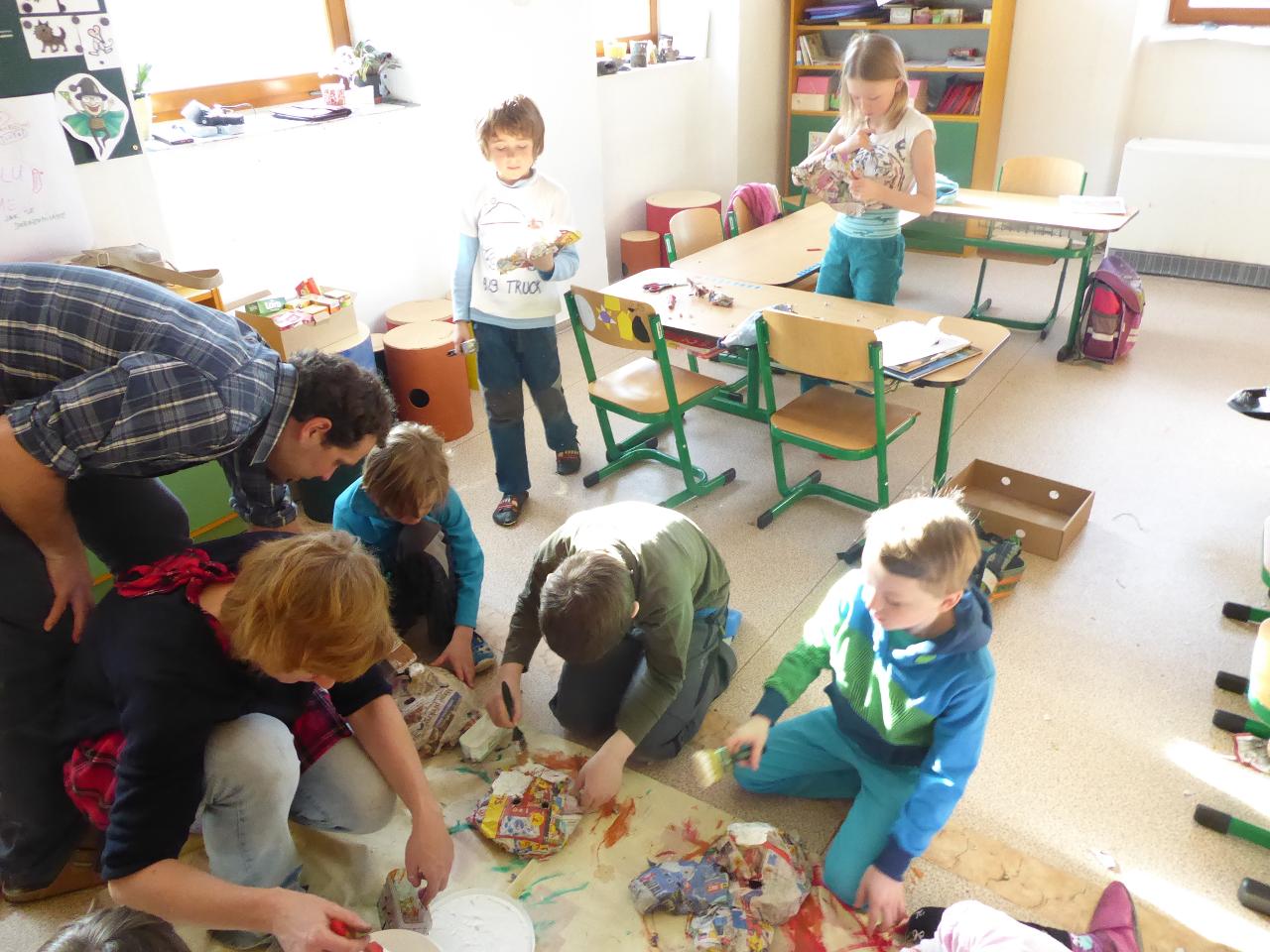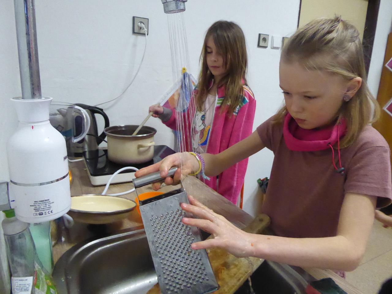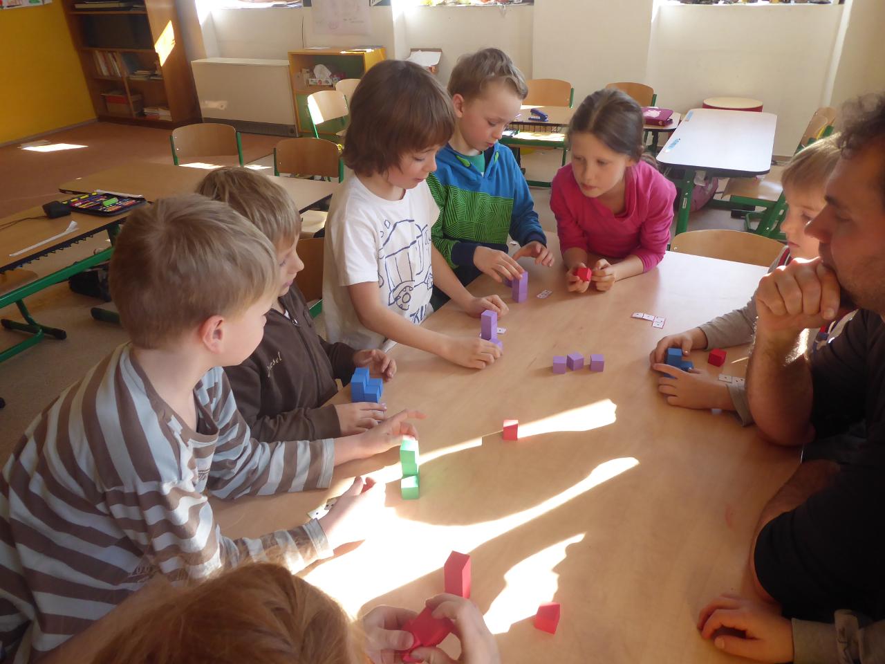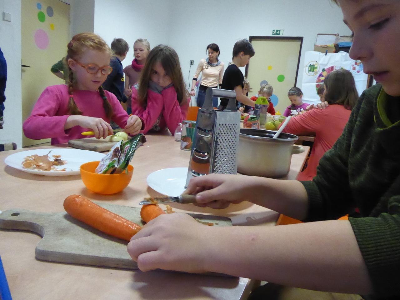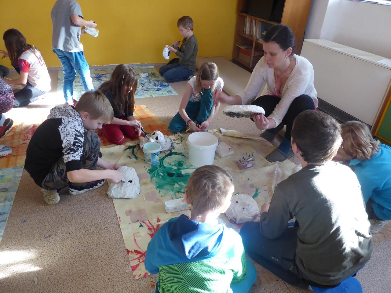 V týdnu, který nás zavedl z měsíce února do března jsme pokračovali jak ve tvorbě masopustních masek barvením latexem - bílou zpevňující barvou, tak i školního časopisu, u kterého jsme dokončili kompletní rukopis včetně volby a grafického znázornění titulní strany i obsahu všech částí. Školákům se také plnila přání z nápadníčku, kam mohou napsat, co by se jim líbilo ve škole zažít či mít. Třída mladších dětí tak zažila dvě hodiny, kdy se obrátili tradiční role a školáci se stali učiteli, připravili si pestrý program v češtině, matematice, angličtině i tělocviku a učitelé se naopak přenesli do lavic či na koberec do role školáků. Třída starších dětí pracovala na posílení vazeb a vzájemném poznání ve třídní kolektivu. Při angličtině pak pracovala s písničkou Mbube/Lion sleeps tonight, kterou nejen poslouchali a pracovali s doplňování jejího textu chybějícími slovy, píseň i zpívali a hráli na hudební nástroje. V úterý jsme společně po druhém bruslení vyrazili v rámci projektu “Lidé kolem nás aneb dospělí dětem” na obhlídku zimního stadionu s tátou od Davida. Poznali jsme nejen jak se vyrábí led, čím se povrch chladí, ale i jak se topí v šatnách či jak a na čem se brousí brusle. Hlavním bodem pro mnohé byla prohlídka úplně nové rolby na úpravu ledové plochy, kterou pár dní před tím přivezli přímo od výrobce z Kanady. V pátek jsme pak všichni zažili program Zdravá pětka, v rámci projektu Lidé kolem nás aneb dospělí dětem nám máma Jeremiho představila, jaké potraviny by měly být součástí našeho jídelníčku, aby nabízel pestrou a zdravou stravu.