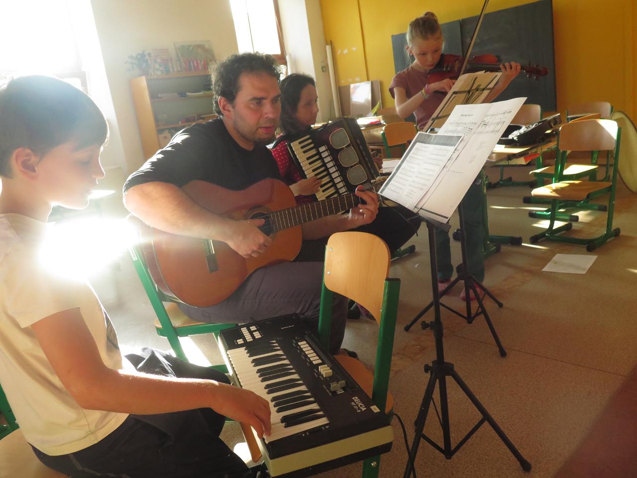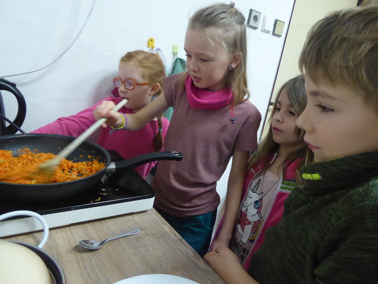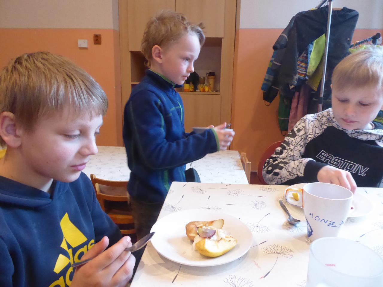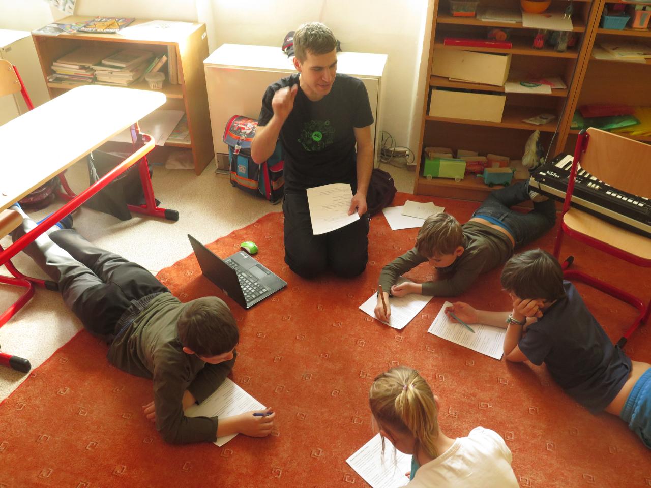 V týdnu, který nás zavedl z měsíce února do března jsme pokračovali jak ve tvorbě masopustních masek barvením latexem - bílou zpevňující barvou, tak i školního časopisu, u kterého jsme dokončili kompletní rukopis včetně volby a grafického znázornění titulní strany i obsahu všech částí. Školákům se také plnila přání z nápadníčku, kam mohou napsat, co by se jim líbilo ve škole zažít či mít. Třída mladších dětí tak zažila dvě hodiny, kdy se obrátili tradiční role a školáci se stali učiteli, připravili si pestrý program v češtině, matematice, angličtině i tělocviku a učitelé se naopak přenesli do lavic či na koberec do role školáků. Třída starších dětí pracovala na posílení vazeb a vzájemném poznání ve třídní kolektivu. Při angličtině pak pracovala s písničkou Mbube/Lion sleeps tonight, kterou nejen poslouchali a pracovali s doplňování jejího textu chybějícími slovy, píseň i zpívali a hráli na hudební nástroje. V úterý jsme společně po druhém bruslení vyrazili v rámci projektu “Lidé kolem nás aneb dospělí dětem” na obhlídku zimního stadionu s tátou od Davida. Poznali jsme nejen jak se vyrábí led, čím se povrch chladí, ale i jak se topí v šatnách či jak a na čem se brousí brusle. Hlavním bodem pro mnohé byla prohlídka úplně nové rolby na úpravu ledové plochy, kterou pár dní před tím přivezli přímo od výrobce z Kanady. V pátek jsme pak všichni zažili program Zdravá pětka, v rámci projektu Lidé kolem nás aneb dospělí dětem nám máma Jeremiho představila, jaké potraviny by měly být součástí našeho jídelníčku, aby nabízel pestrou a zdravou stravu.