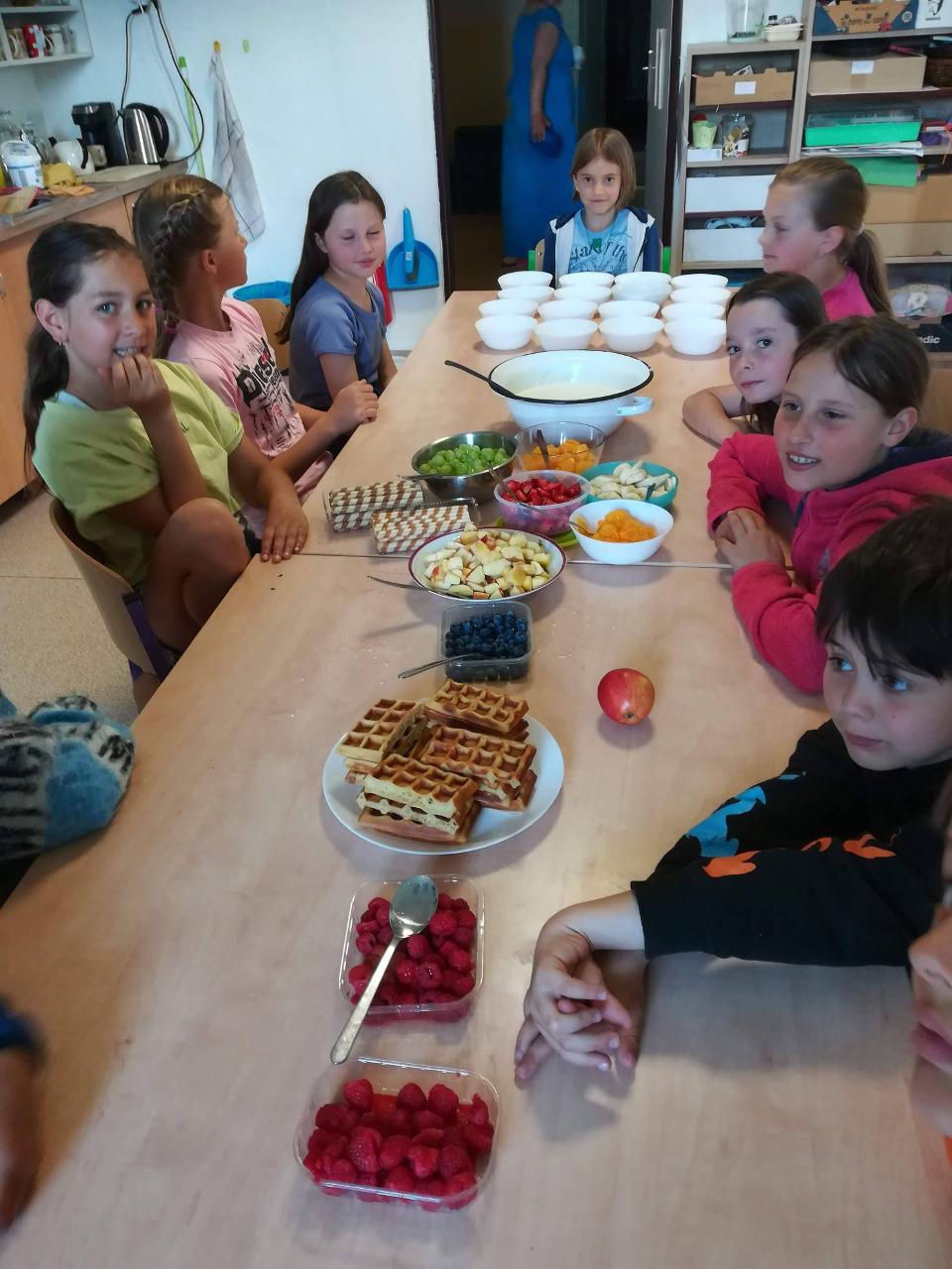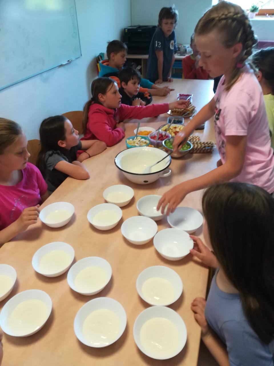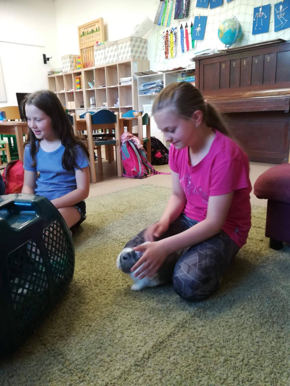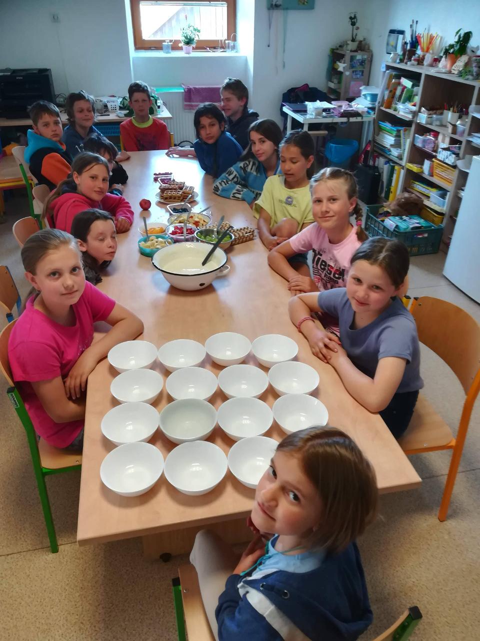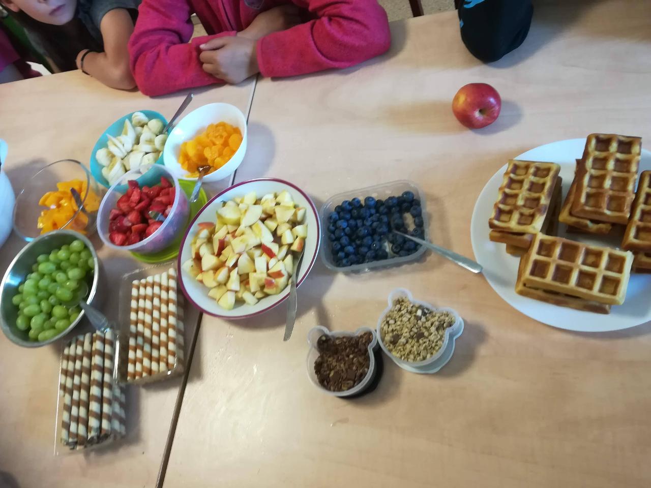 Dnes si děti mohly přinést domácí mazlíčky. Nejdříve si je prohlédly - králíčky, morčata a dokonce i strašilky. Vytvořily si poháry z přinesených dobrot. Zahrály si venku hry a vyvenčily u toho své mazlíčky. K obědu byla pizza! S plnými bříšky se děti odkulily do třídy na film, kde pokračovaly v mlsání popcornu, zmrzliny….Den, jaký si přály.